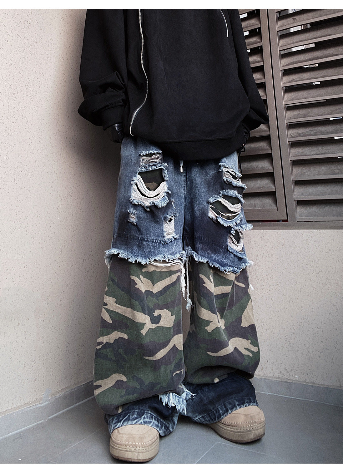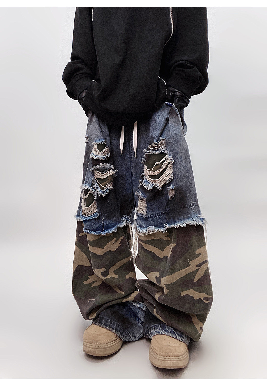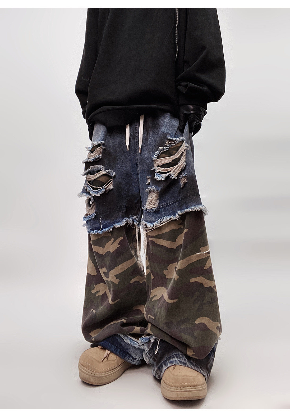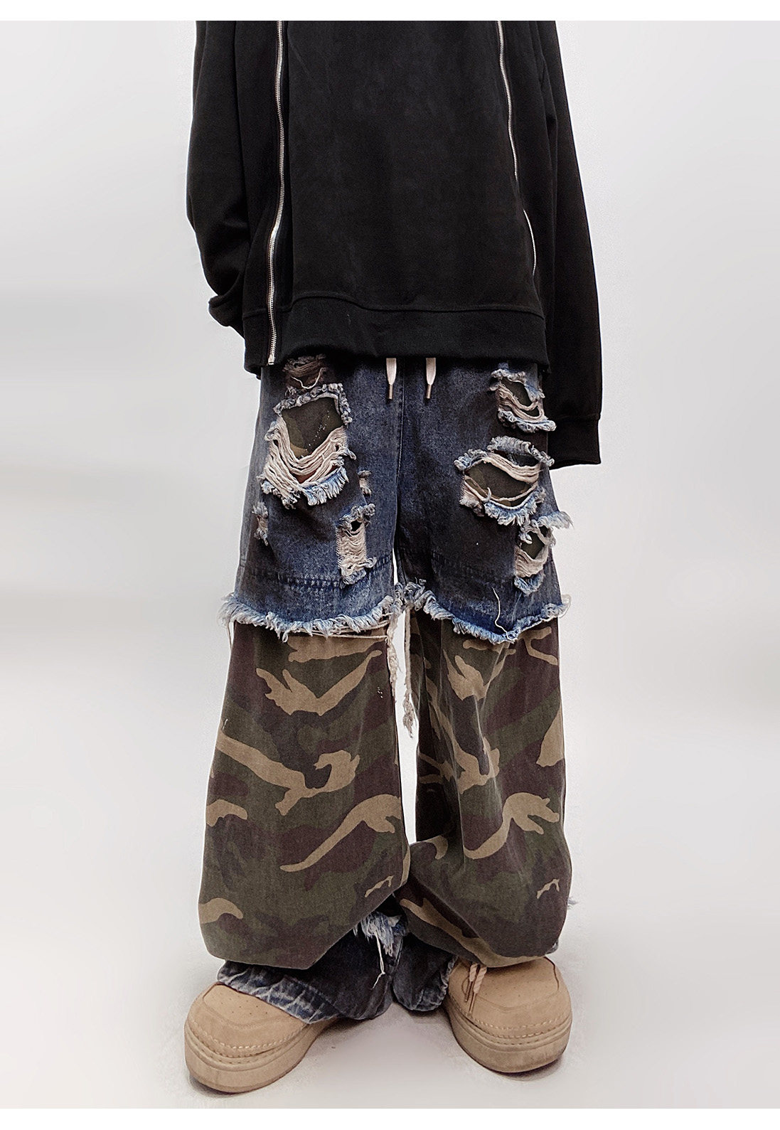 Camouflage Ripped Wide Leg Denim Jeans WN23993