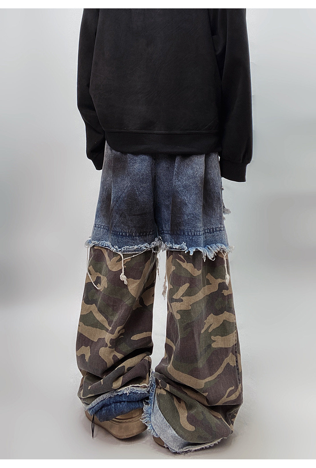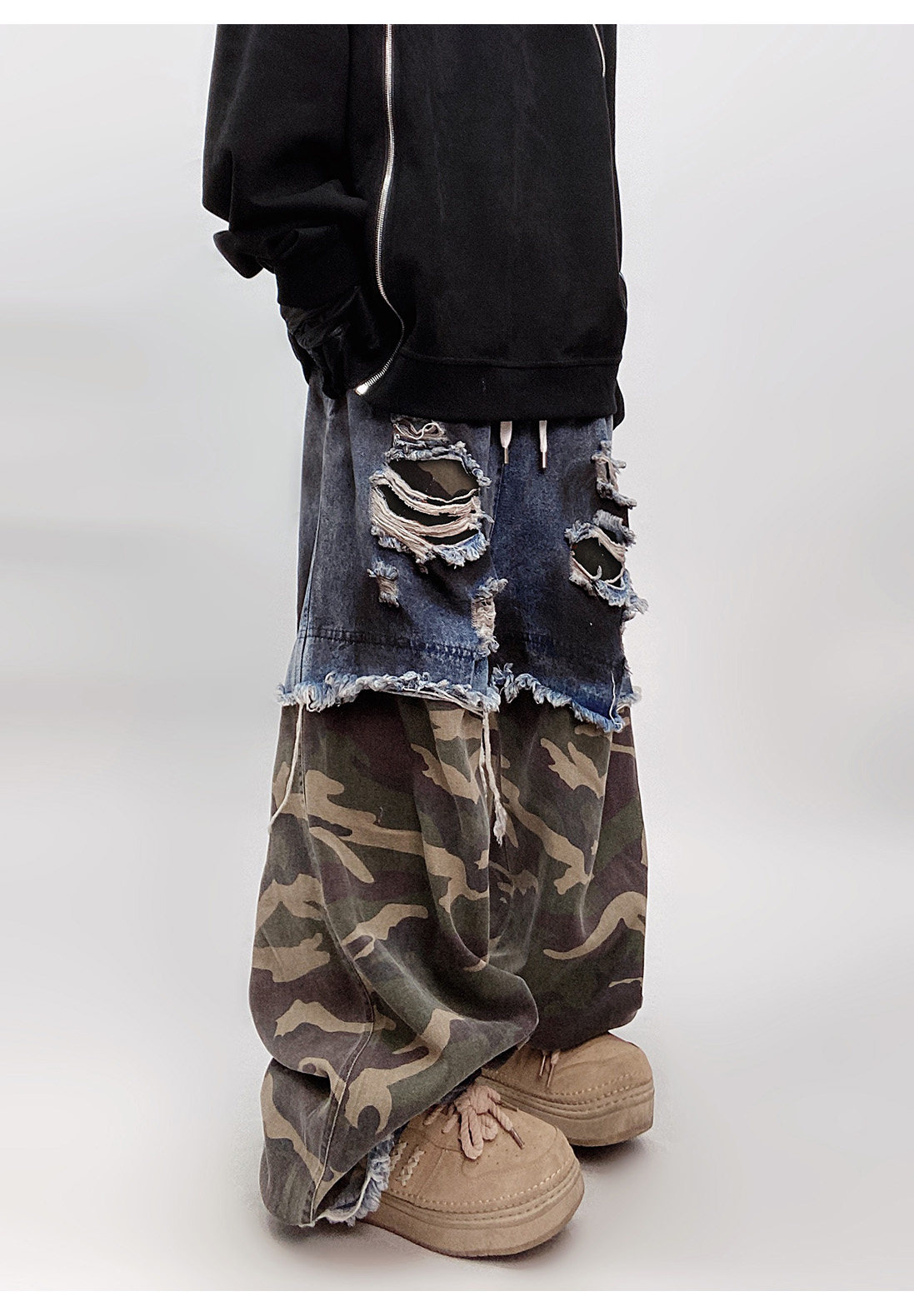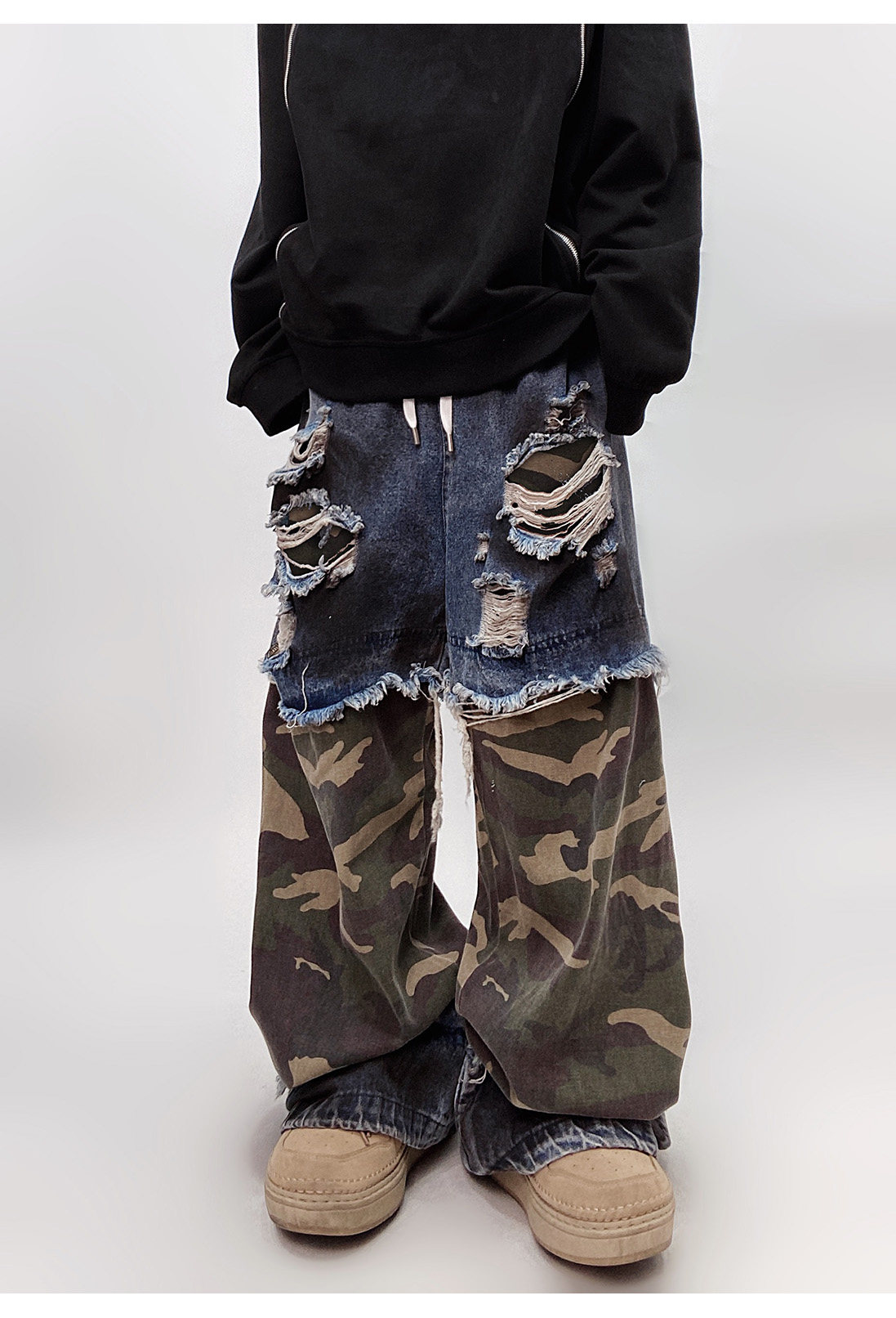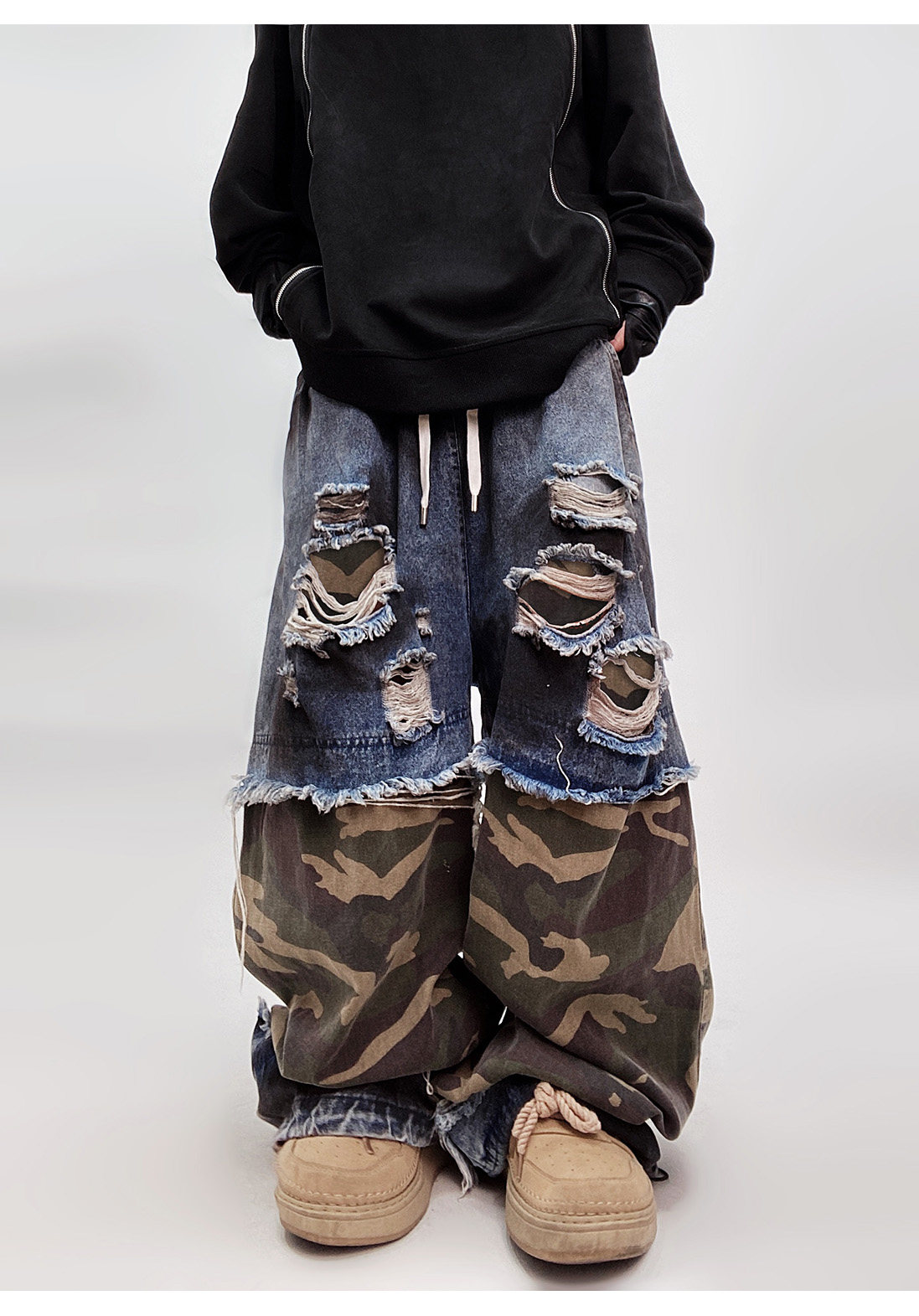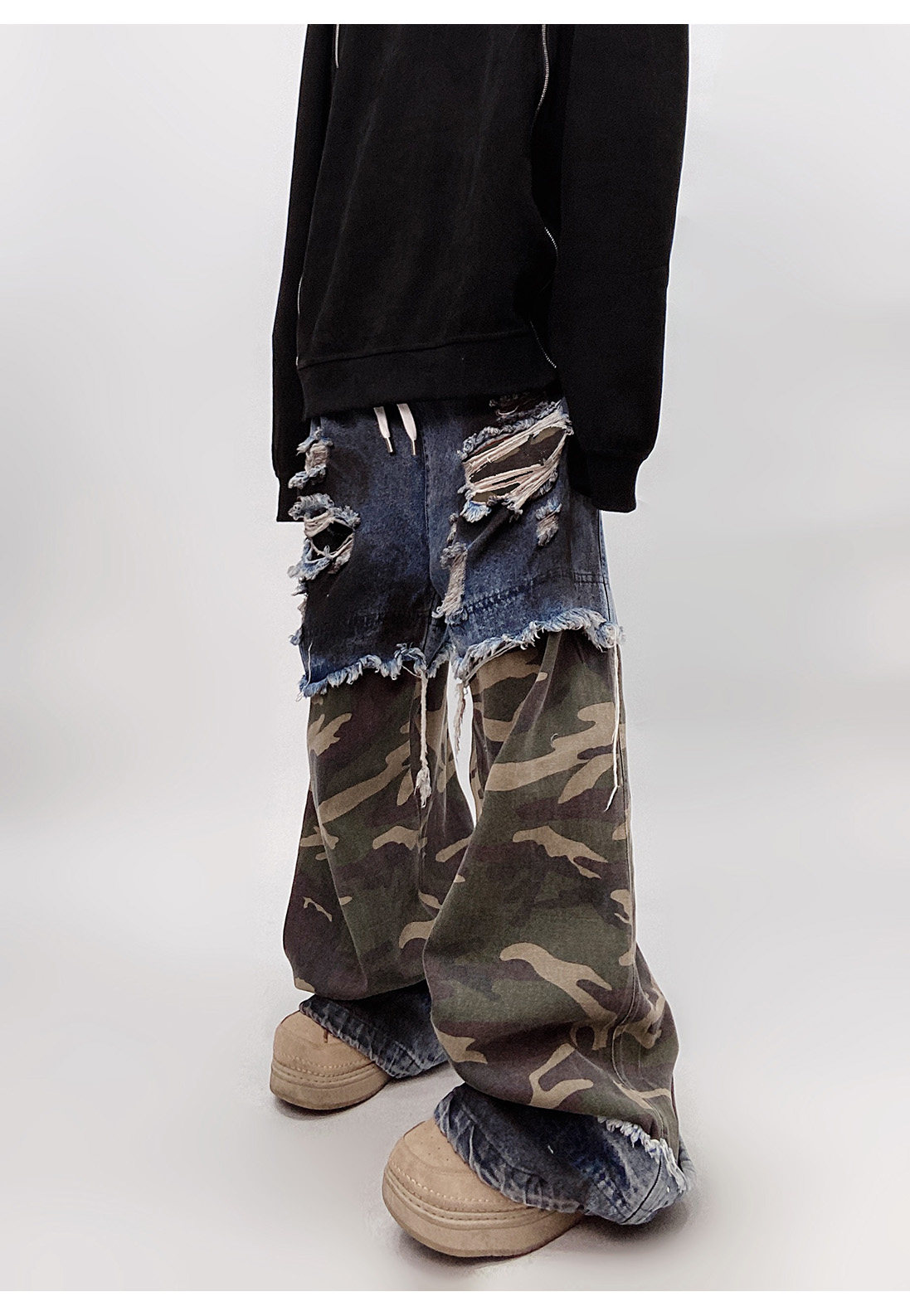 Camouflage Ripped Wide Leg Denim Jeans WN23993