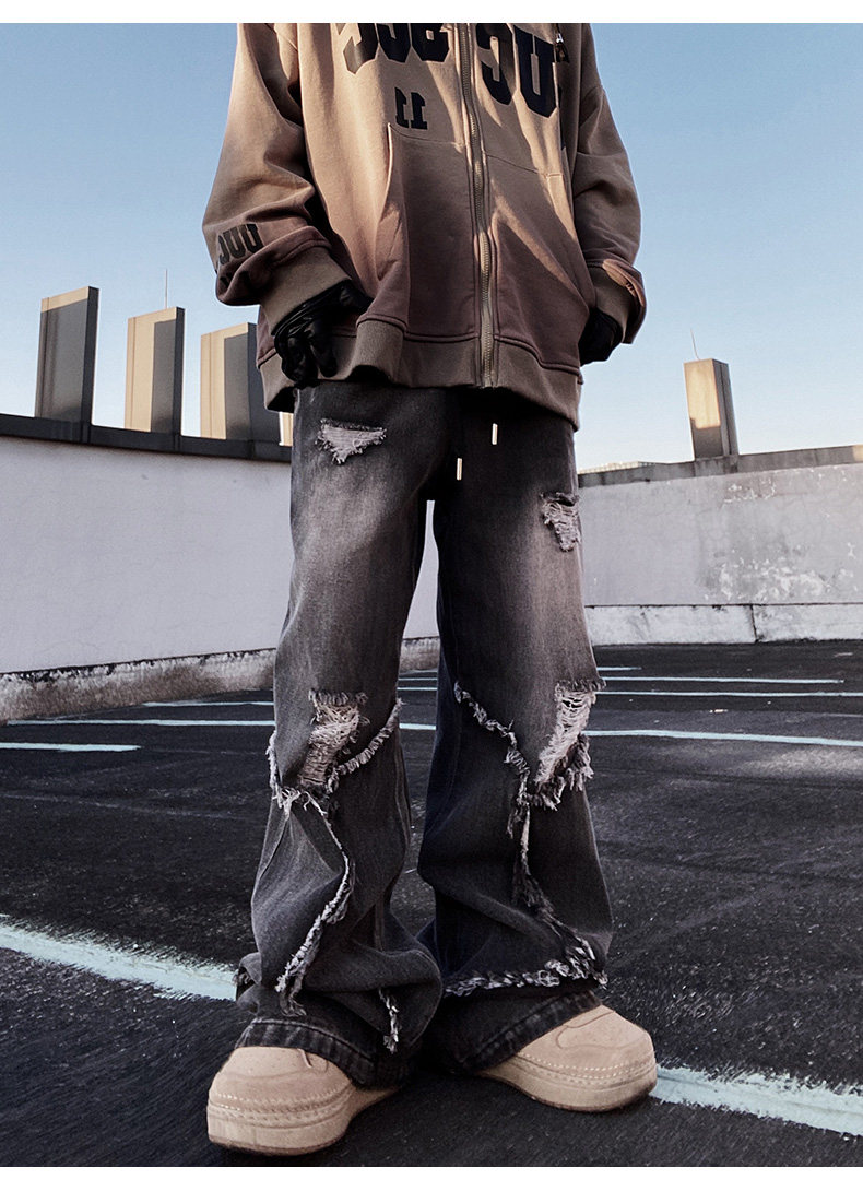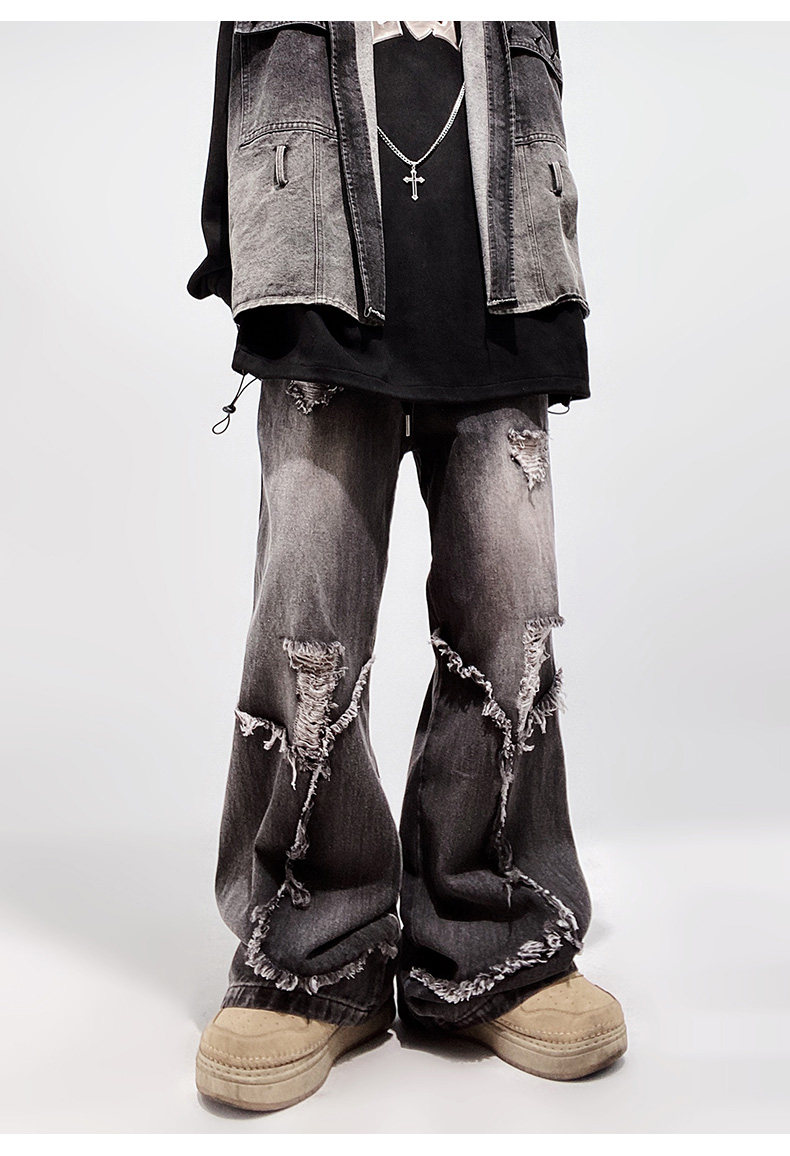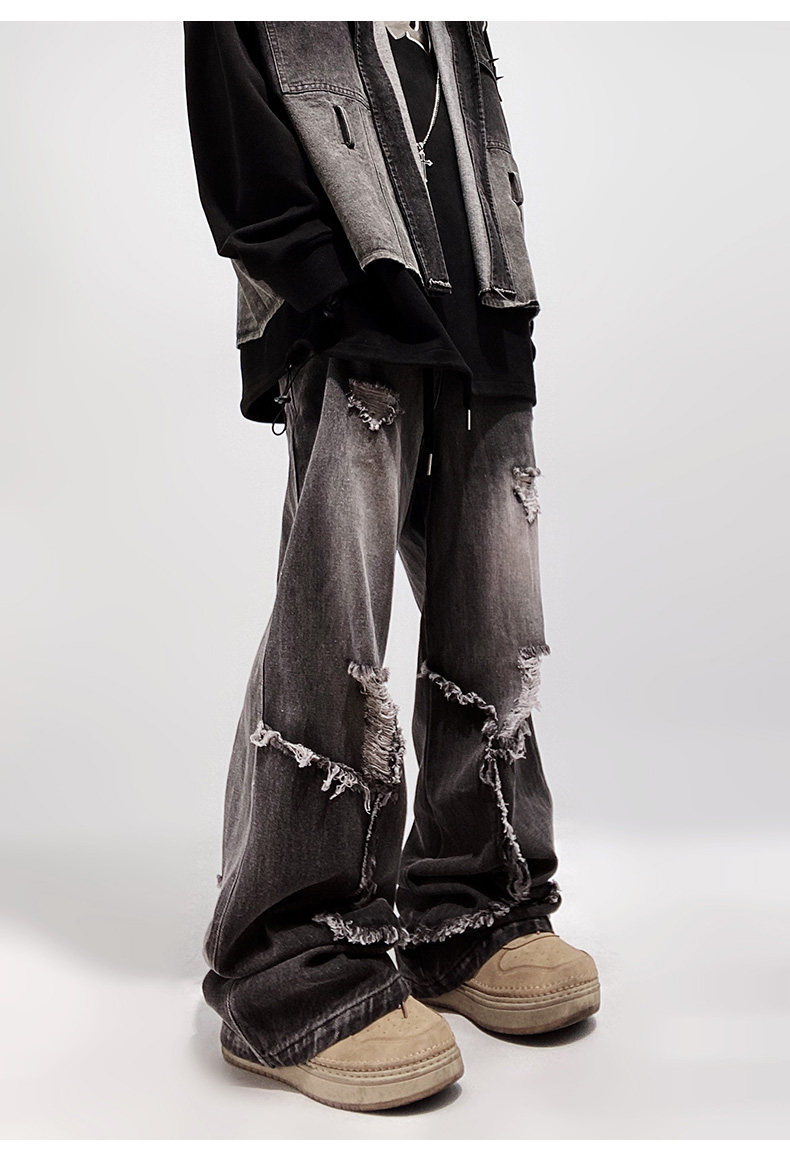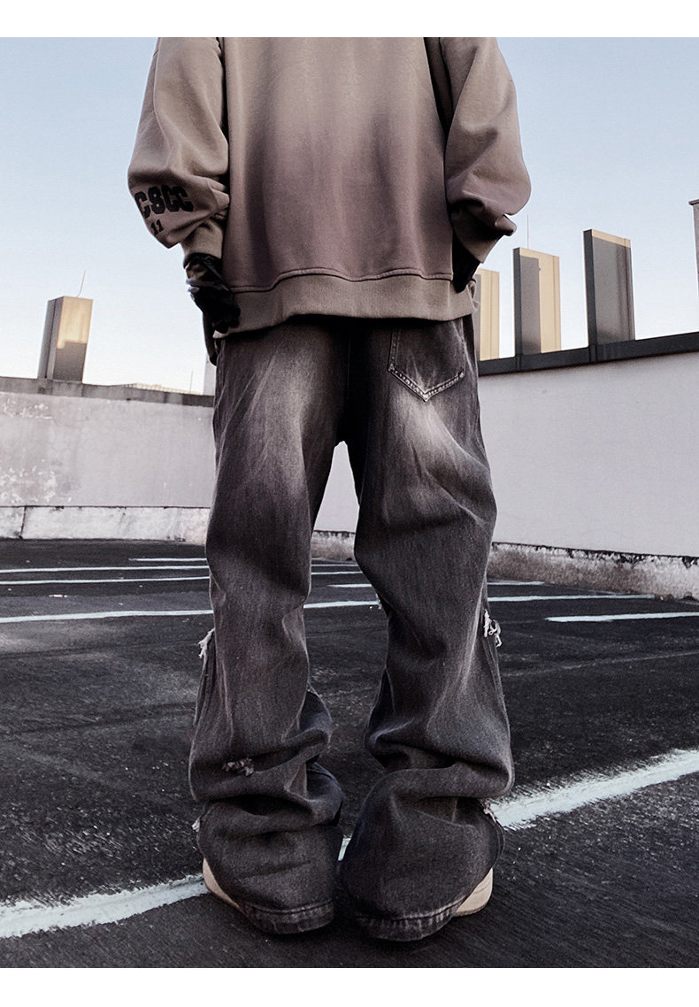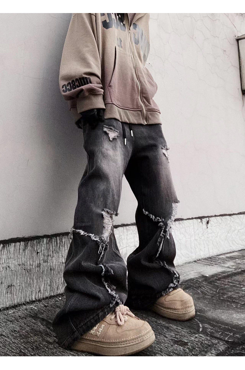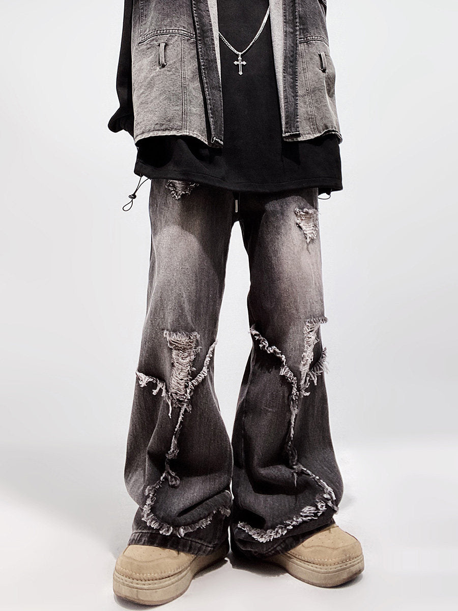 Ripped Wide Leg Flare Denim Jeans WN23996
