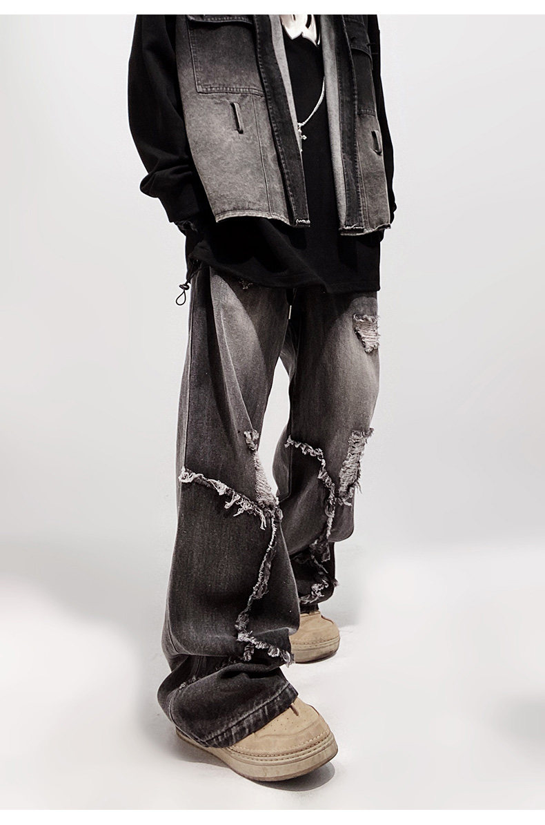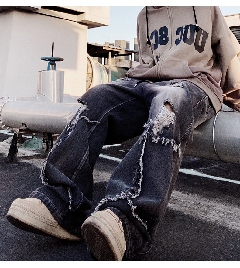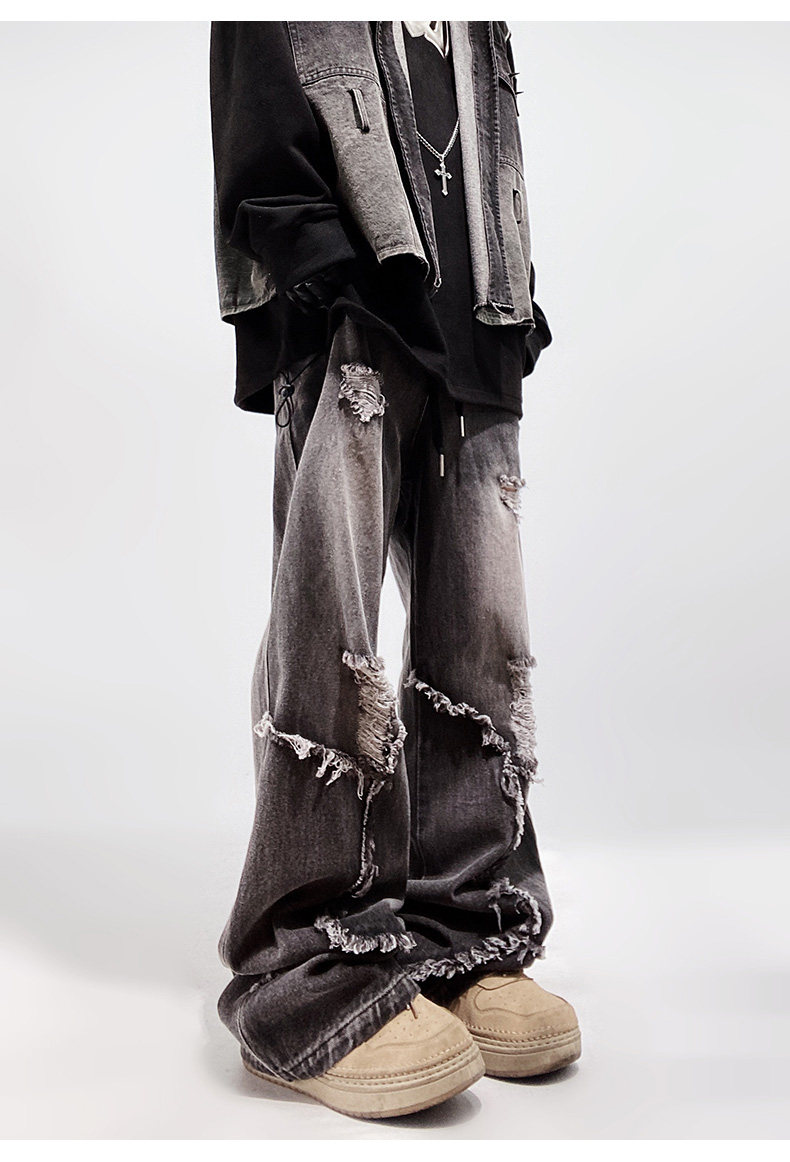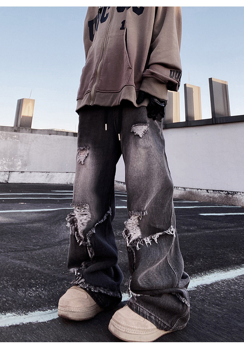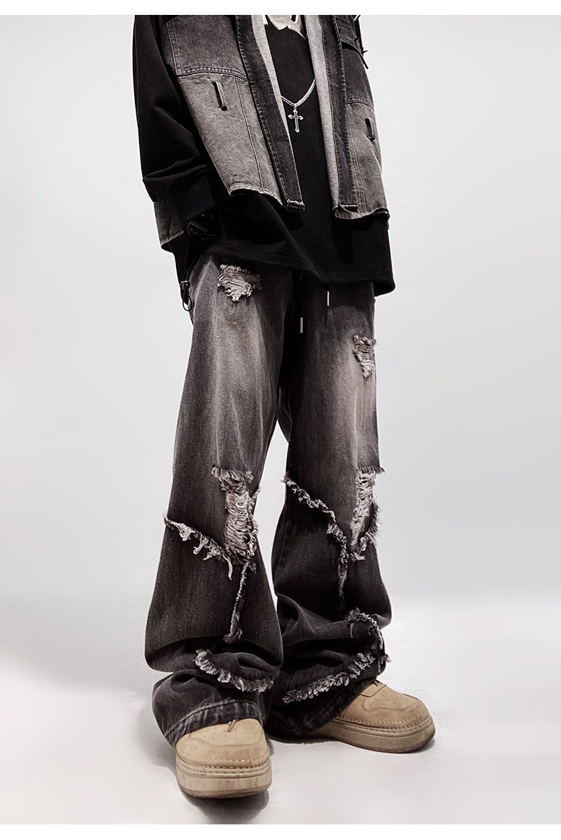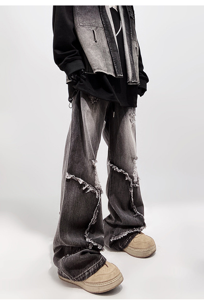 Ripped Wide Leg Flare Denim Jeans WN23996