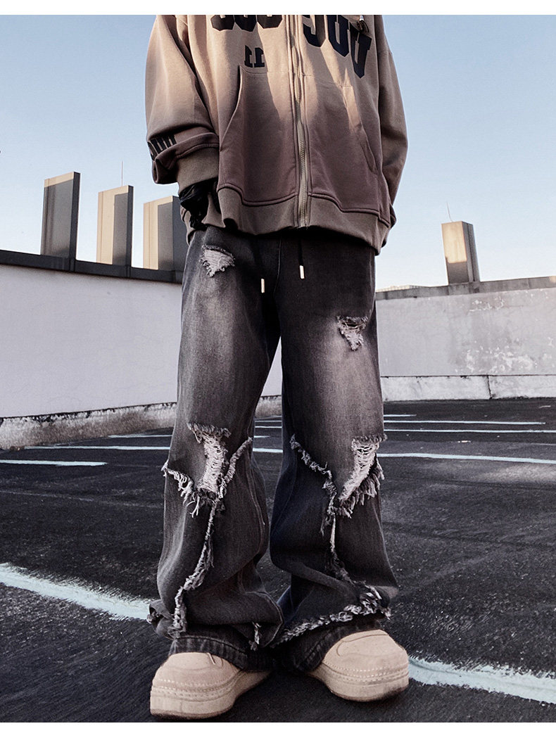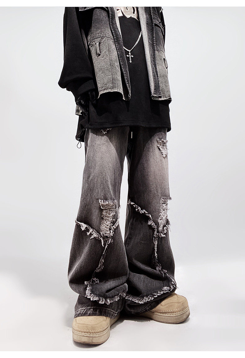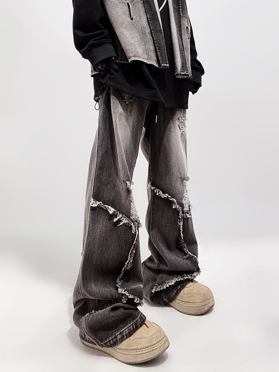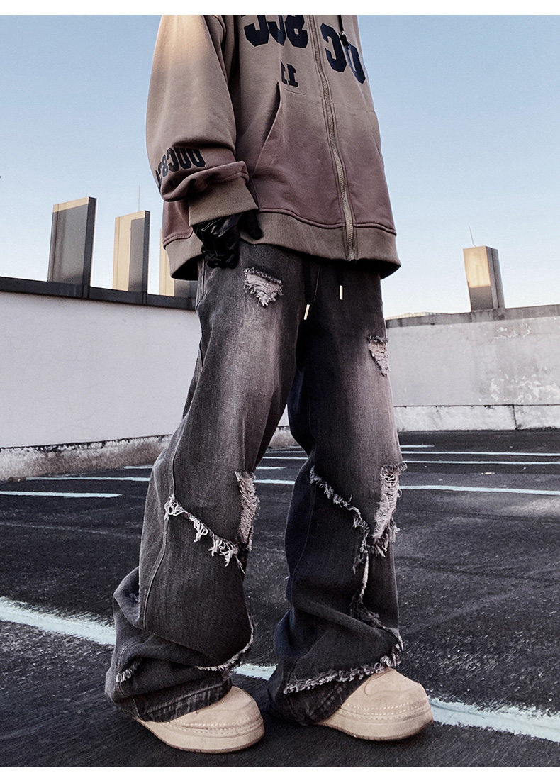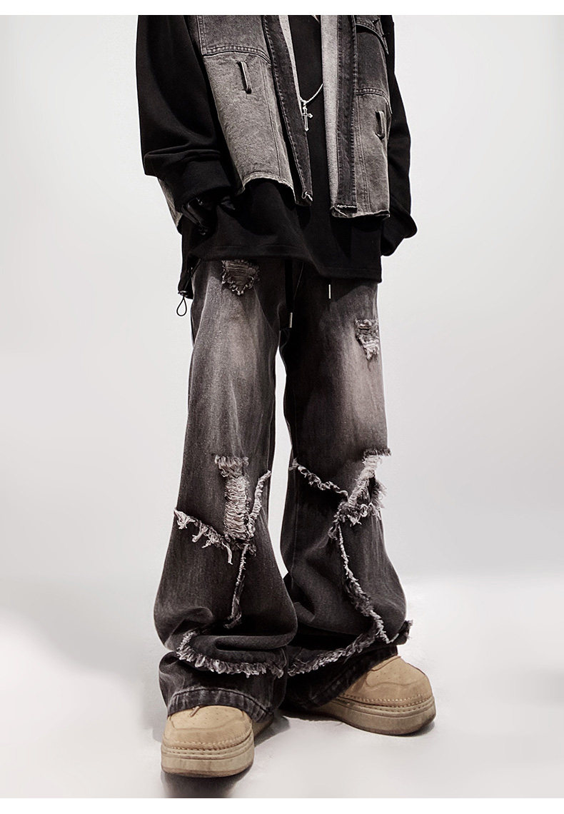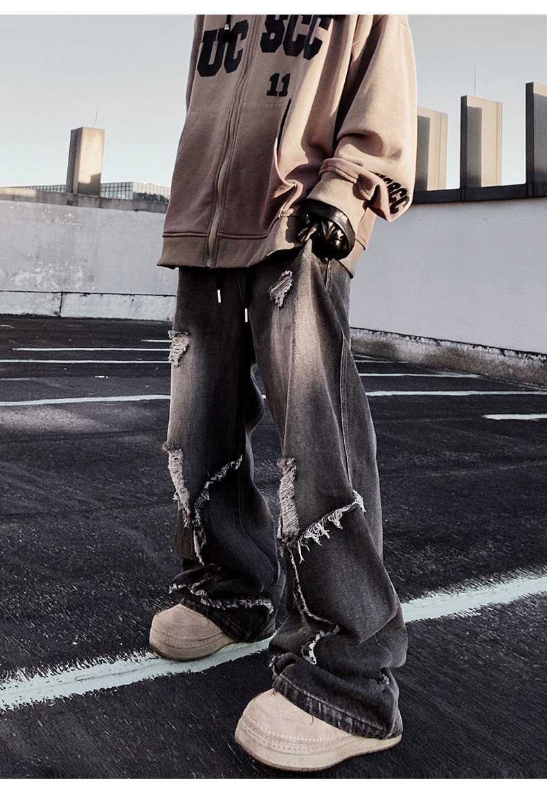 Ripped Wide Leg Flare Denim Jeans WN23996