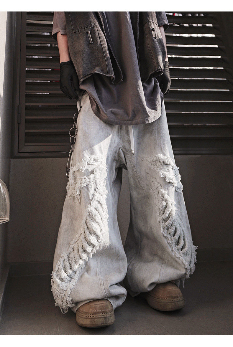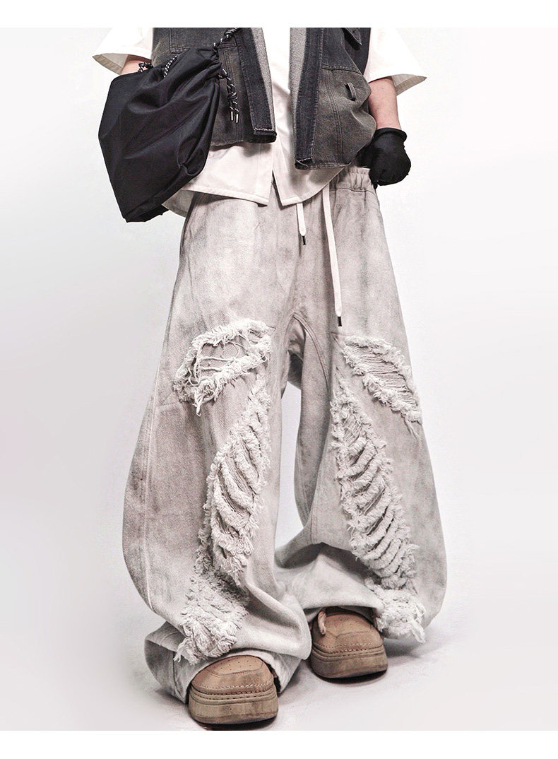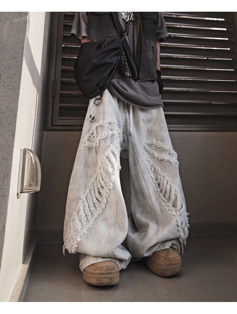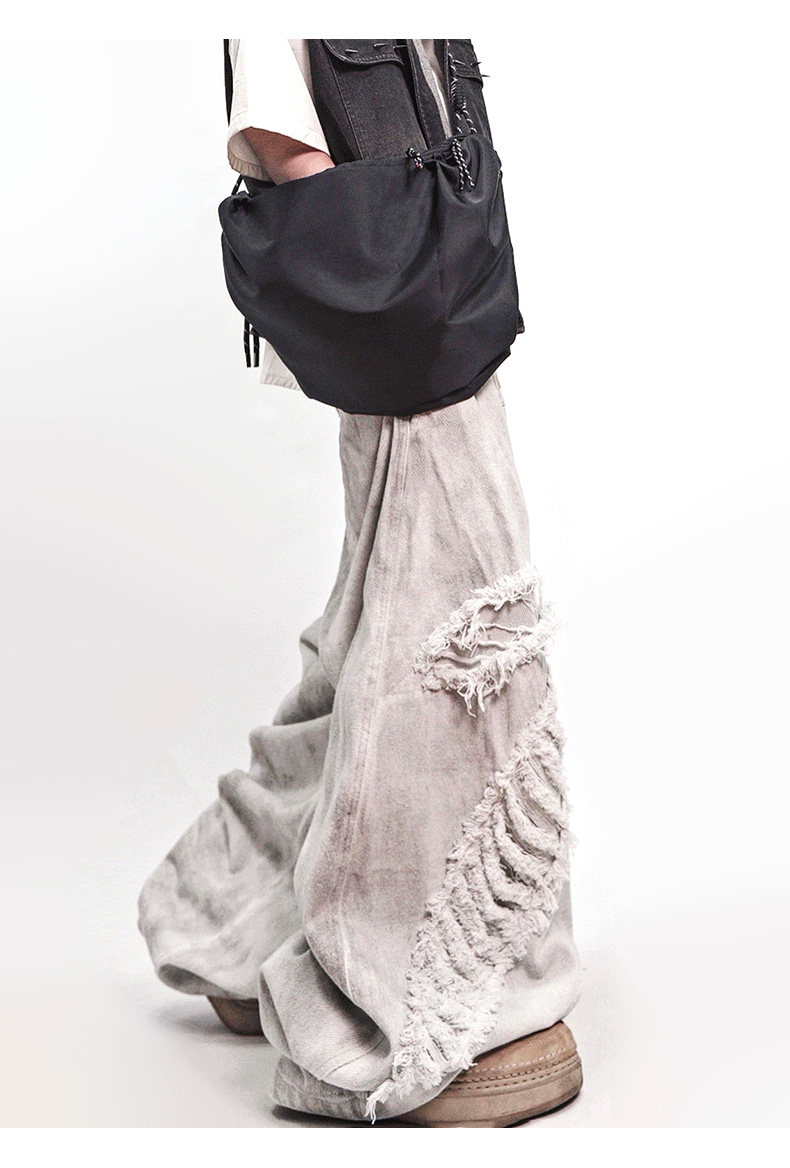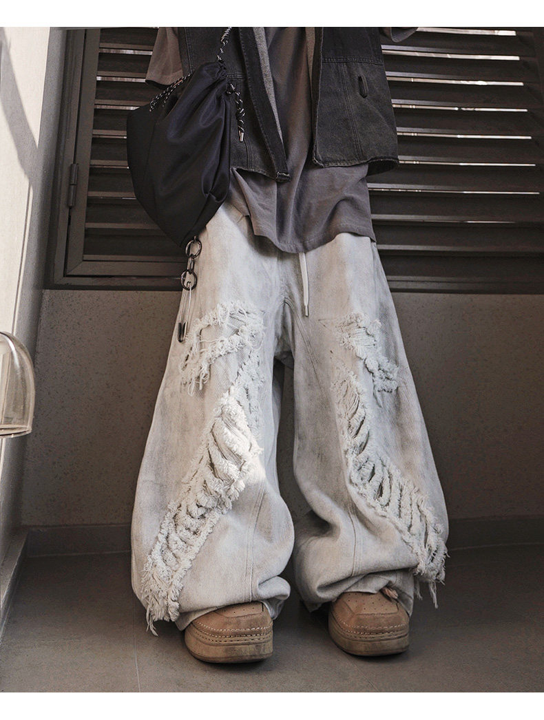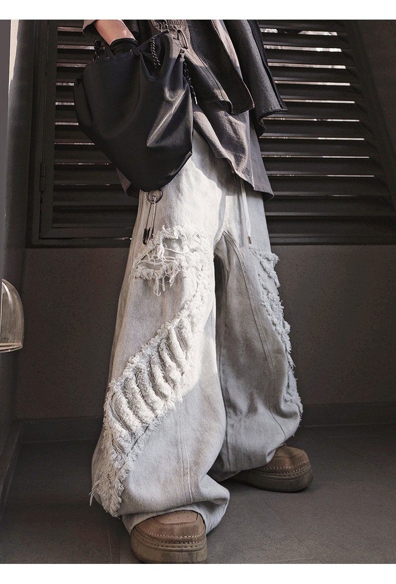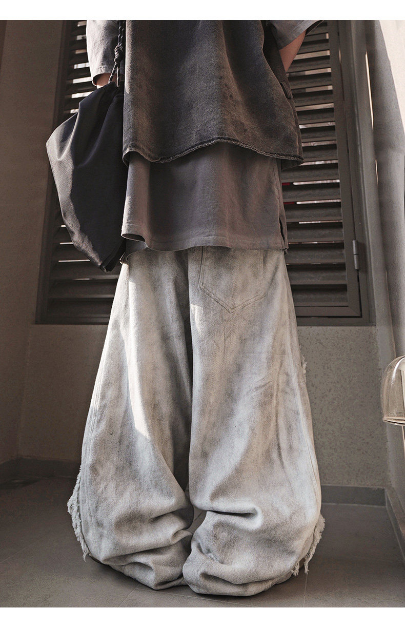 Mud Dye Damage Wide Leg Denim Jeans WN24014