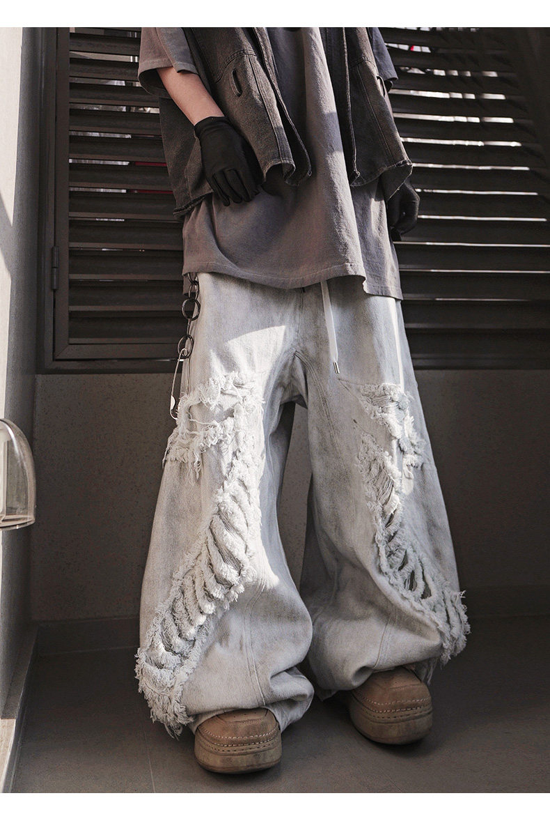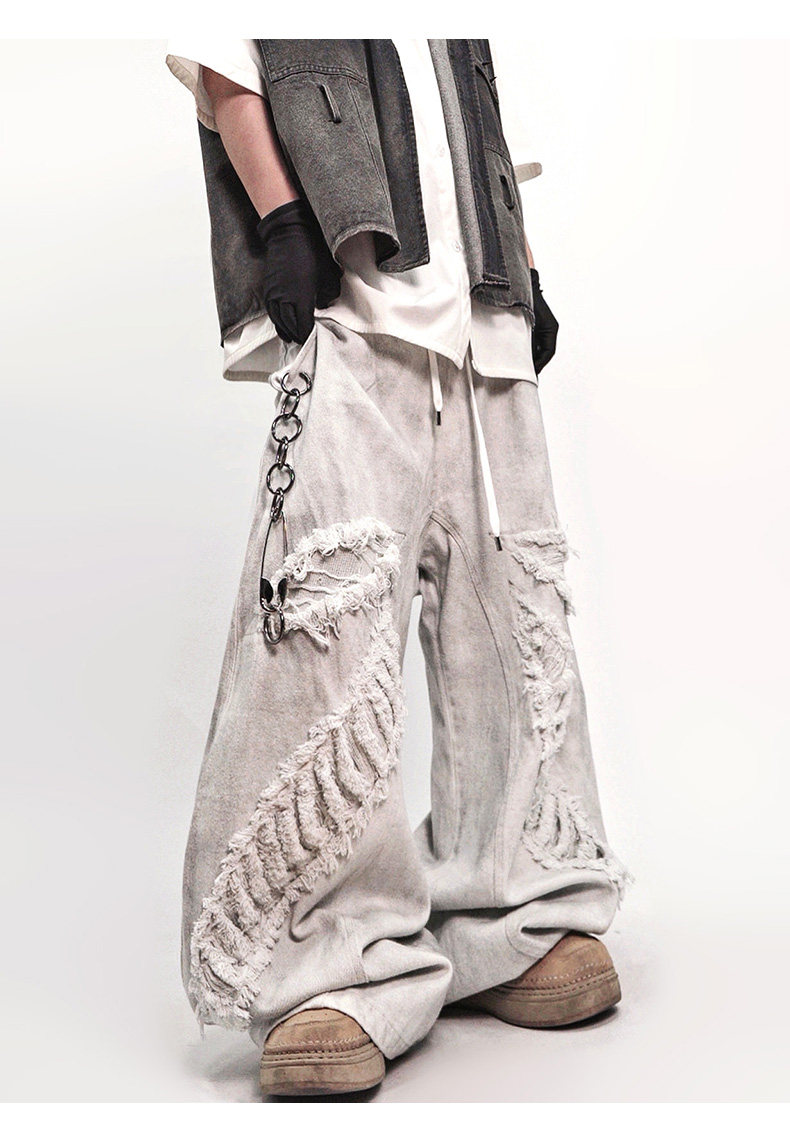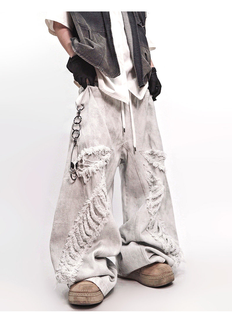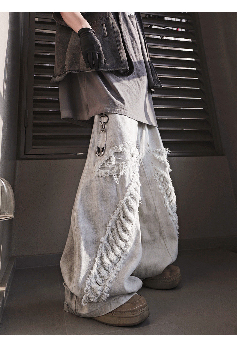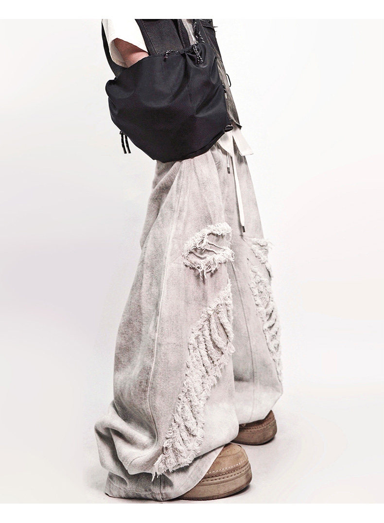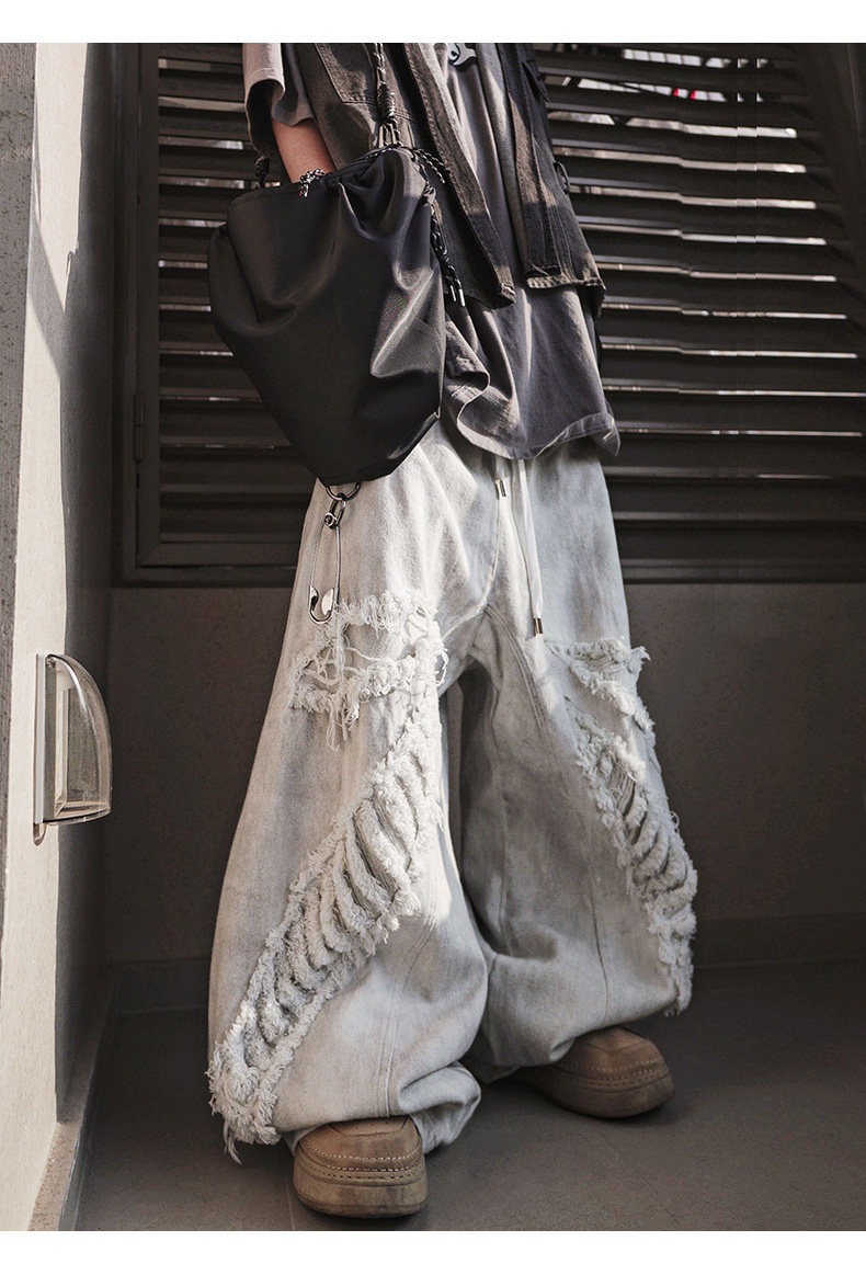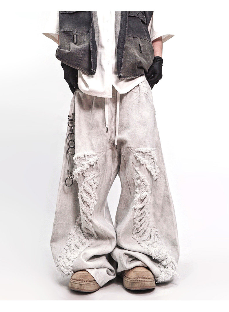 Mud Dye Damage Wide Leg Denim Jeans WN24014