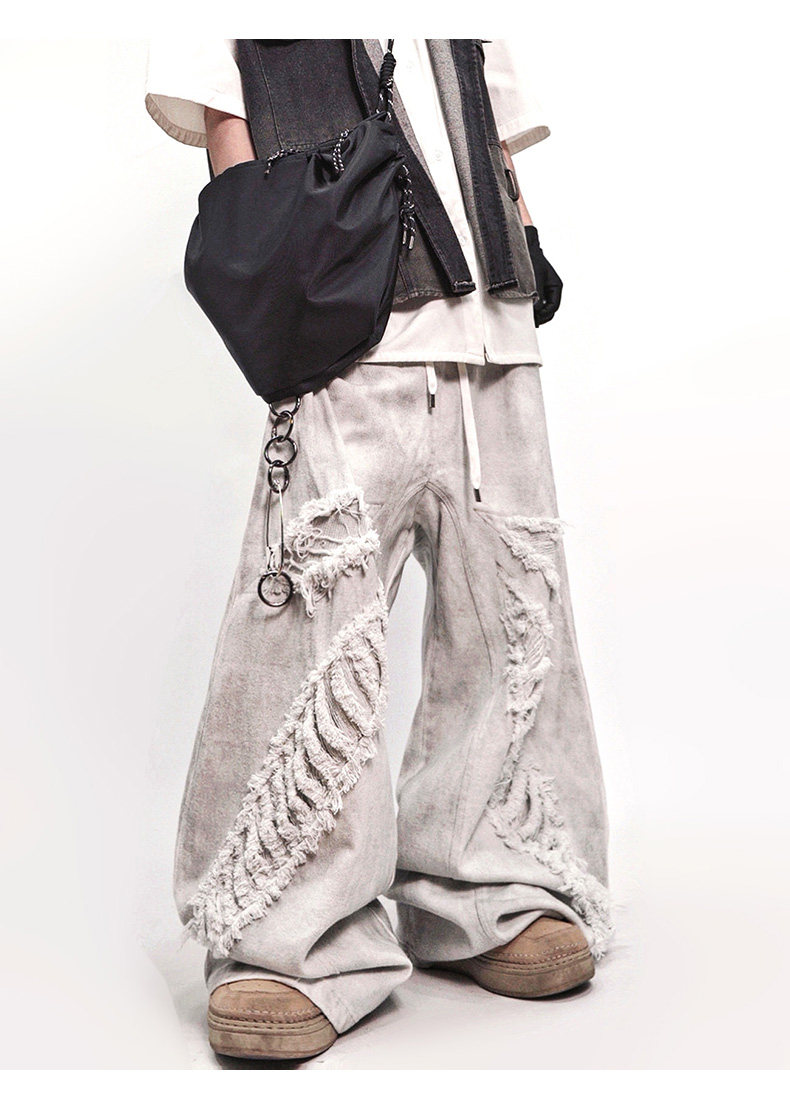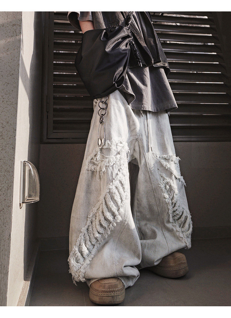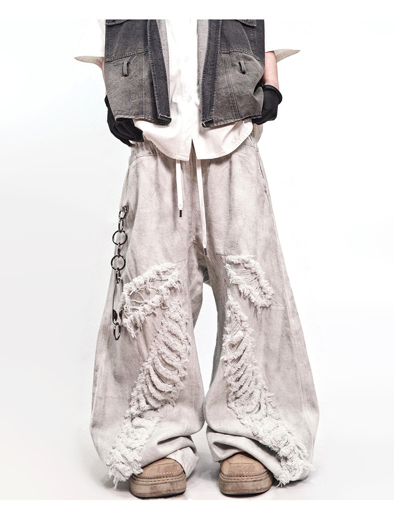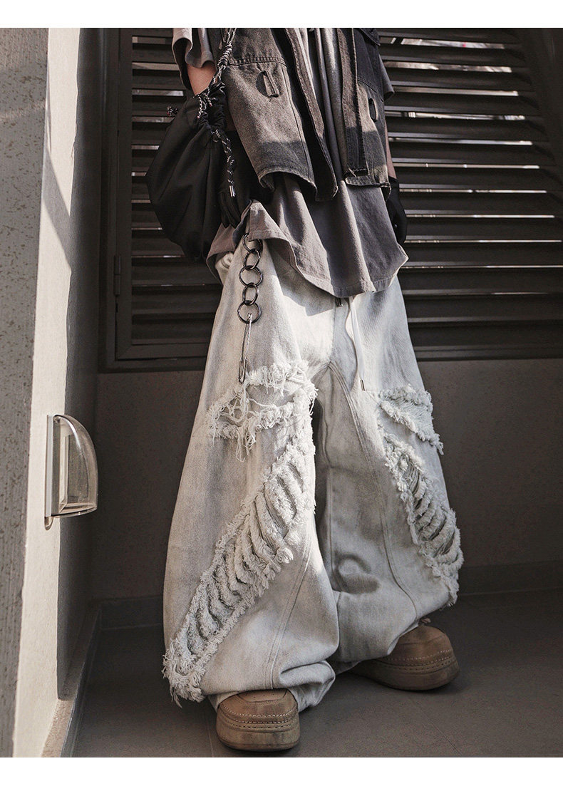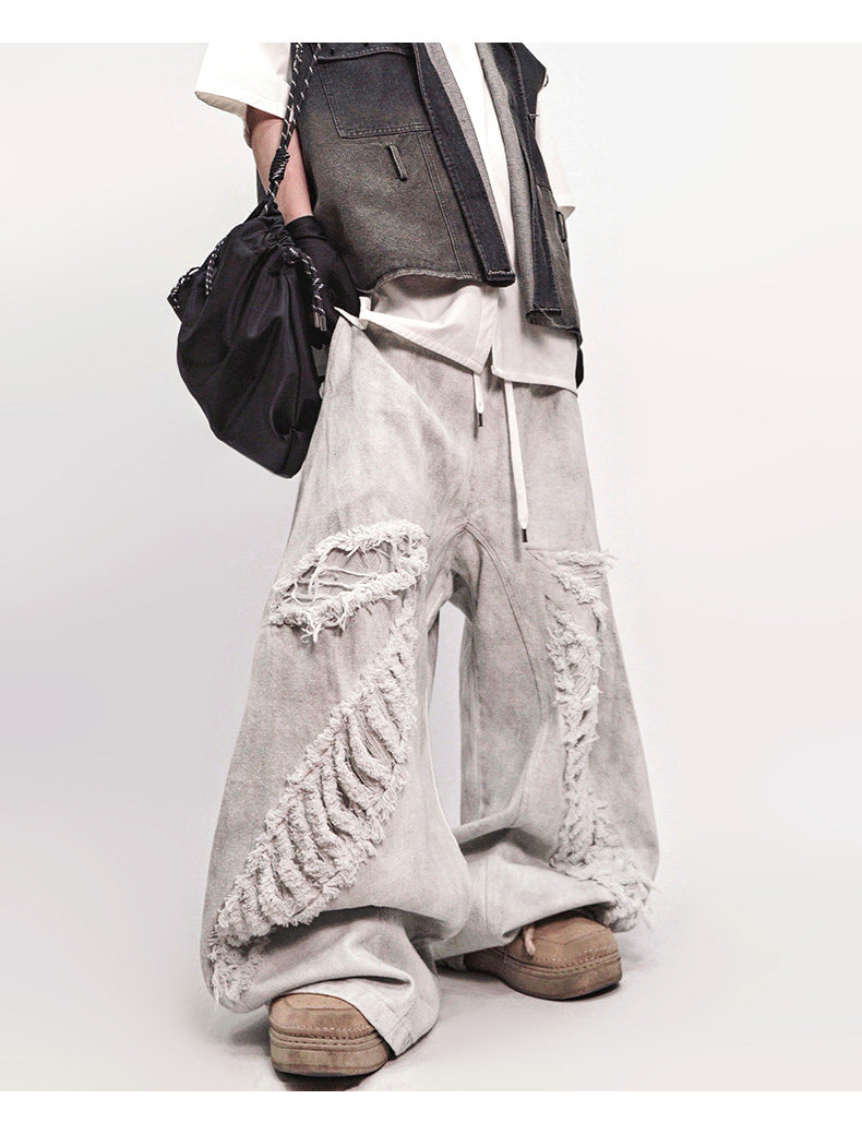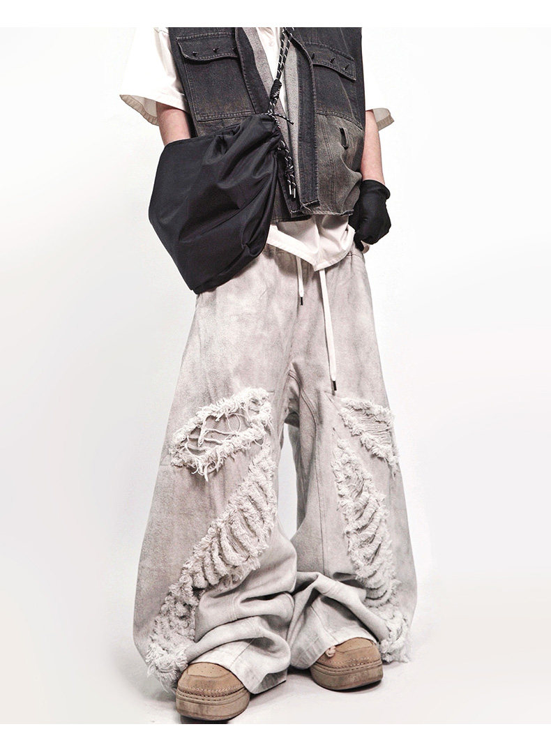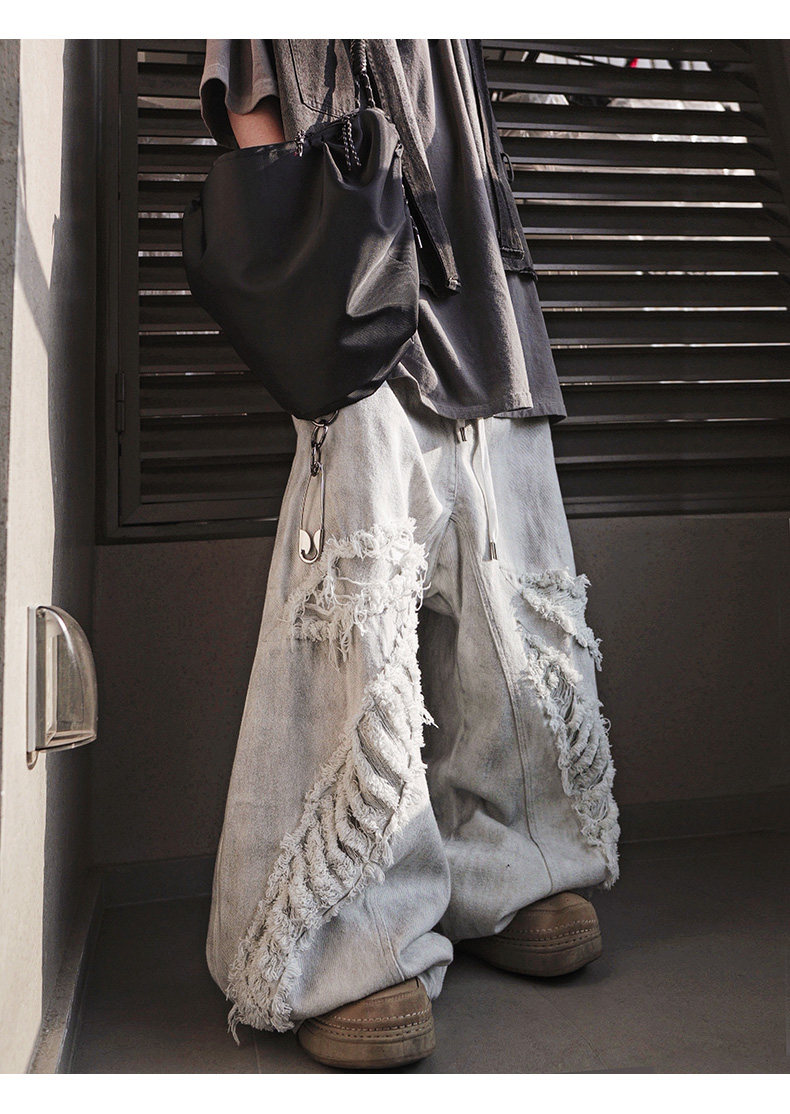 Mud Dye Damage Wide Leg Denim Jeans WN24014
