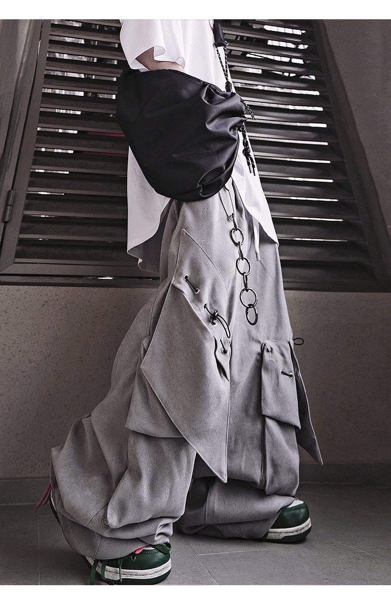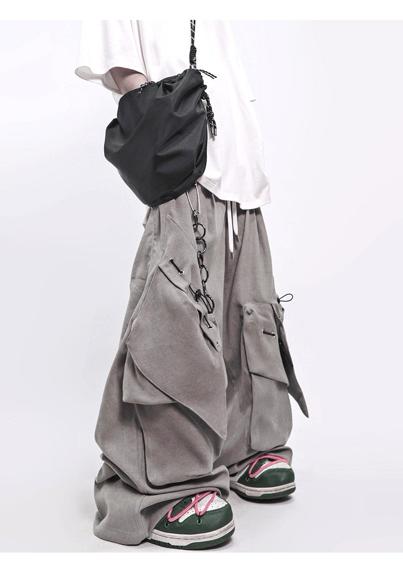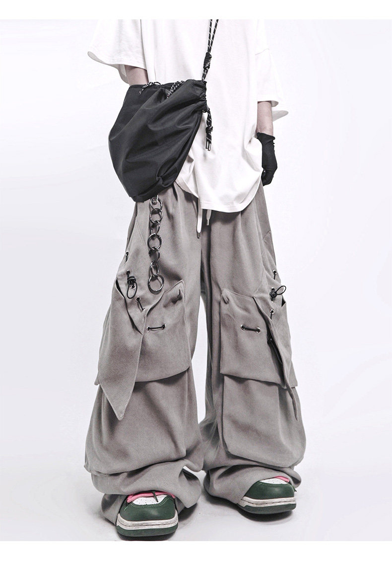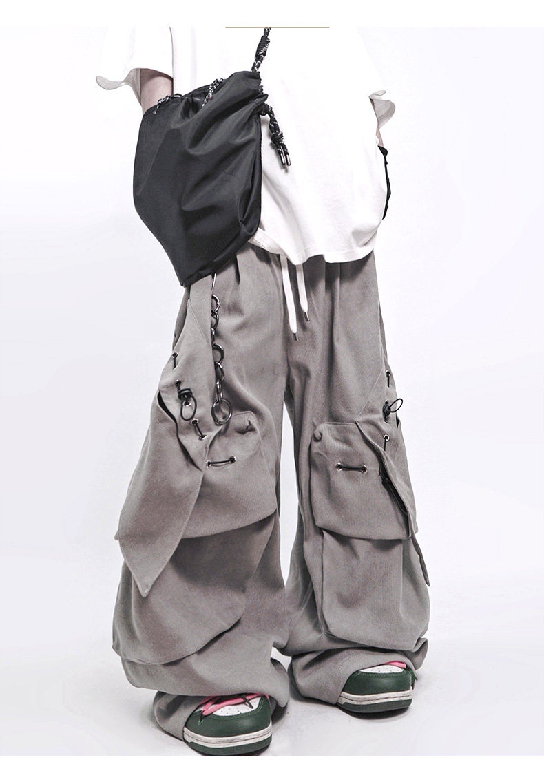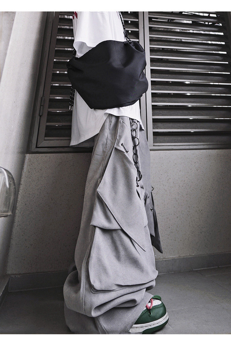 Multi-Pocket Curved Seam Wide Leg Pants WN24025