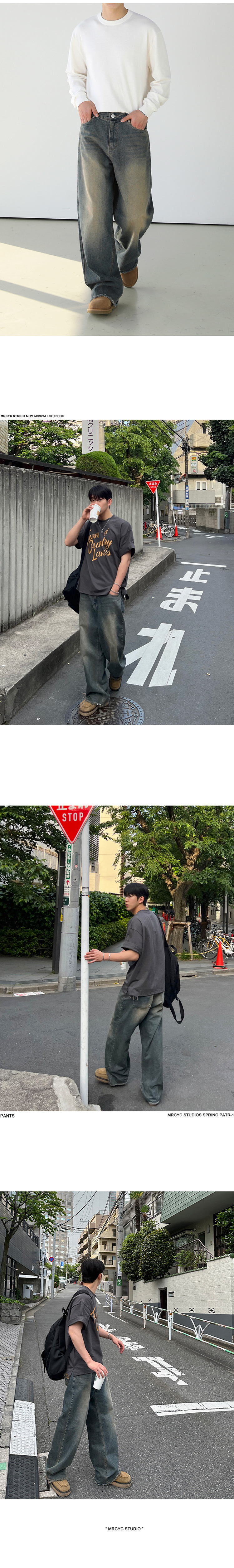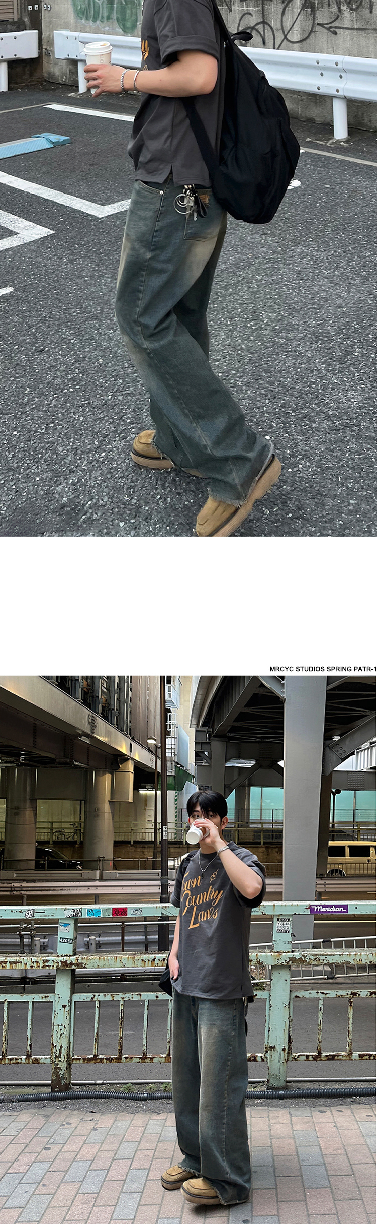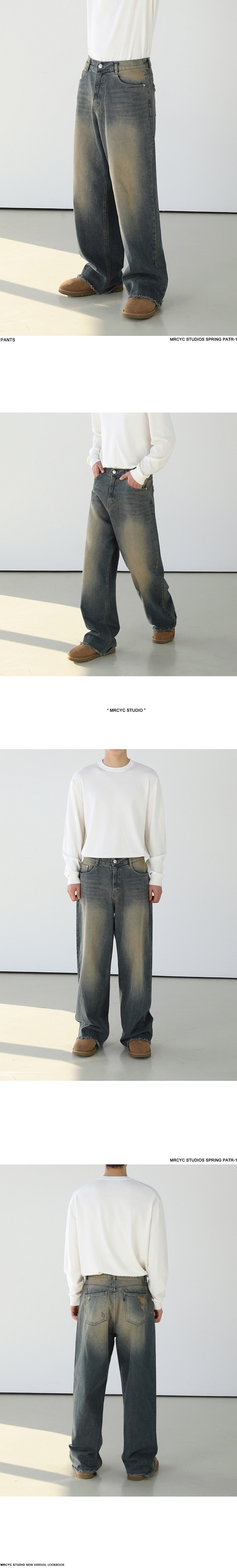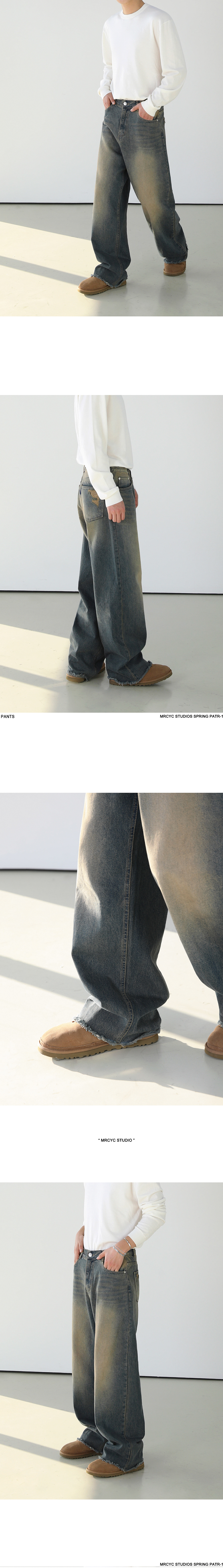 Yellow Mud Washed Wide-Leg Straight Denim Jeans WN6703