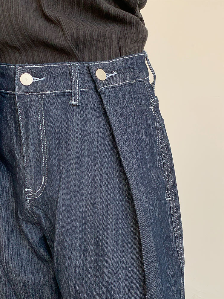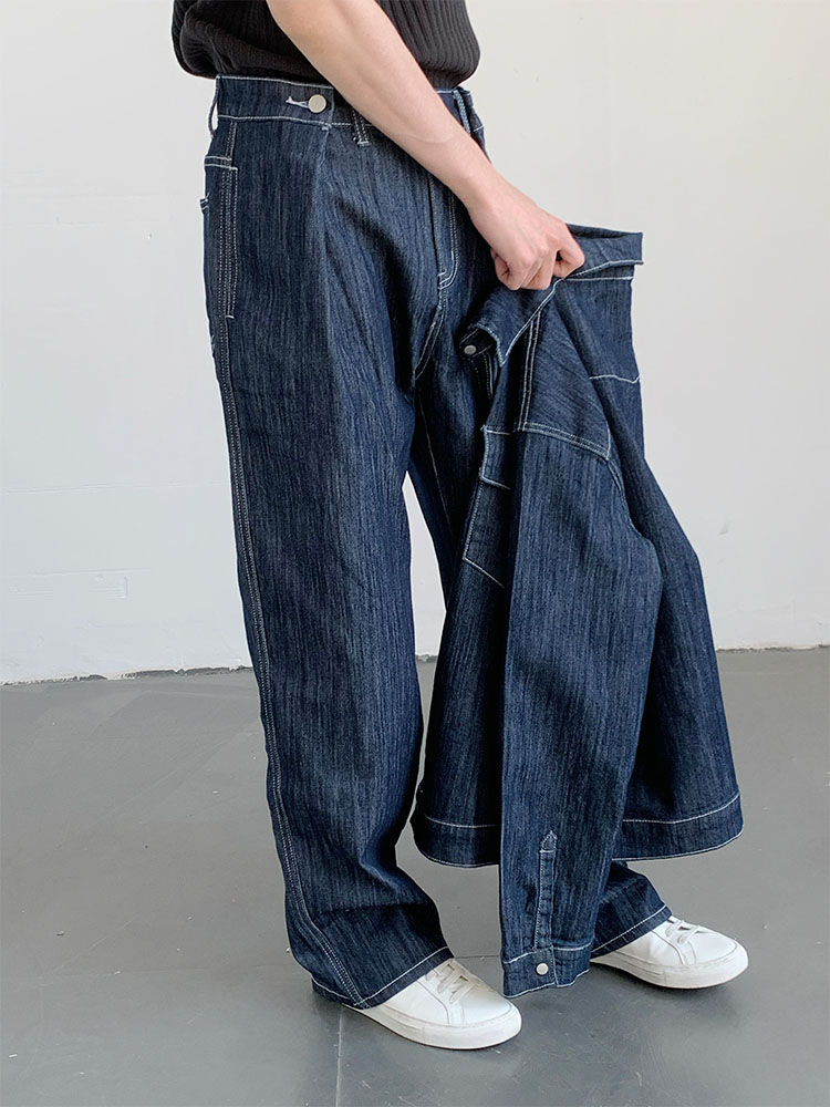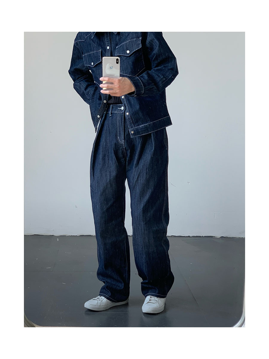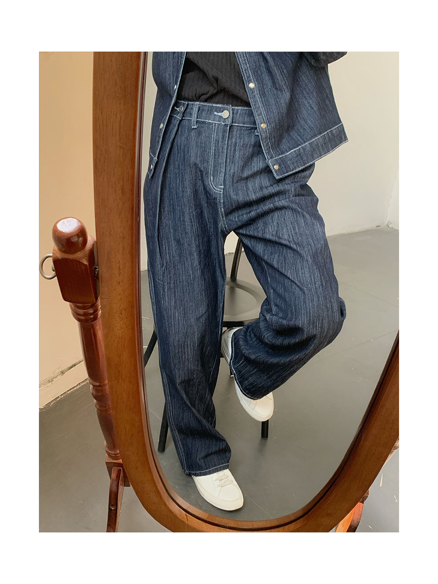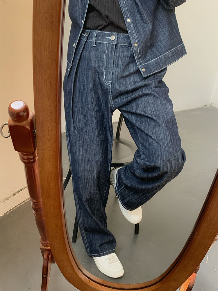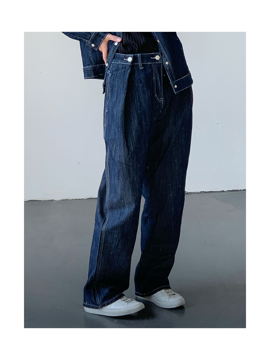 Washed Wide-Leg Straight Denim Jeans WN9645