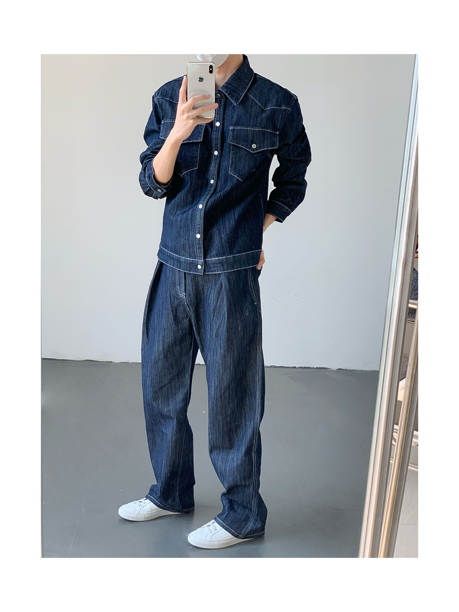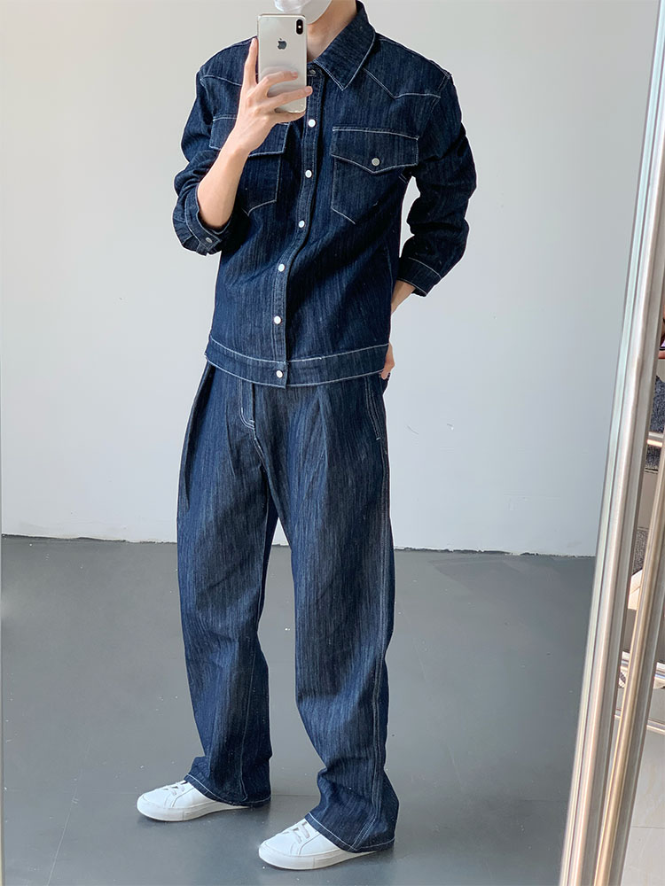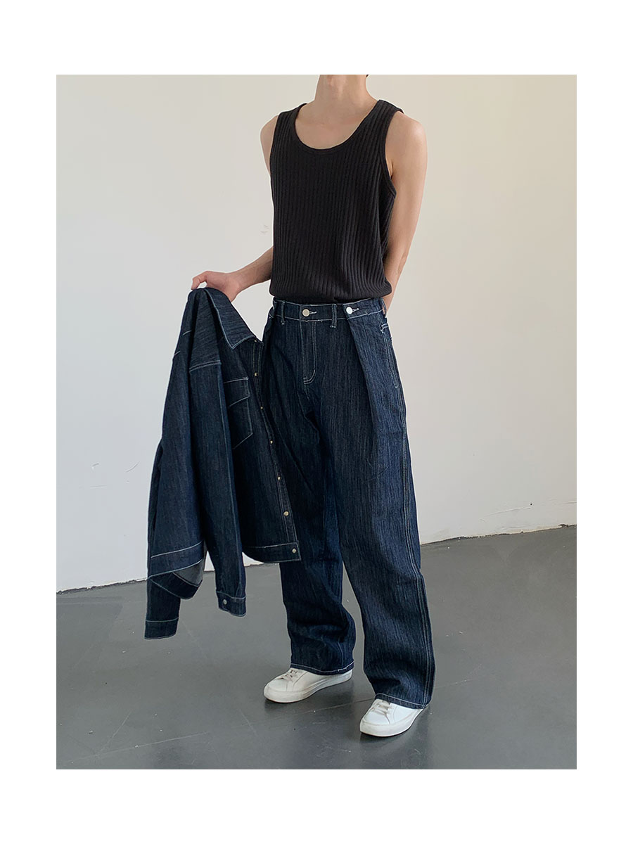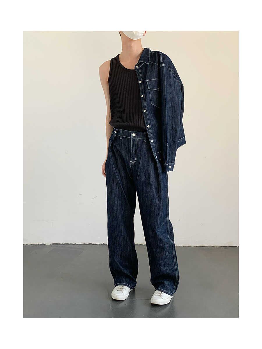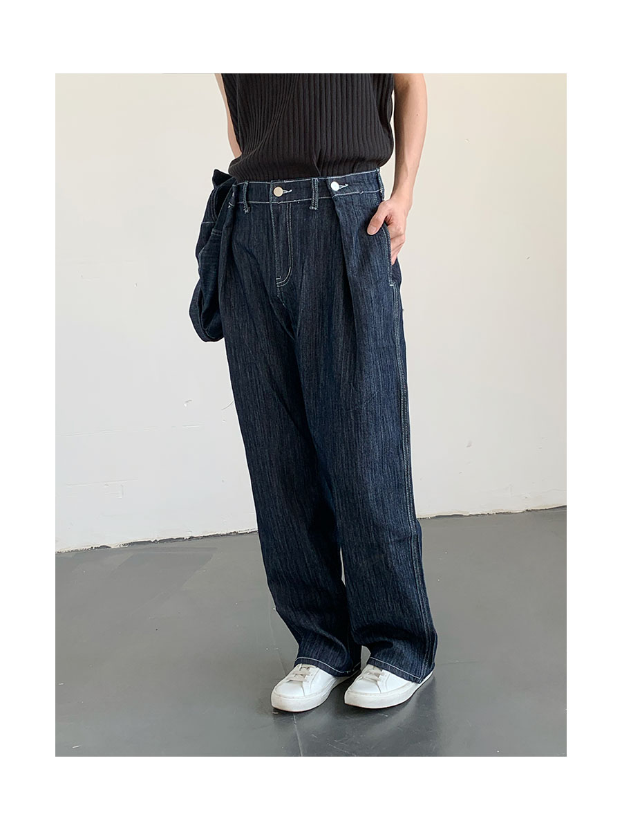 Washed Wide-Leg Straight Denim Jeans WN9645