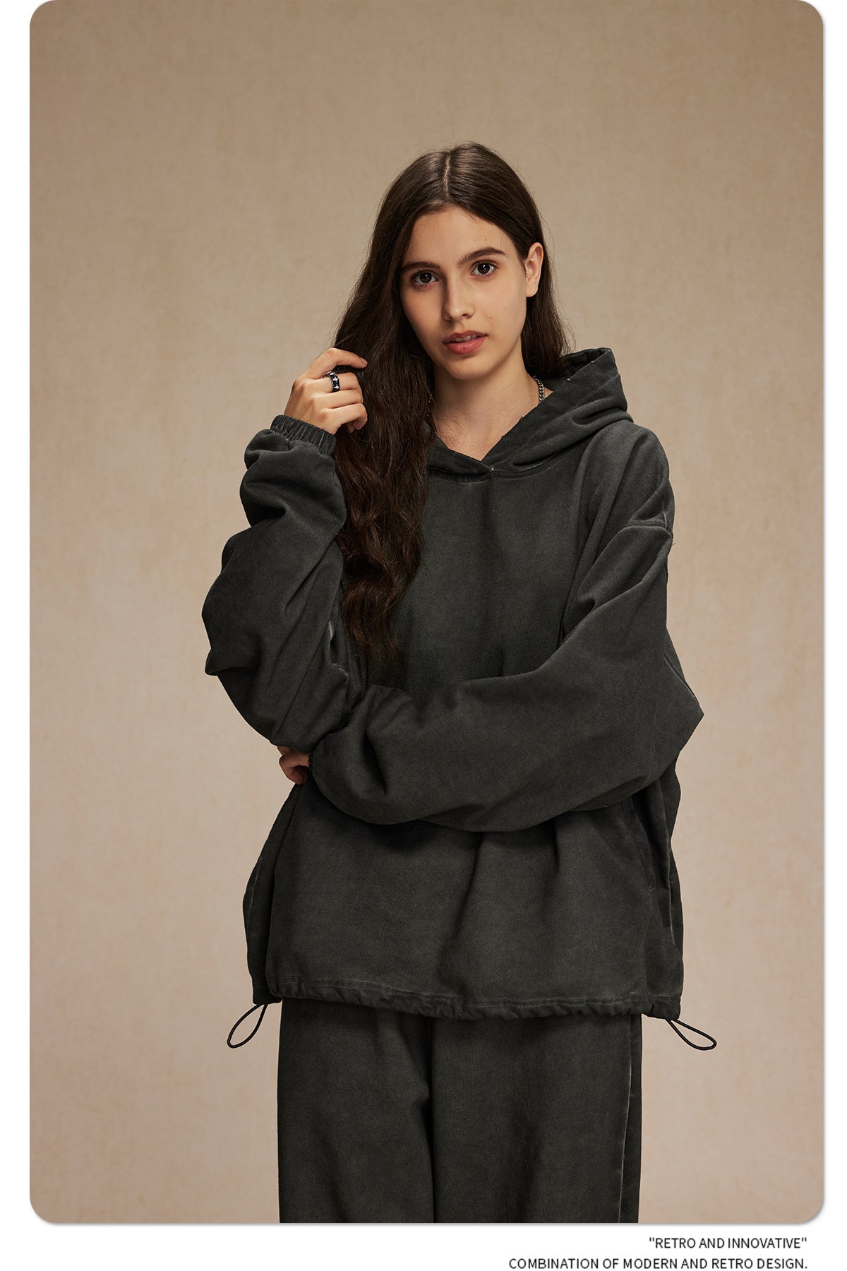 Oversize Drawstring Washed Hoodie WN9976