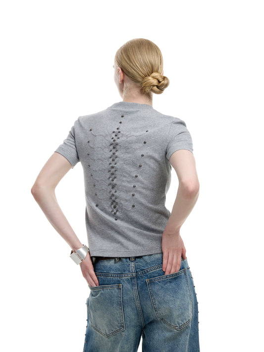 Splice PU Leather Ribbed Thermal Long Sleeve T-Shirt WN22617