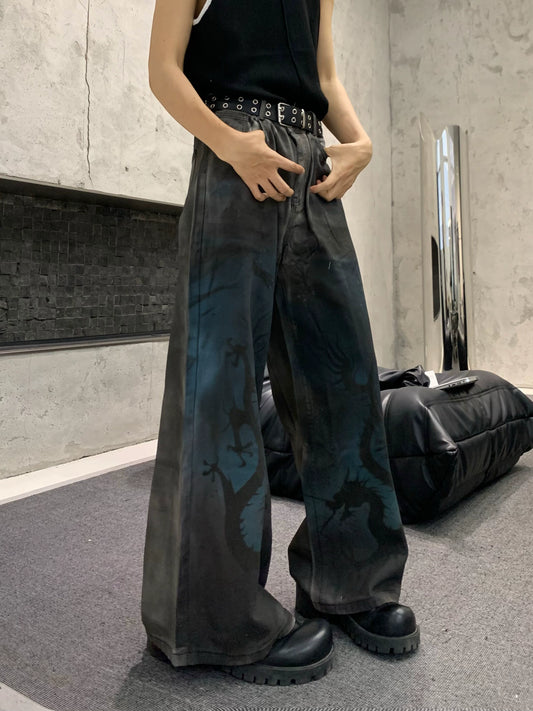 Graphic Art Print Wide Leg Denim Jeans WN19823