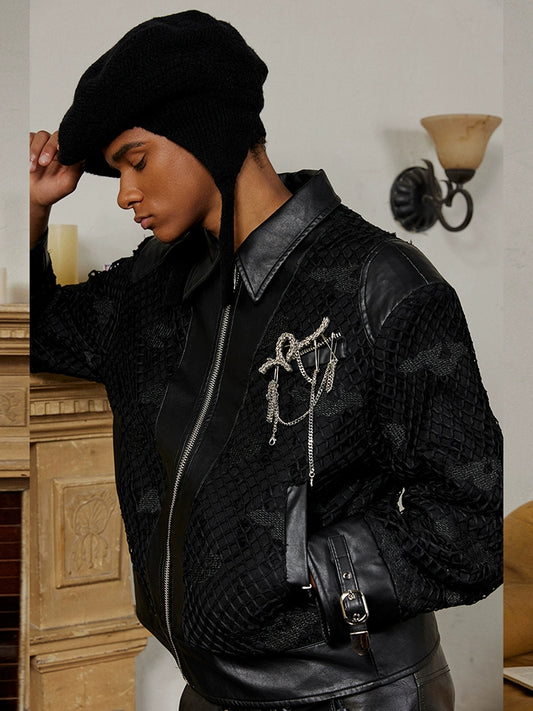 Double Layered Patchwork Mesh Turn-Down Collar Jacket WN17844