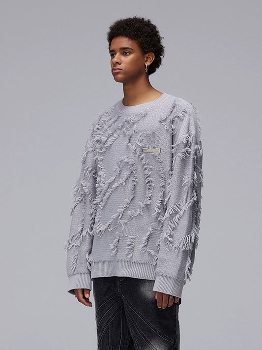 Tassel Jacquard Design Oversize Knit Sweater WN17846