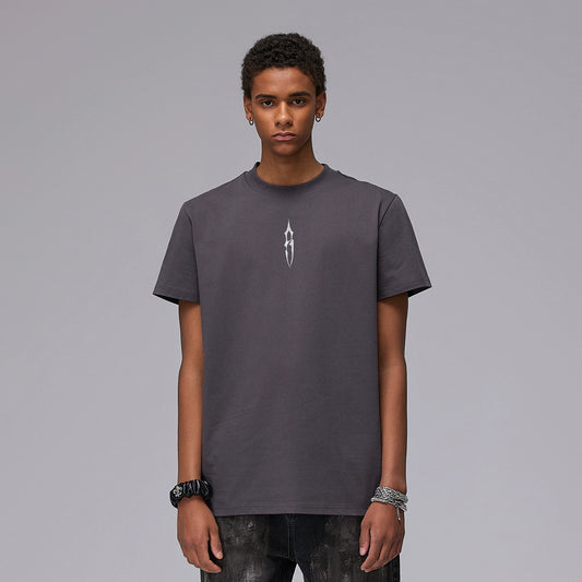 Metal Stud Design Paint Washed Damage Oversize Short Sleeve T-Shirt WN17845