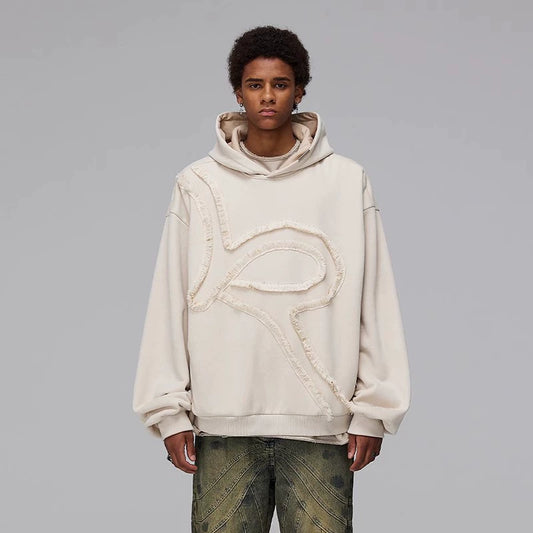 Wave Embroidery Oversize Drop Shoulder Color Block Hoodie WN17827