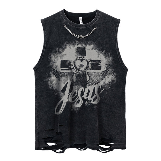 Washed Rivet Design Letter Print Short Zipper Hoodie WN21917