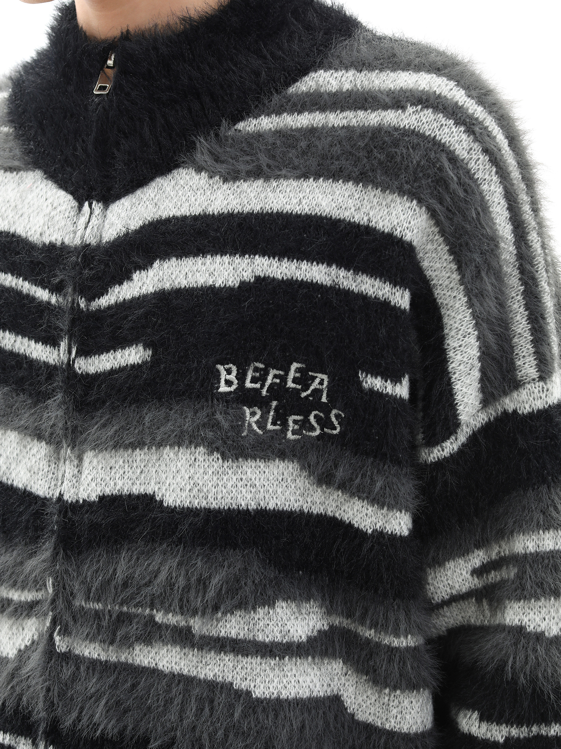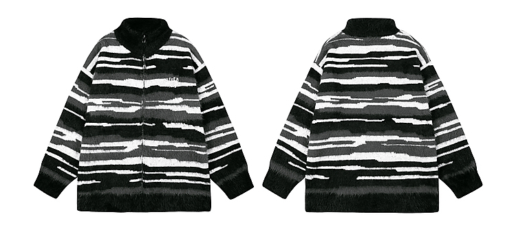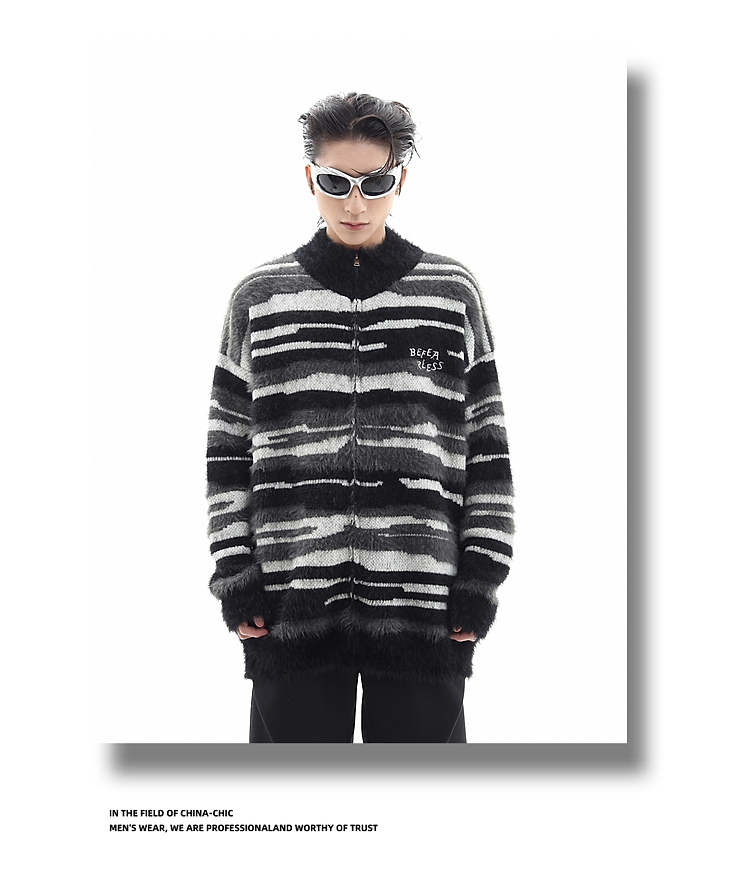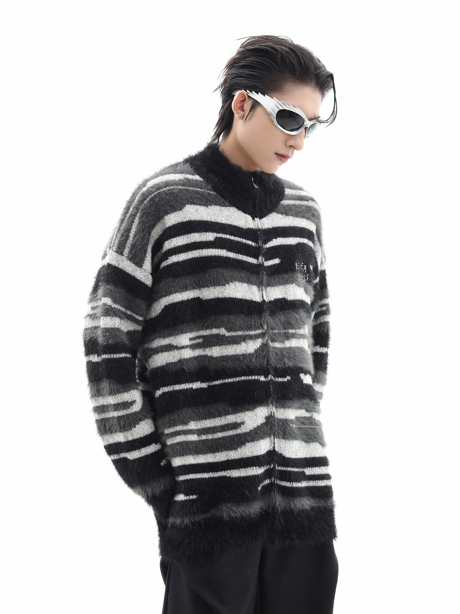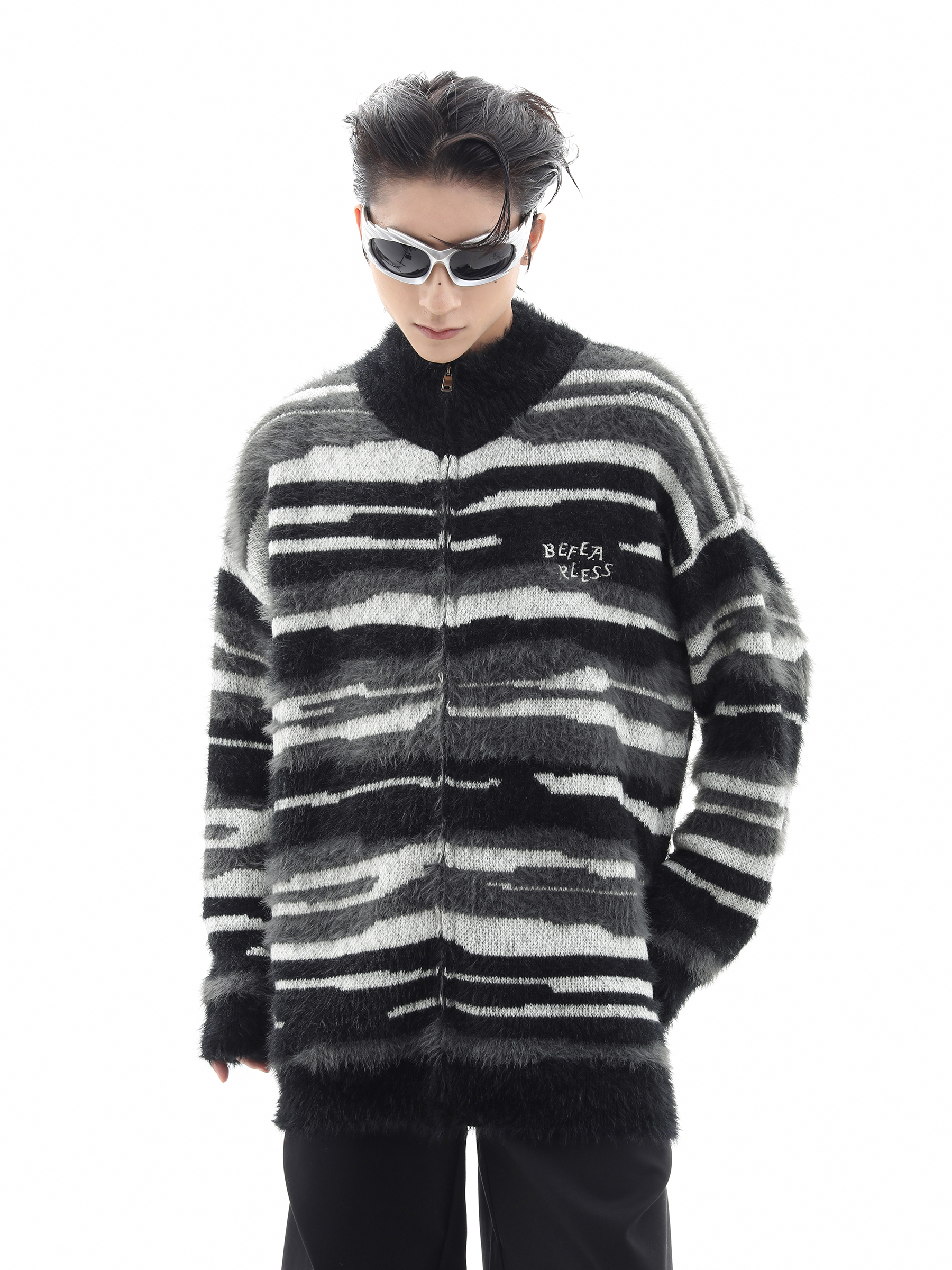 Zebra Print Shaggy Zipper Knit Cardigan WN10349