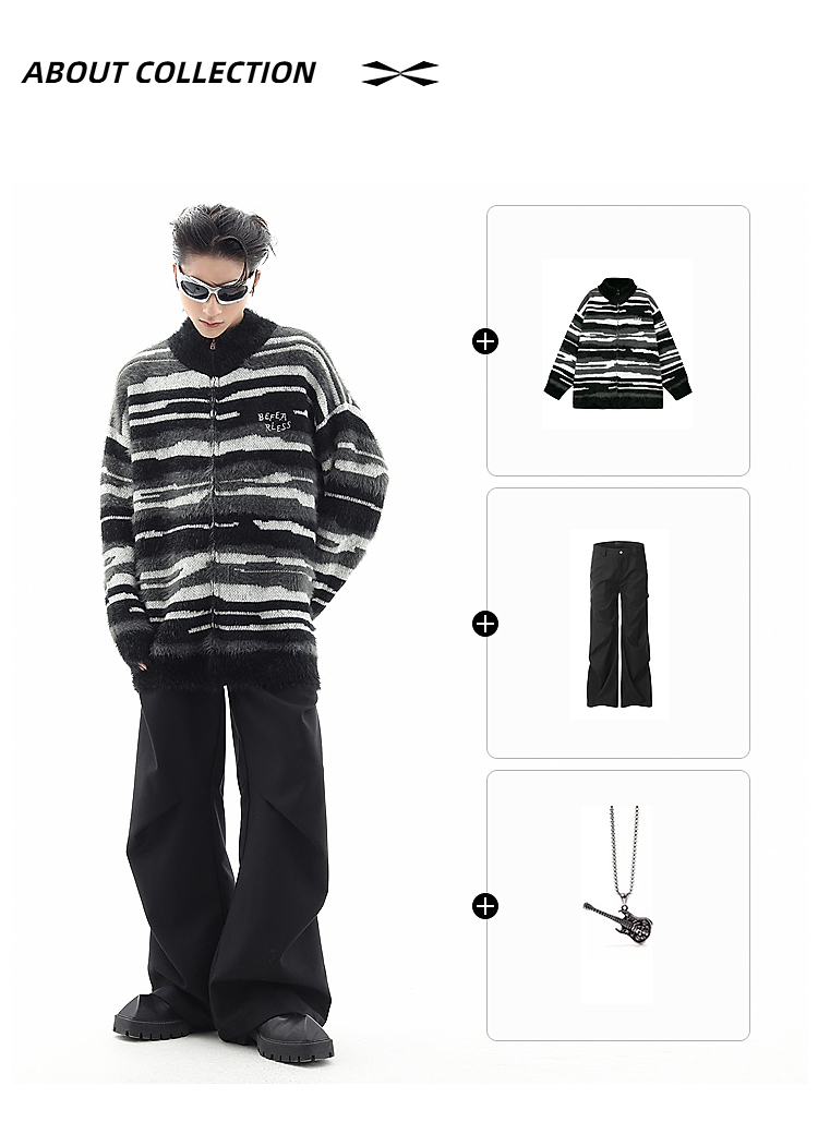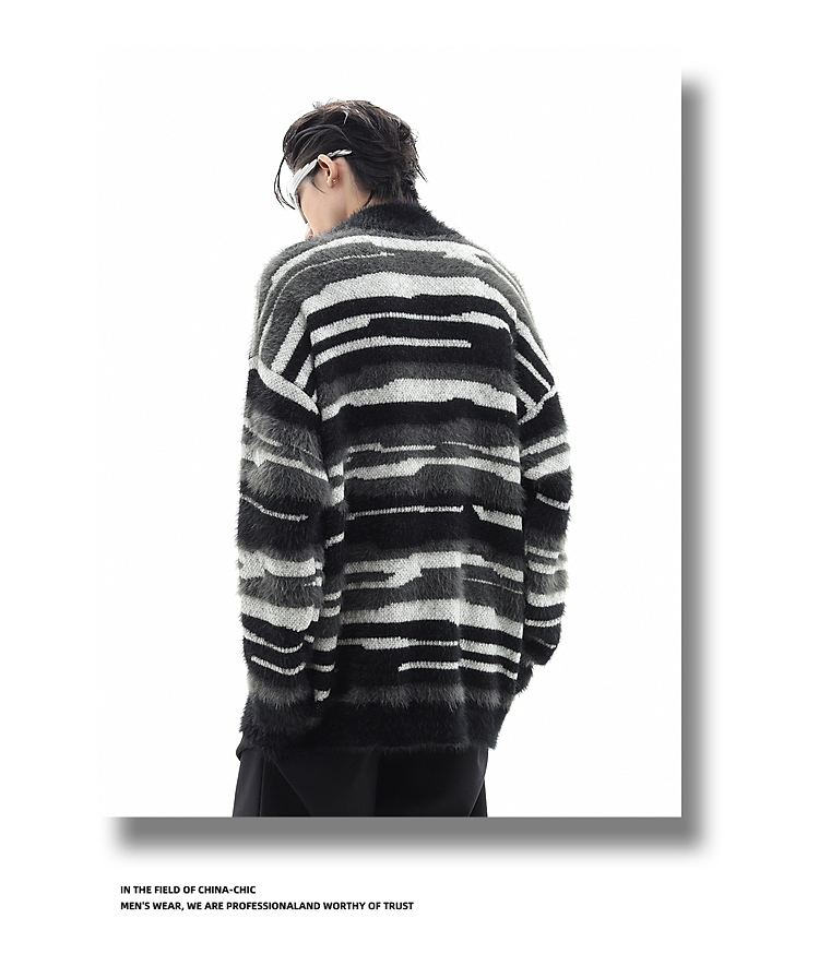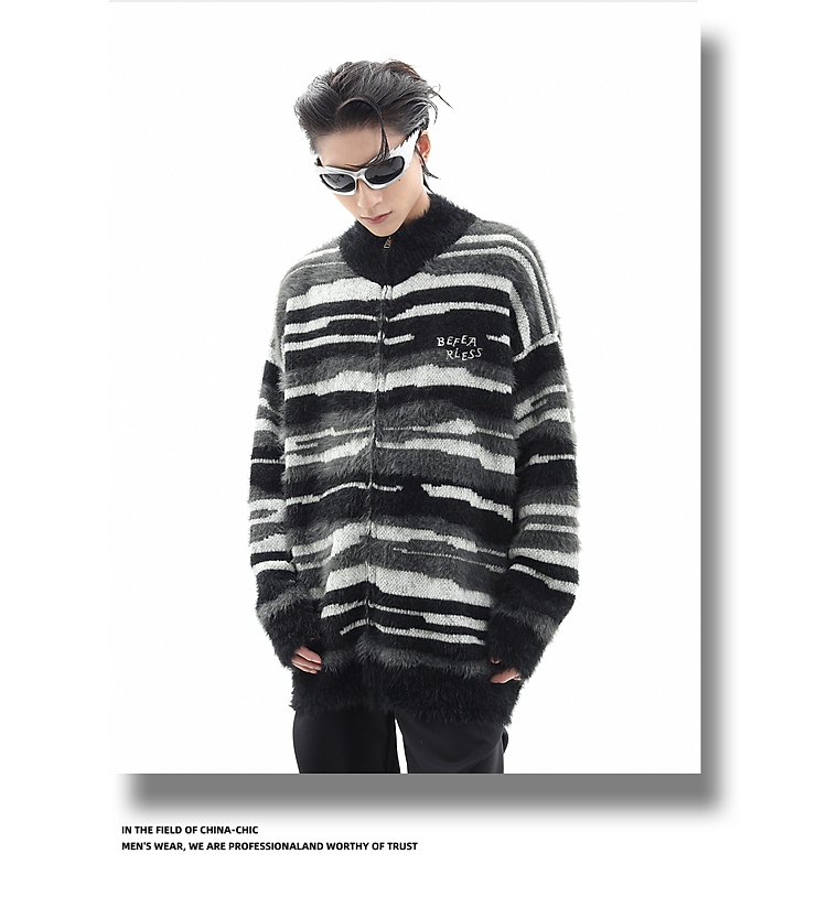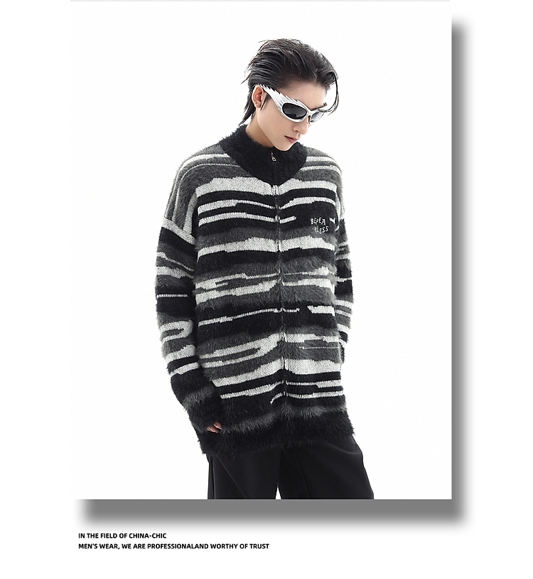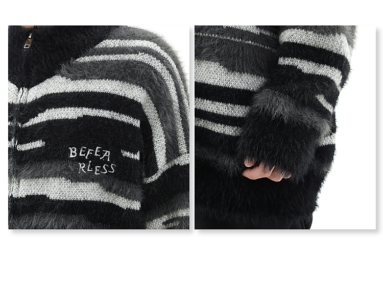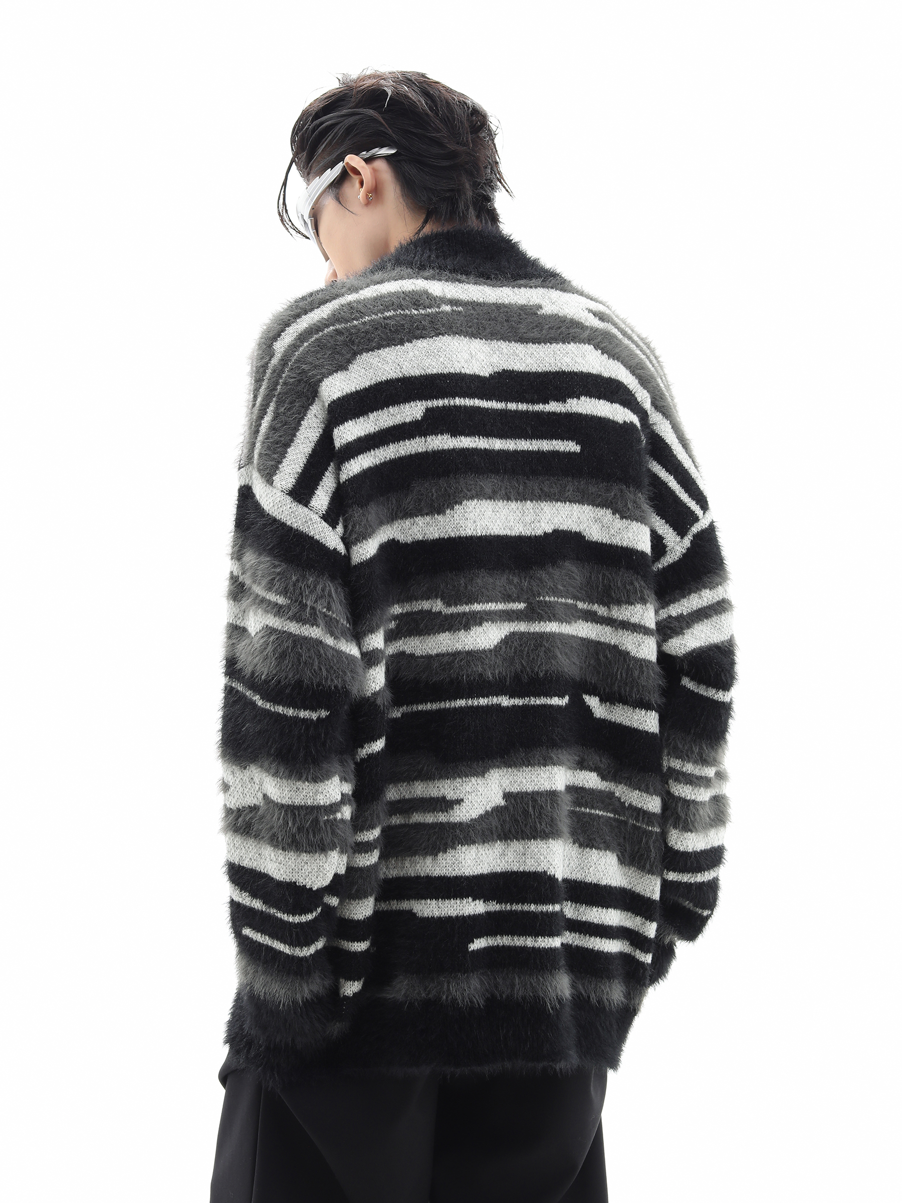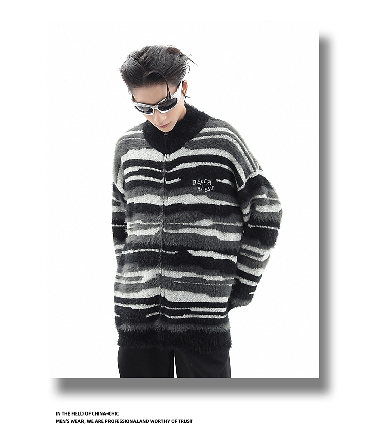 Zebra Print Shaggy Zipper Knit Cardigan WN10349