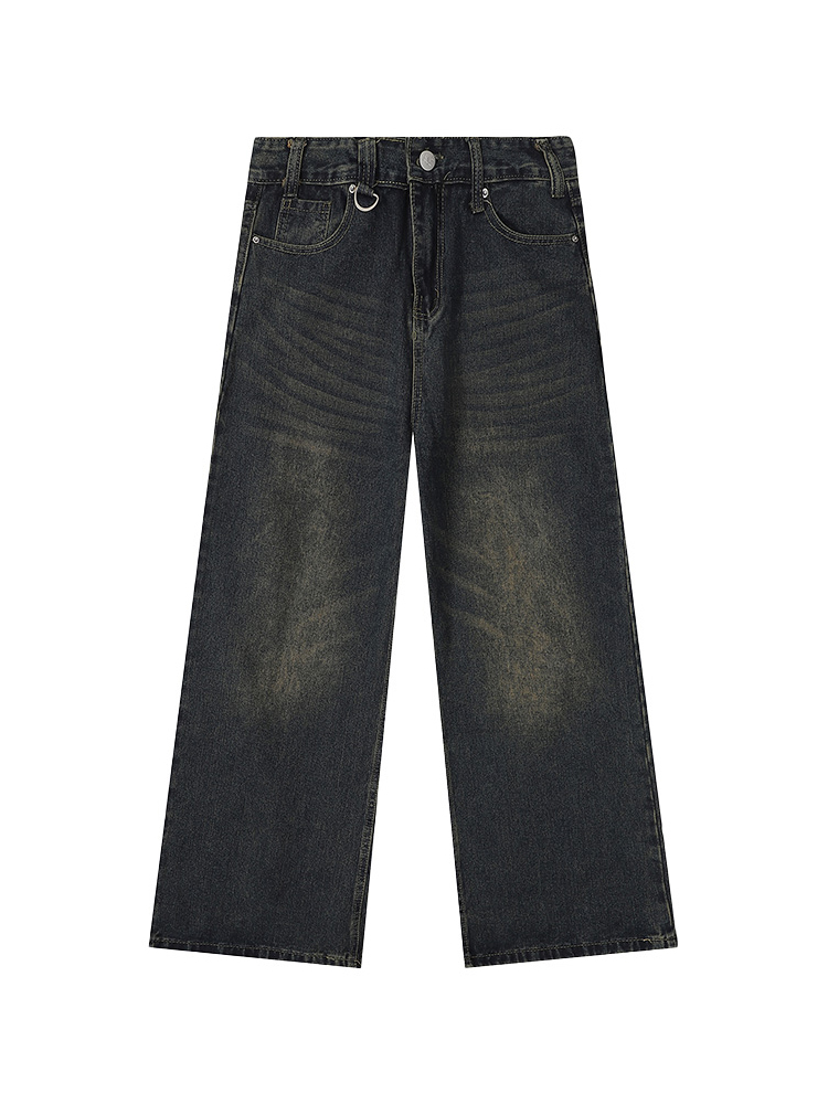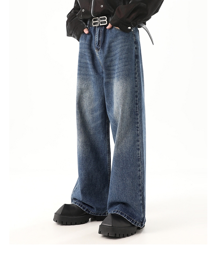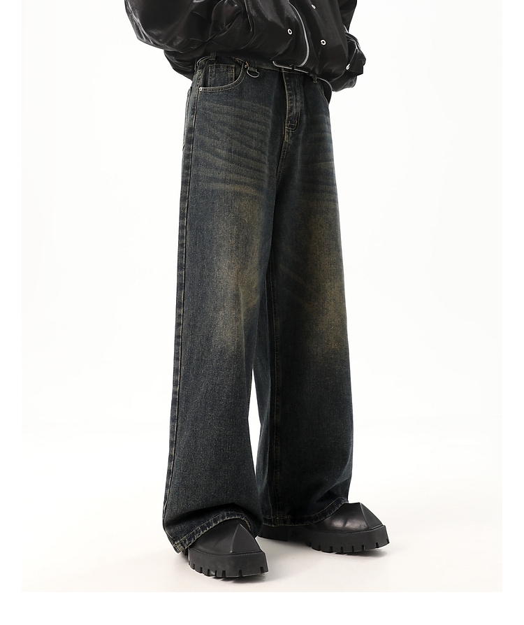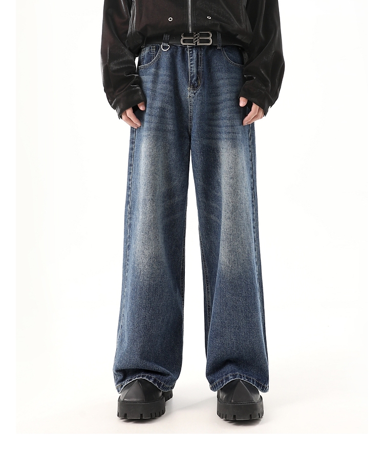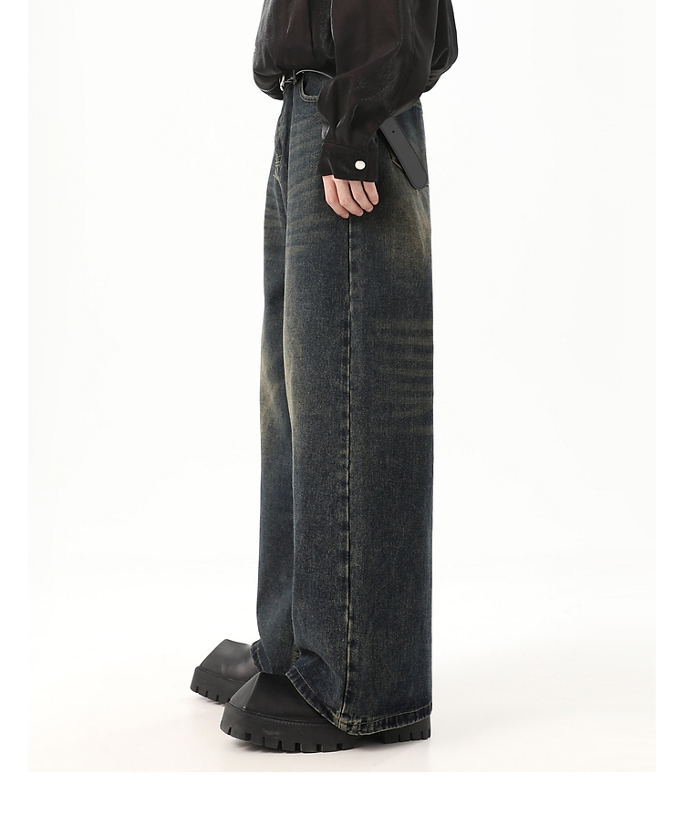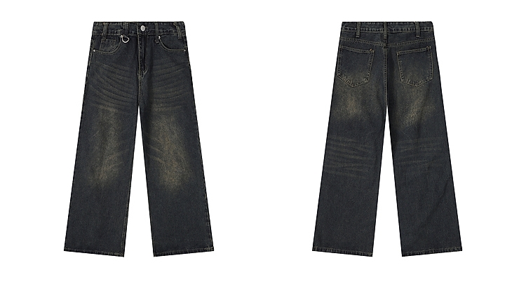 Washed Wide-Leg Straight Denim Jeans WN10399