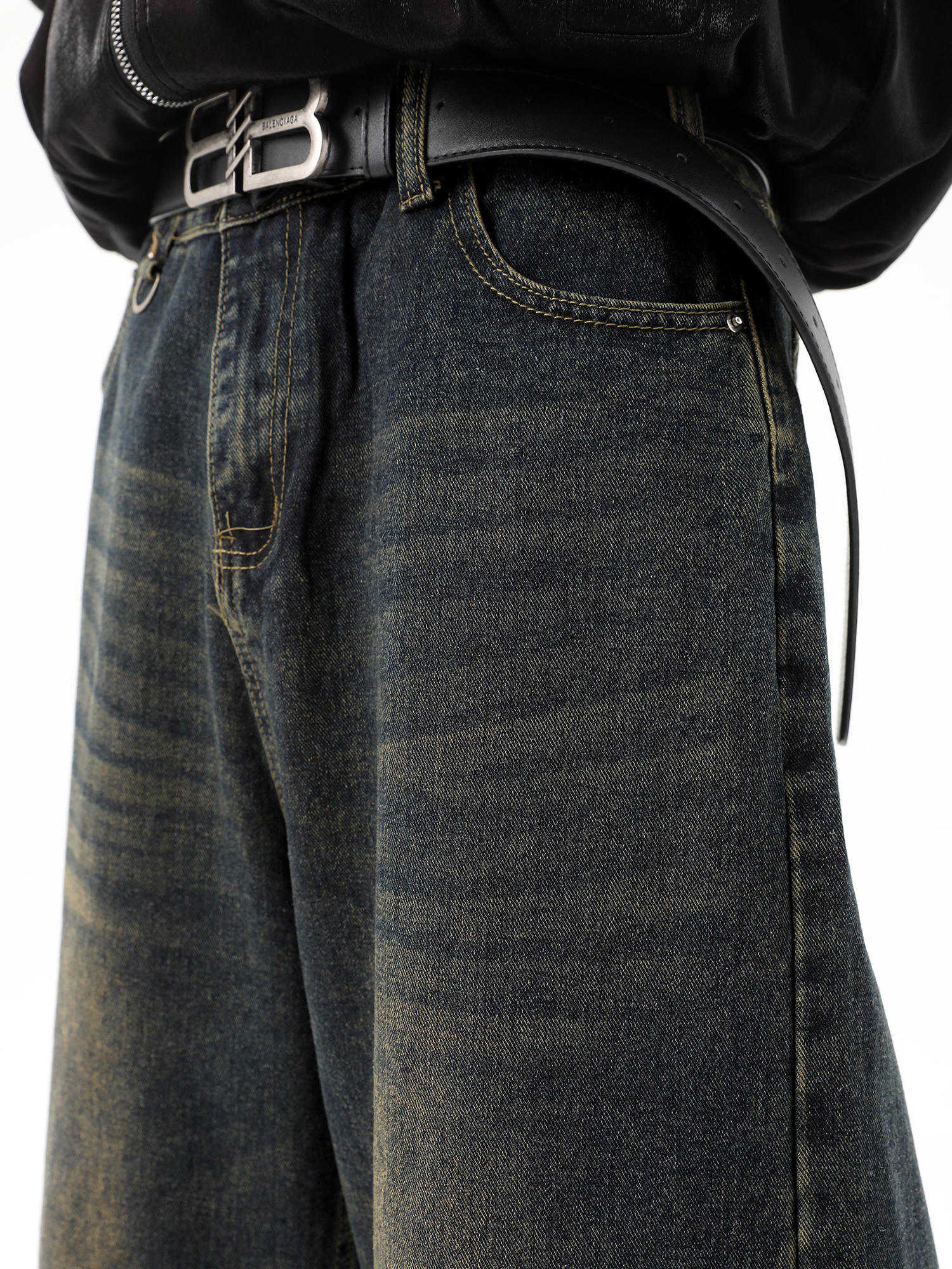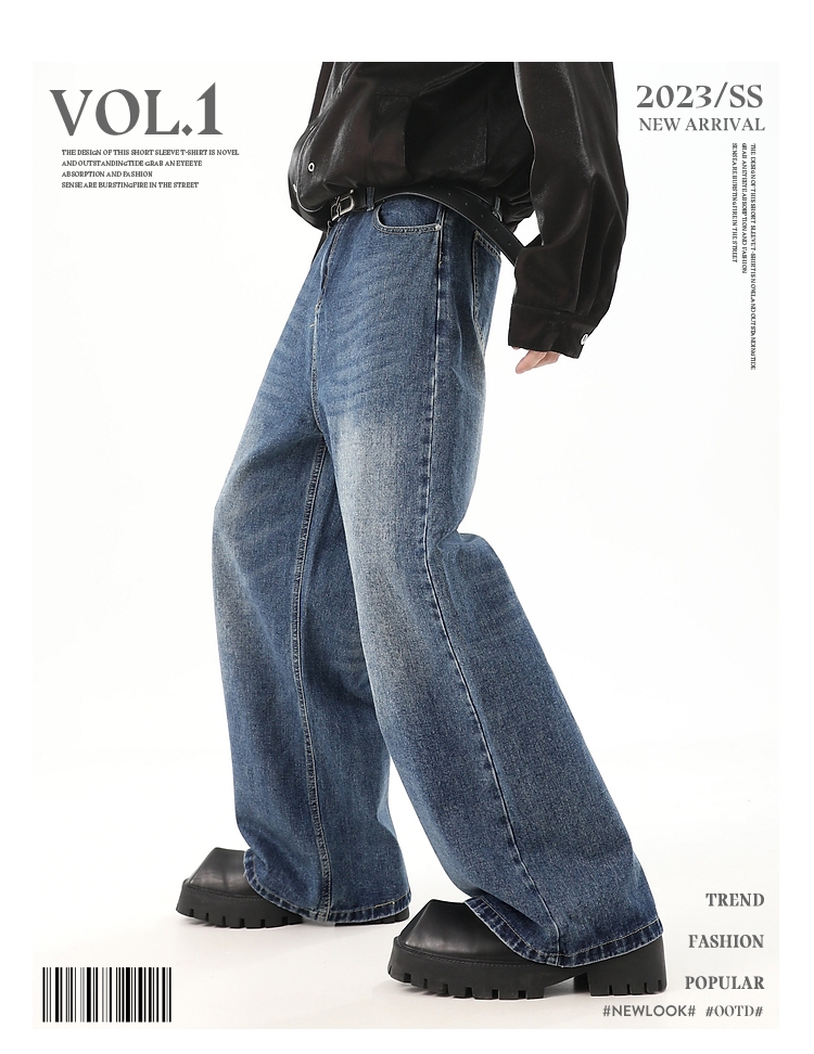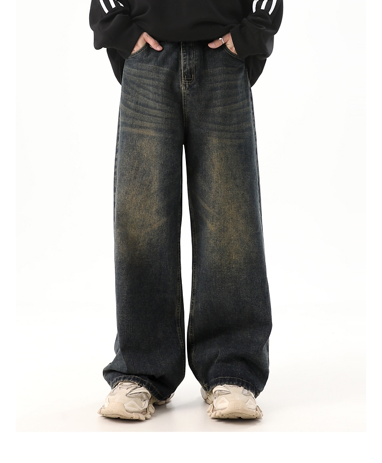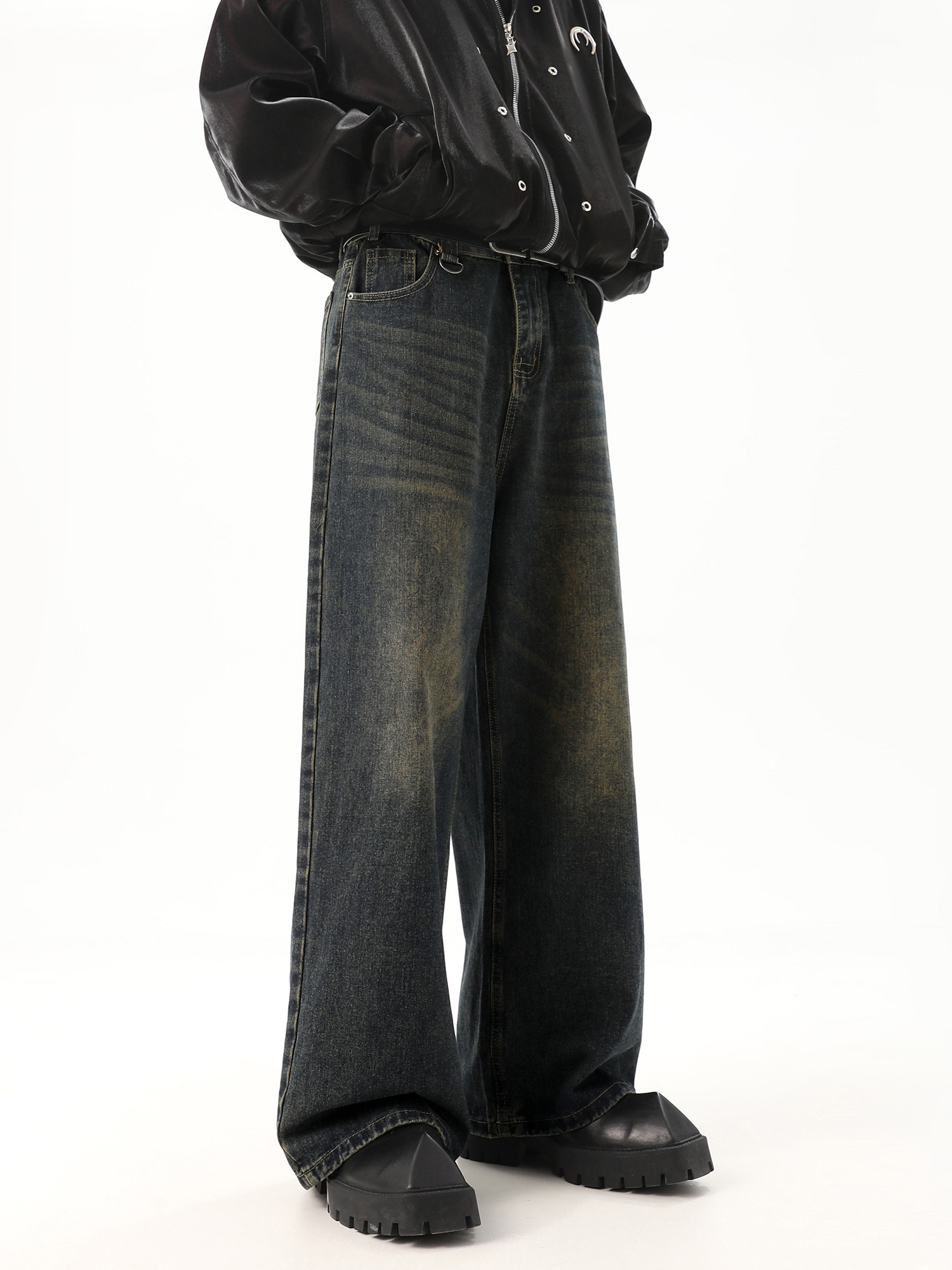 Washed Wide-Leg Straight Denim Jeans WN10399