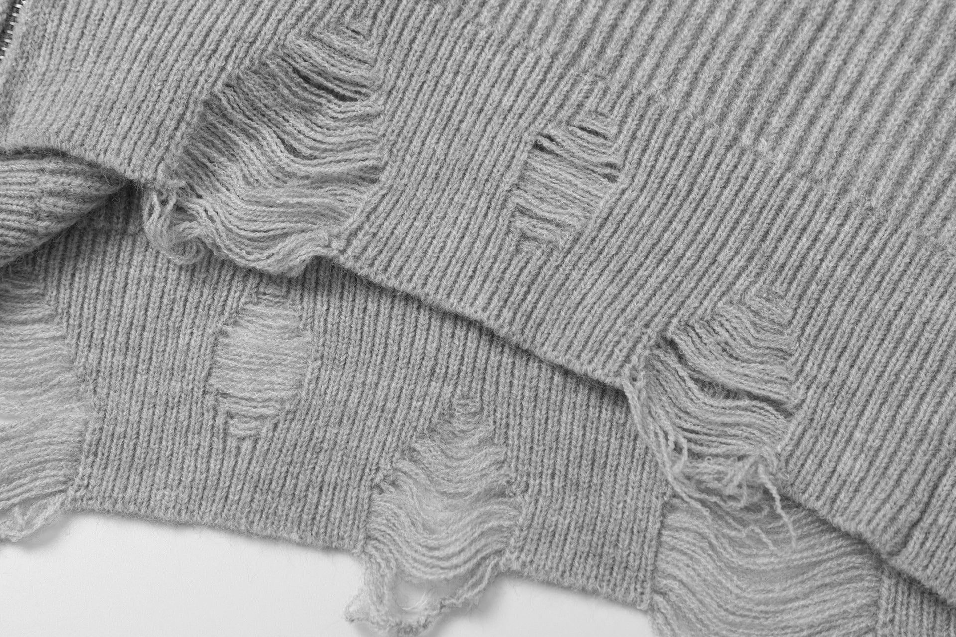 Cross Letter Print Double Zipper Stand Neck Knit Cardigan WN11504