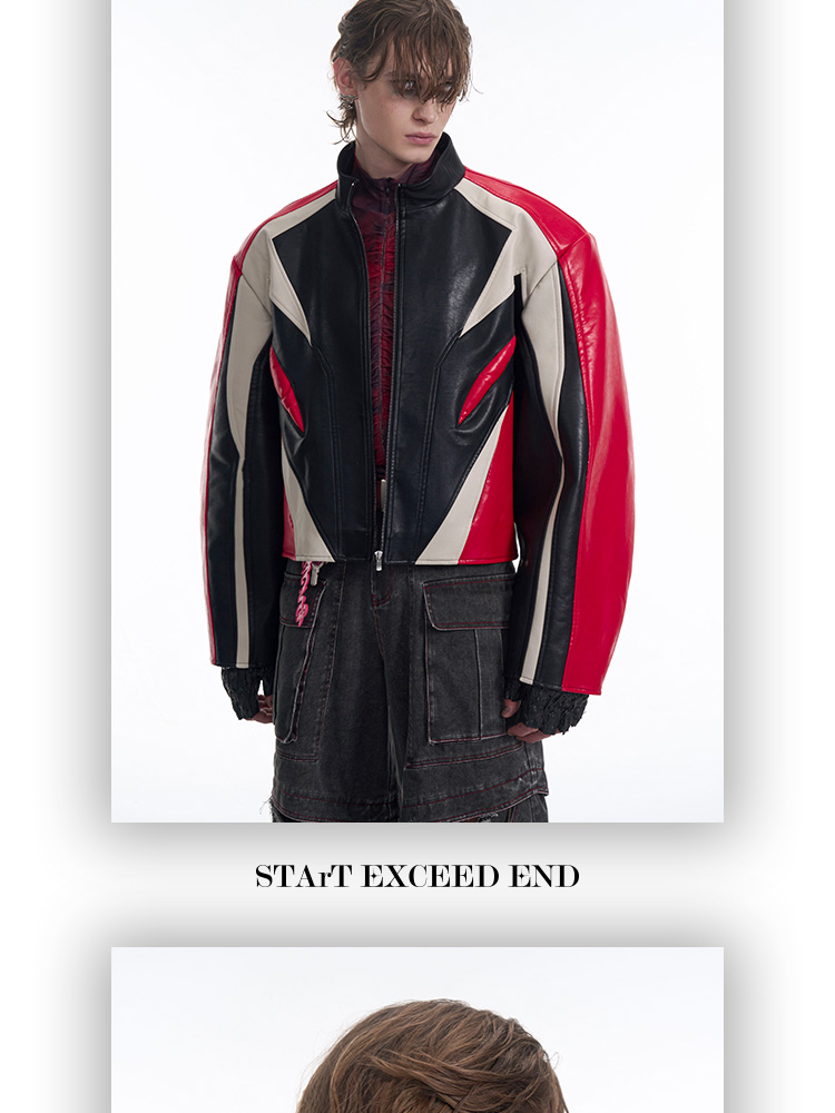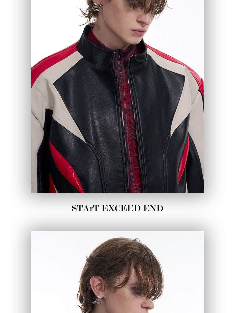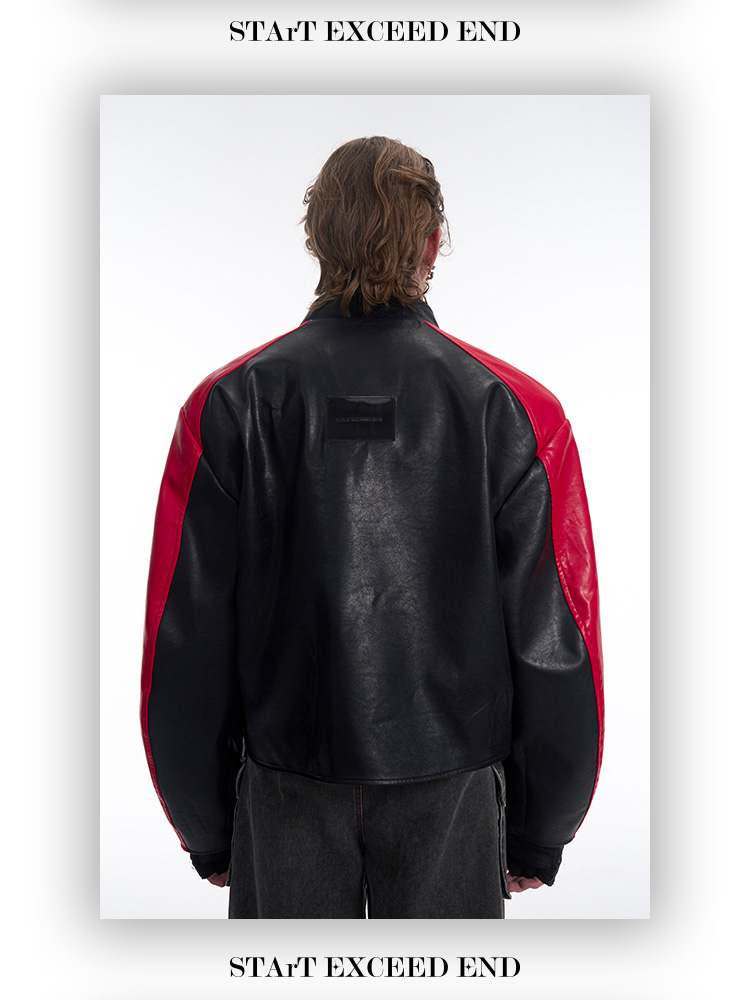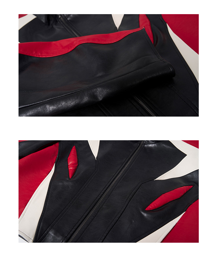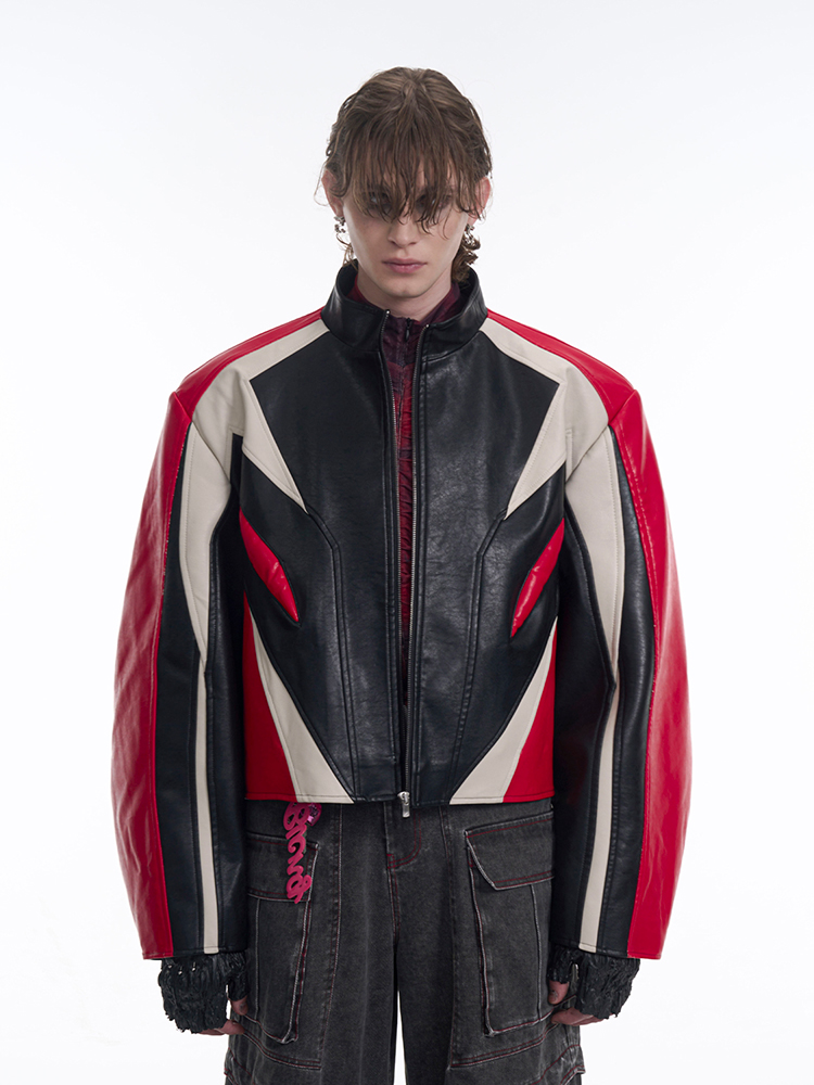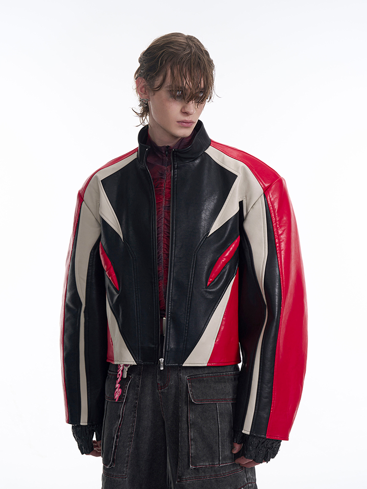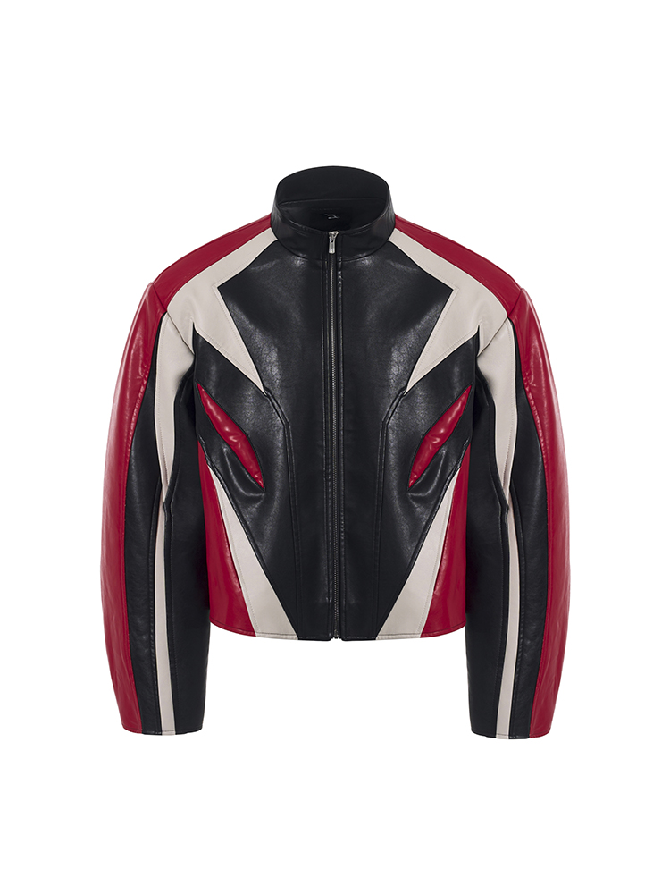 Standing Neck Curved-Sleeve PU Leather Jacket WN13247