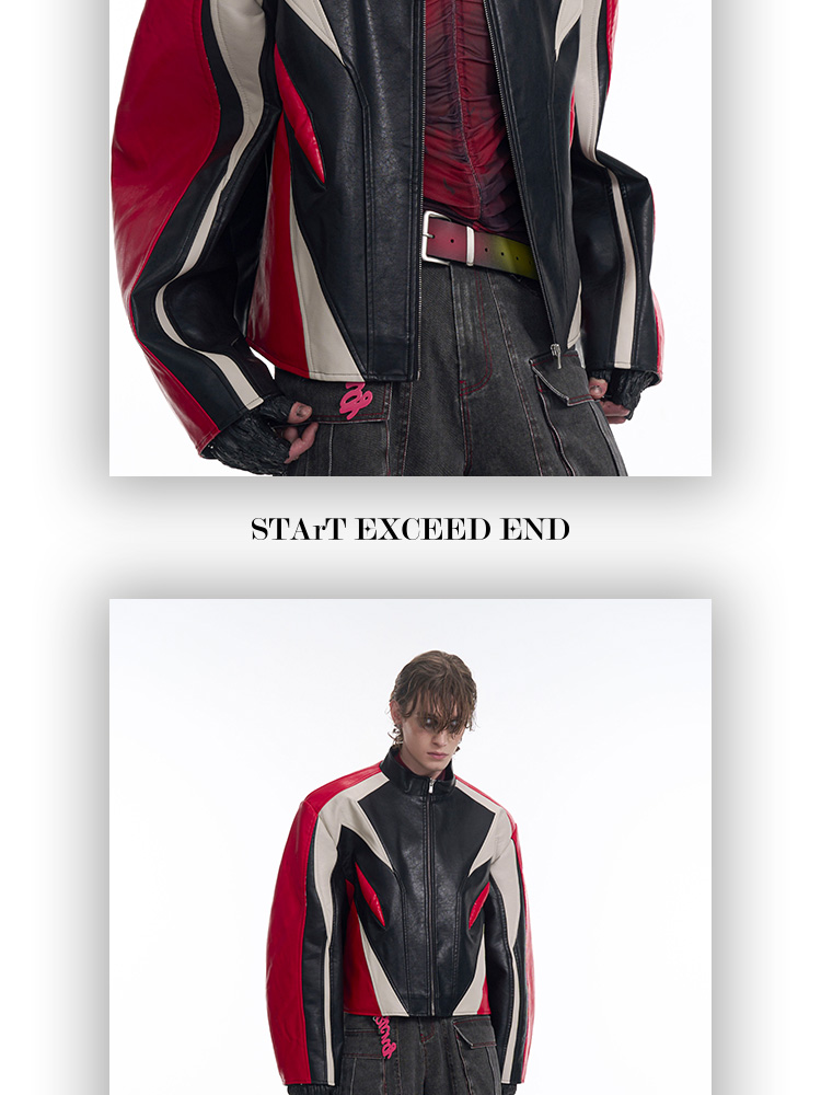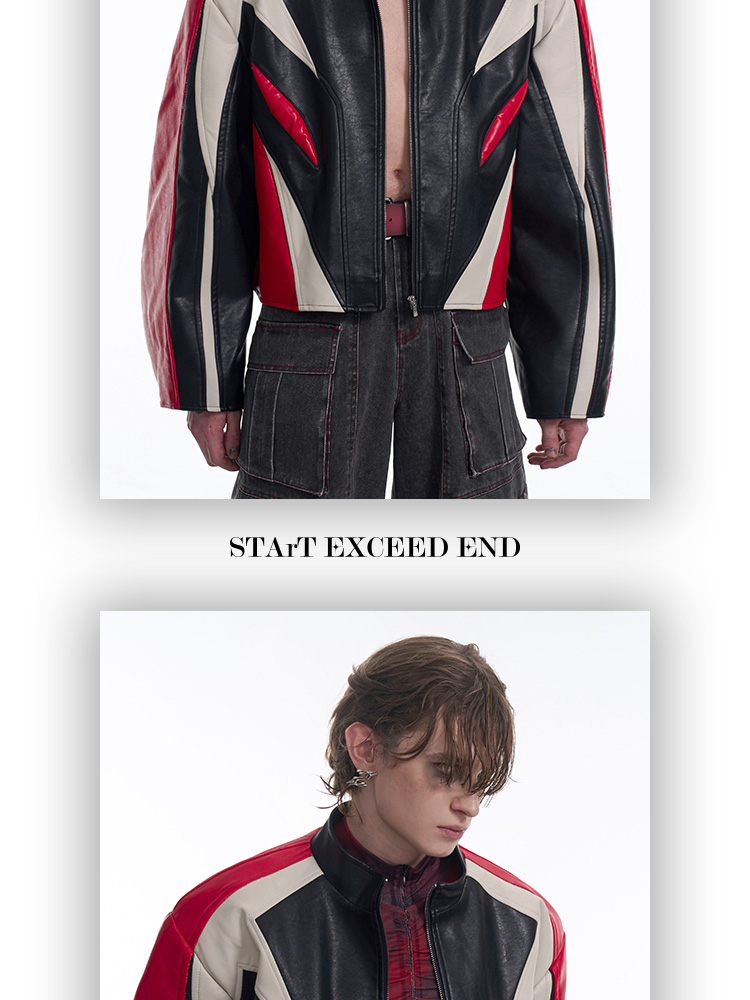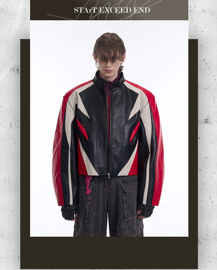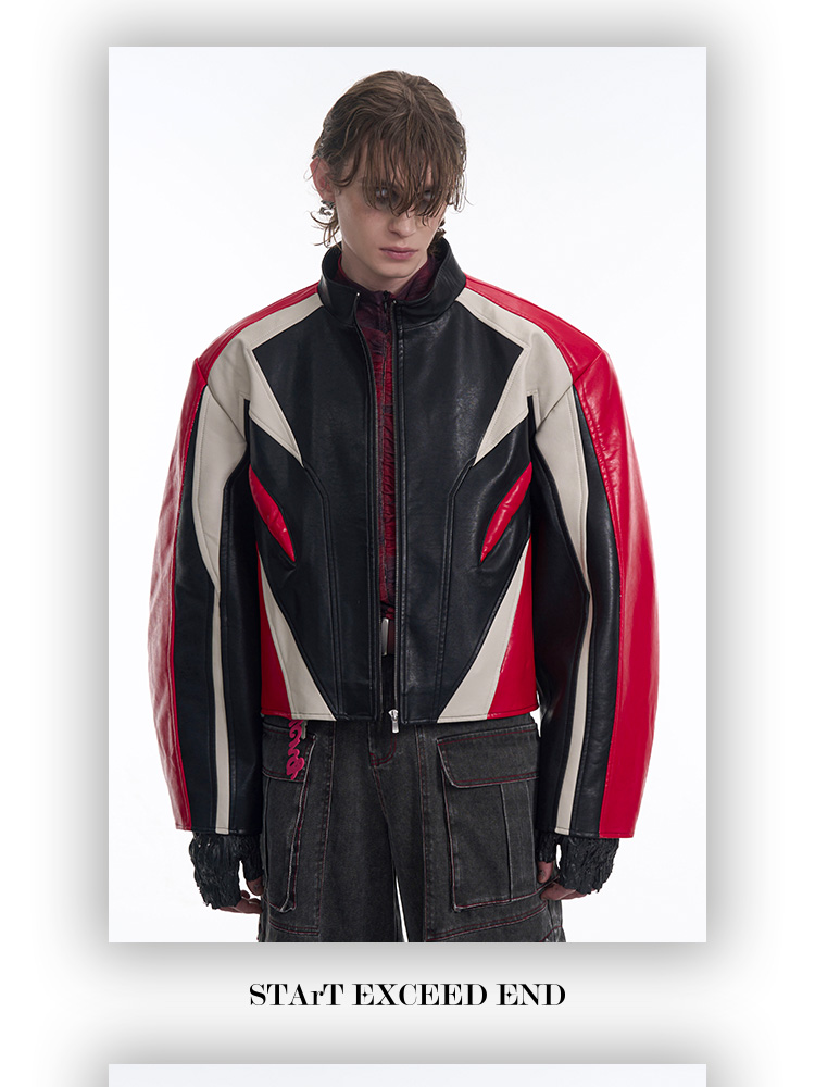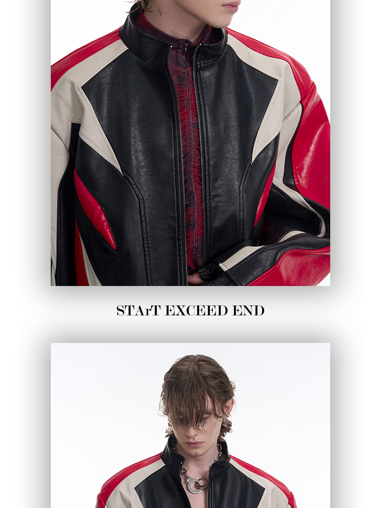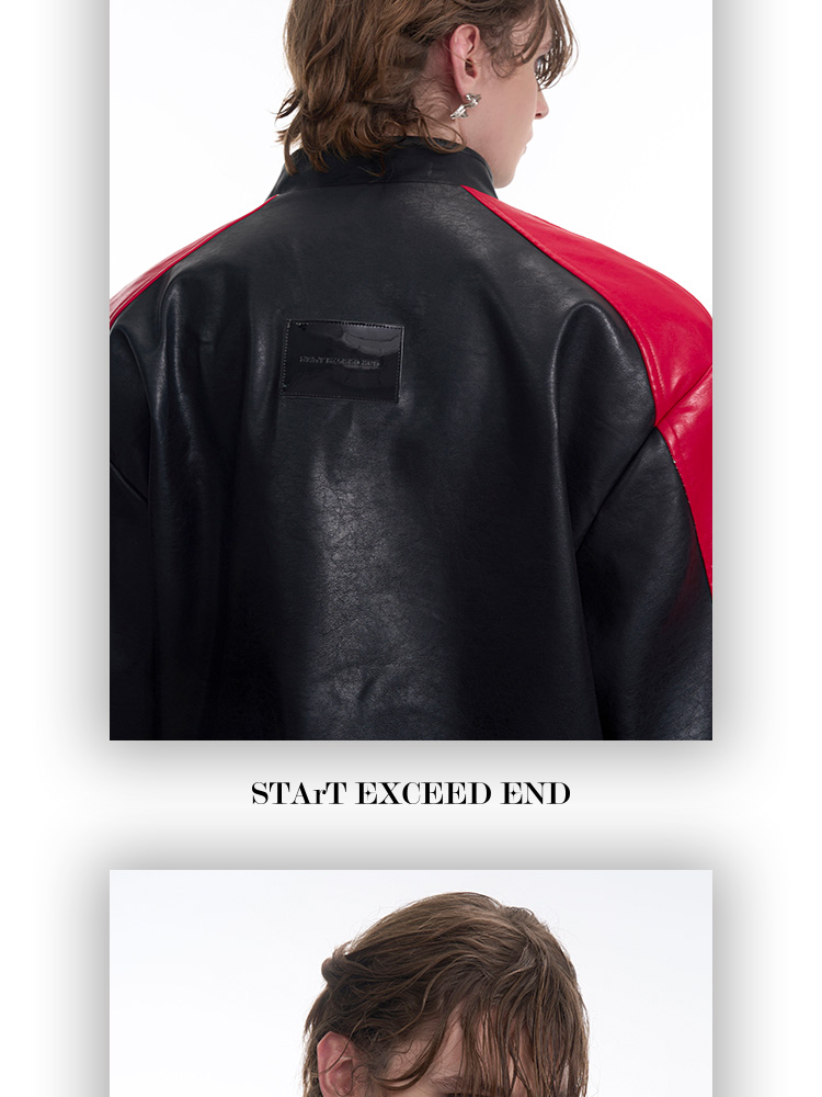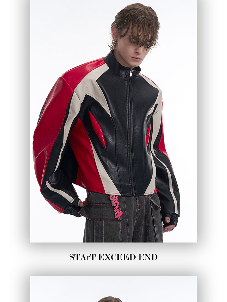 Standing Neck Curved-Sleeve PU Leather Jacket WN13247