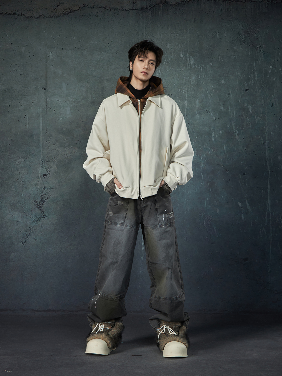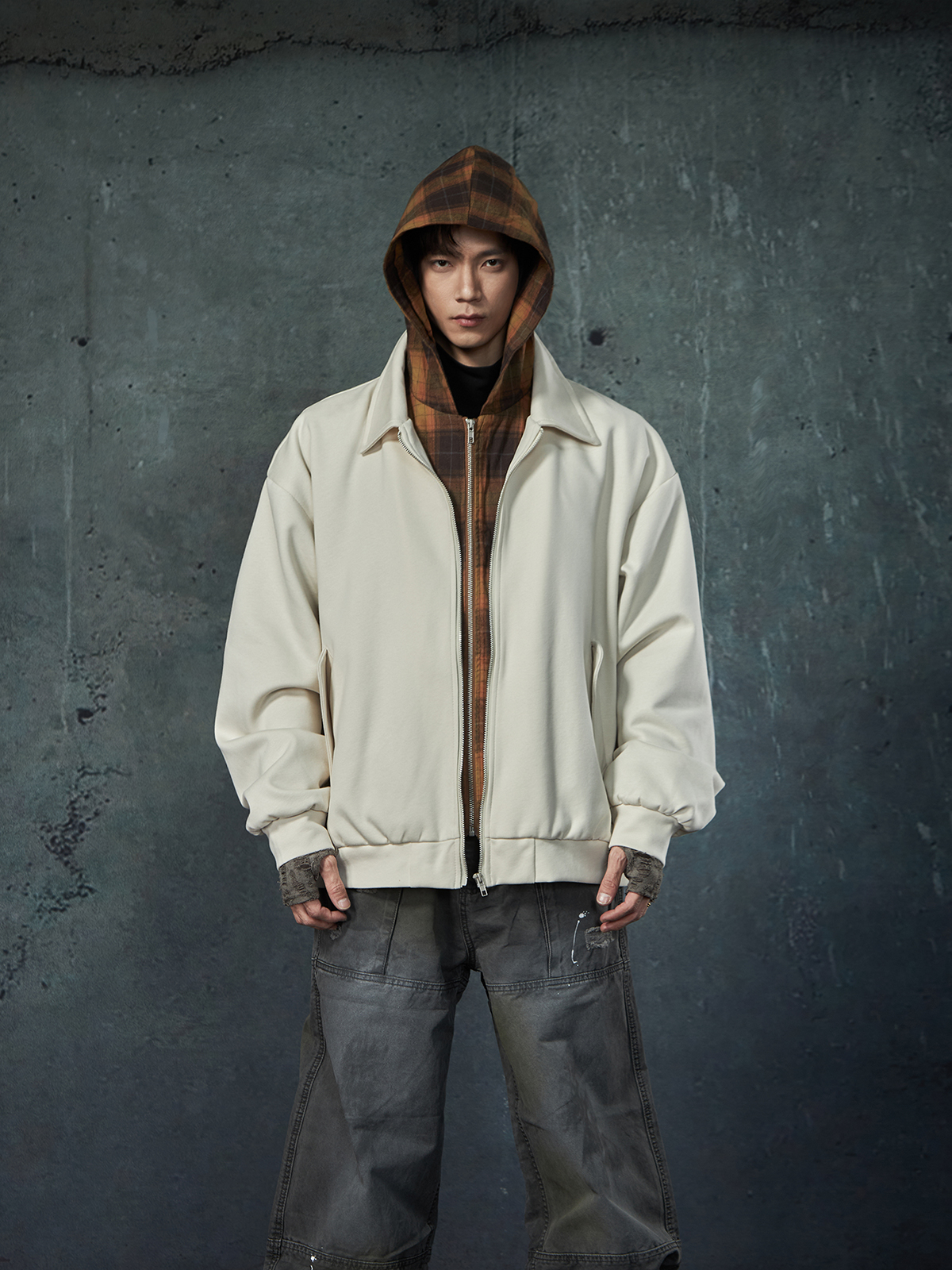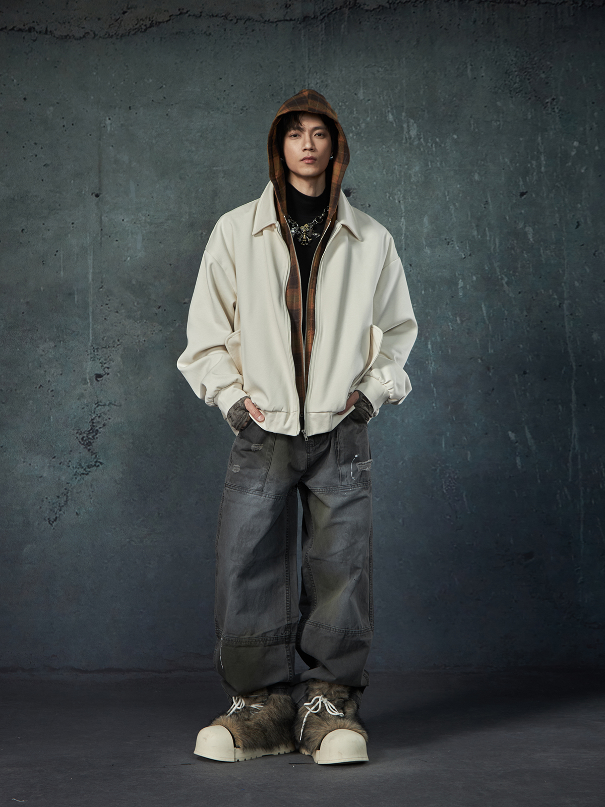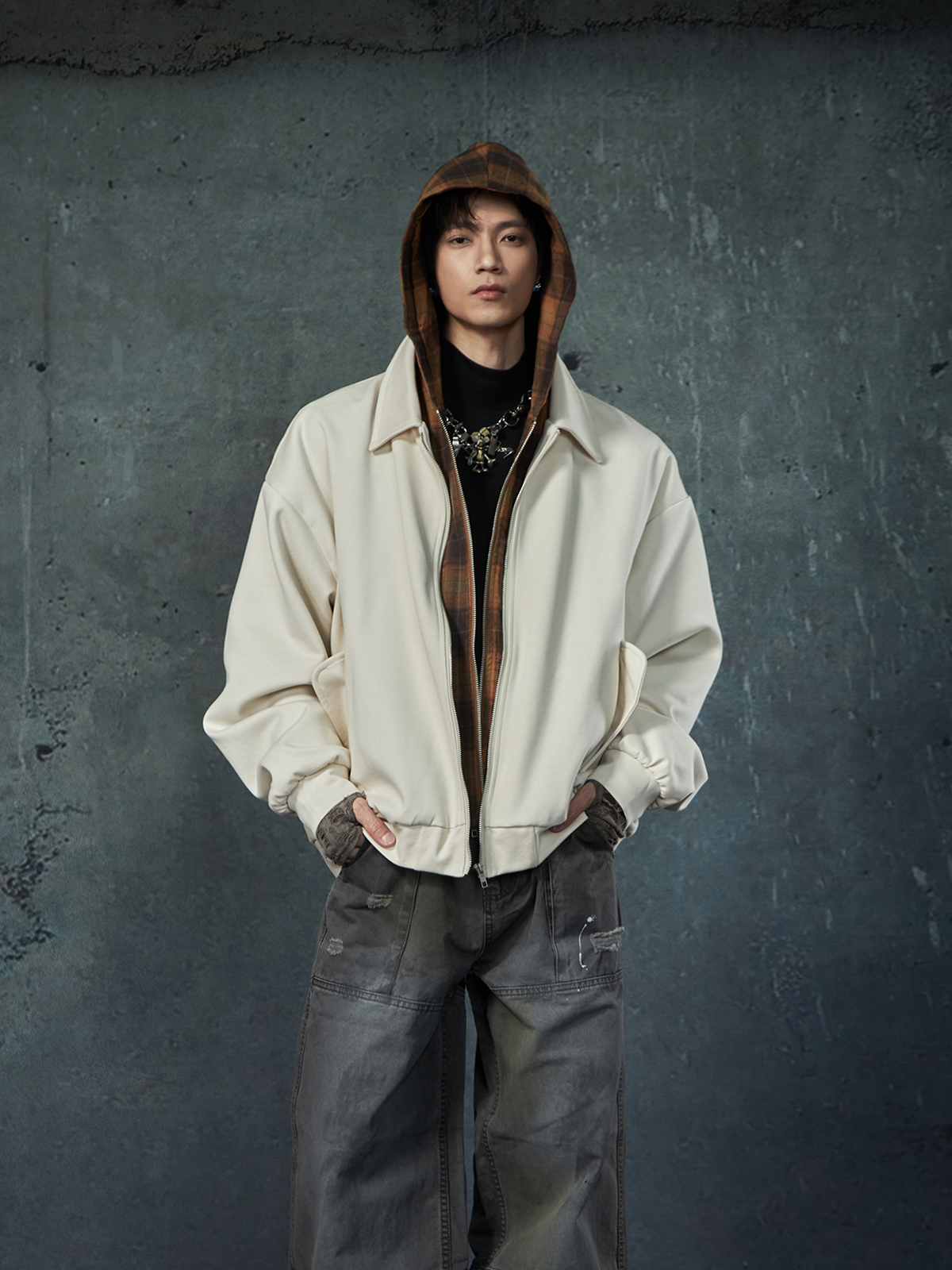 Fleece-Touch PU Leather Hooded Fake Layered Jacket WN13577