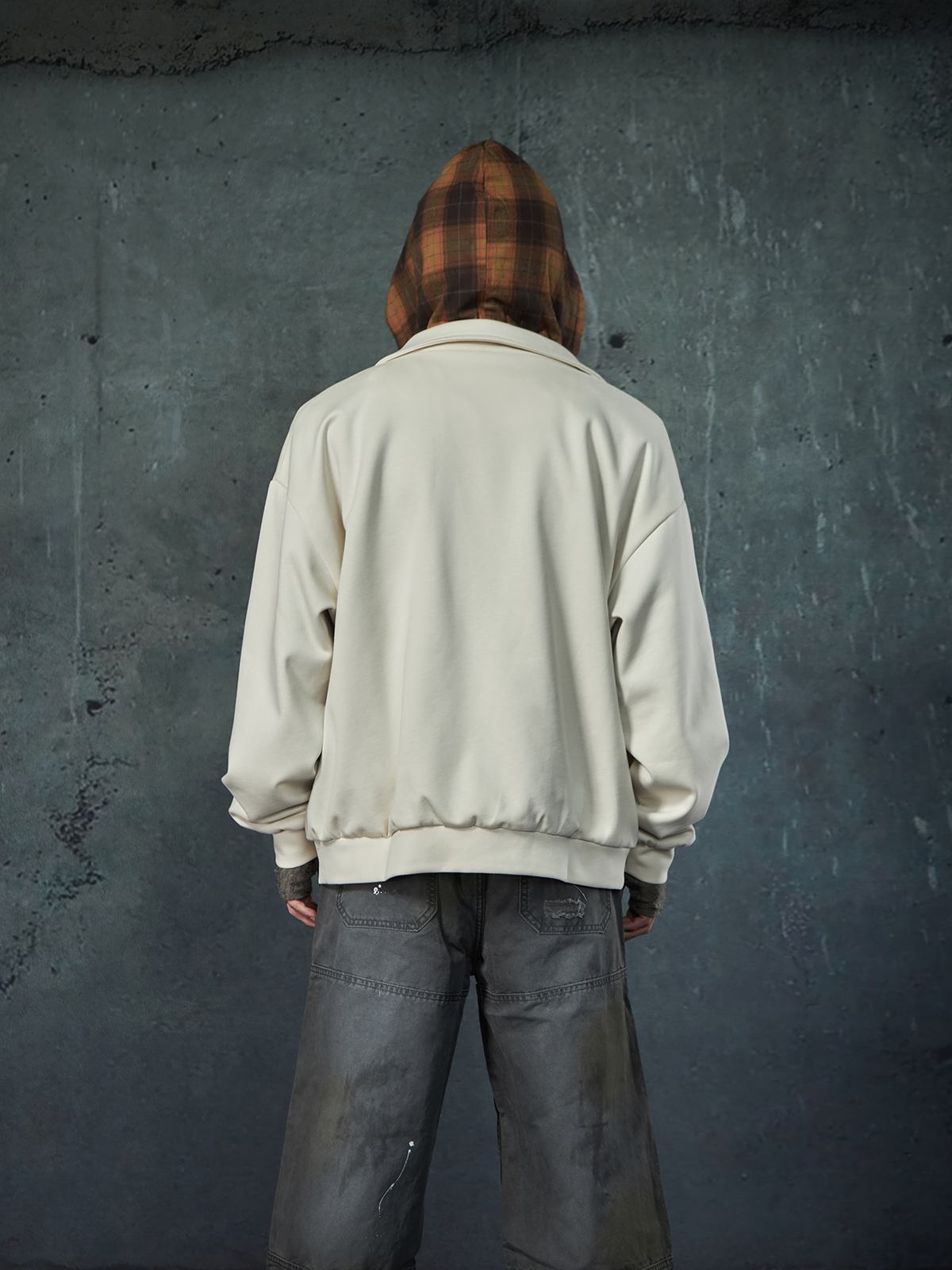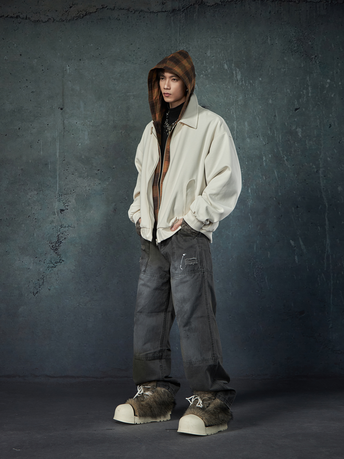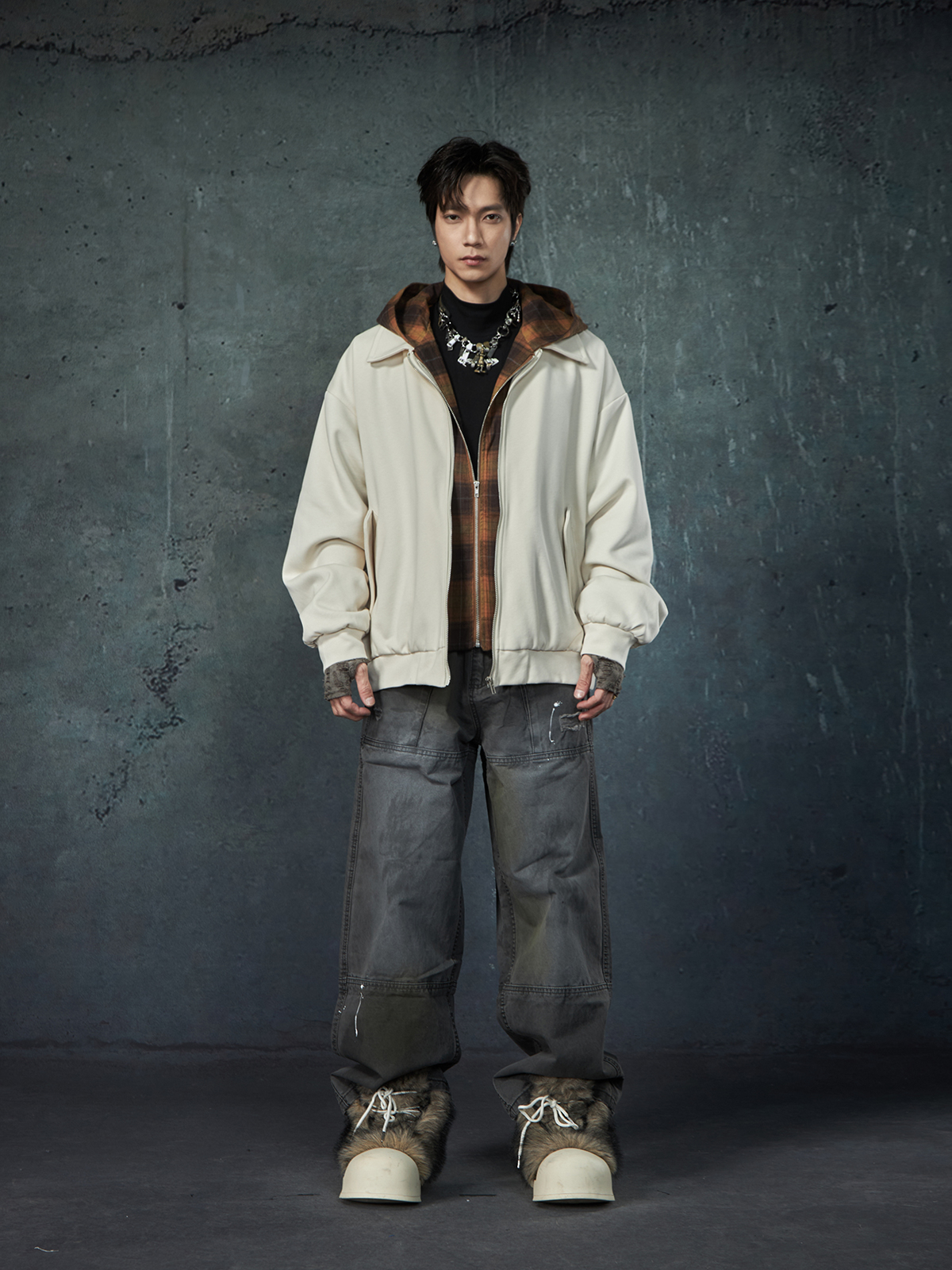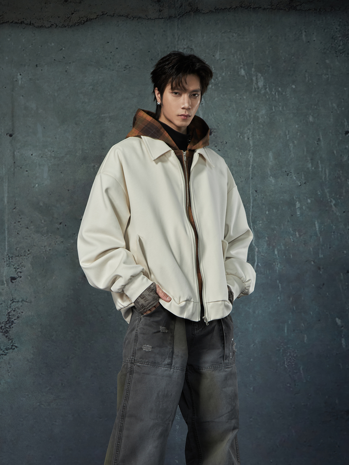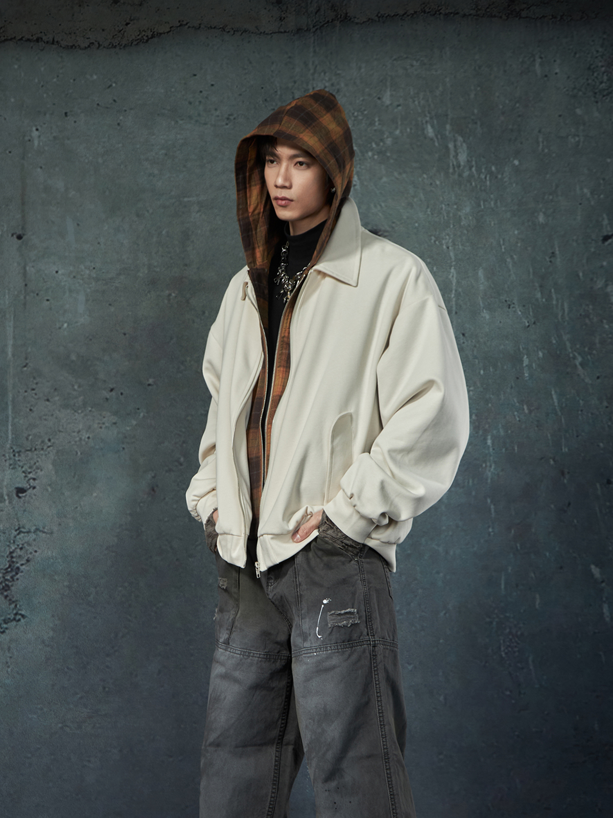 Fleece-Touch PU Leather Hooded Fake Layered Jacket WN13577