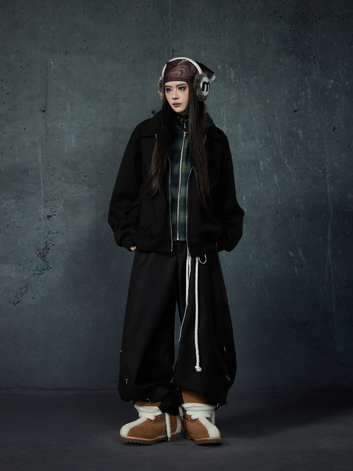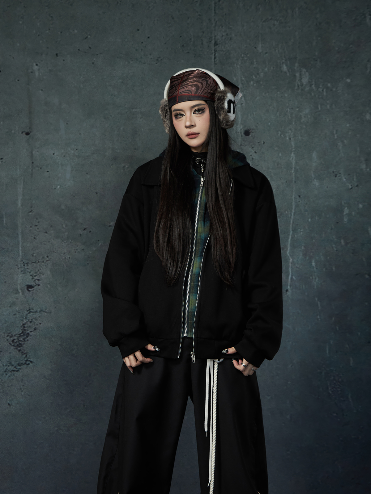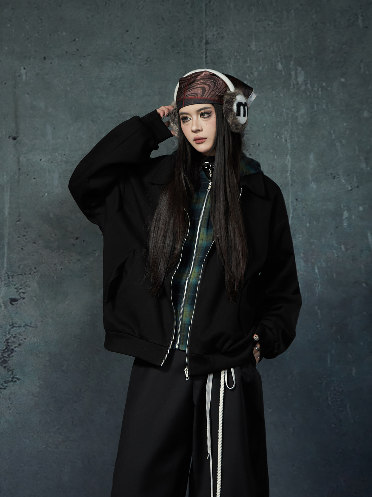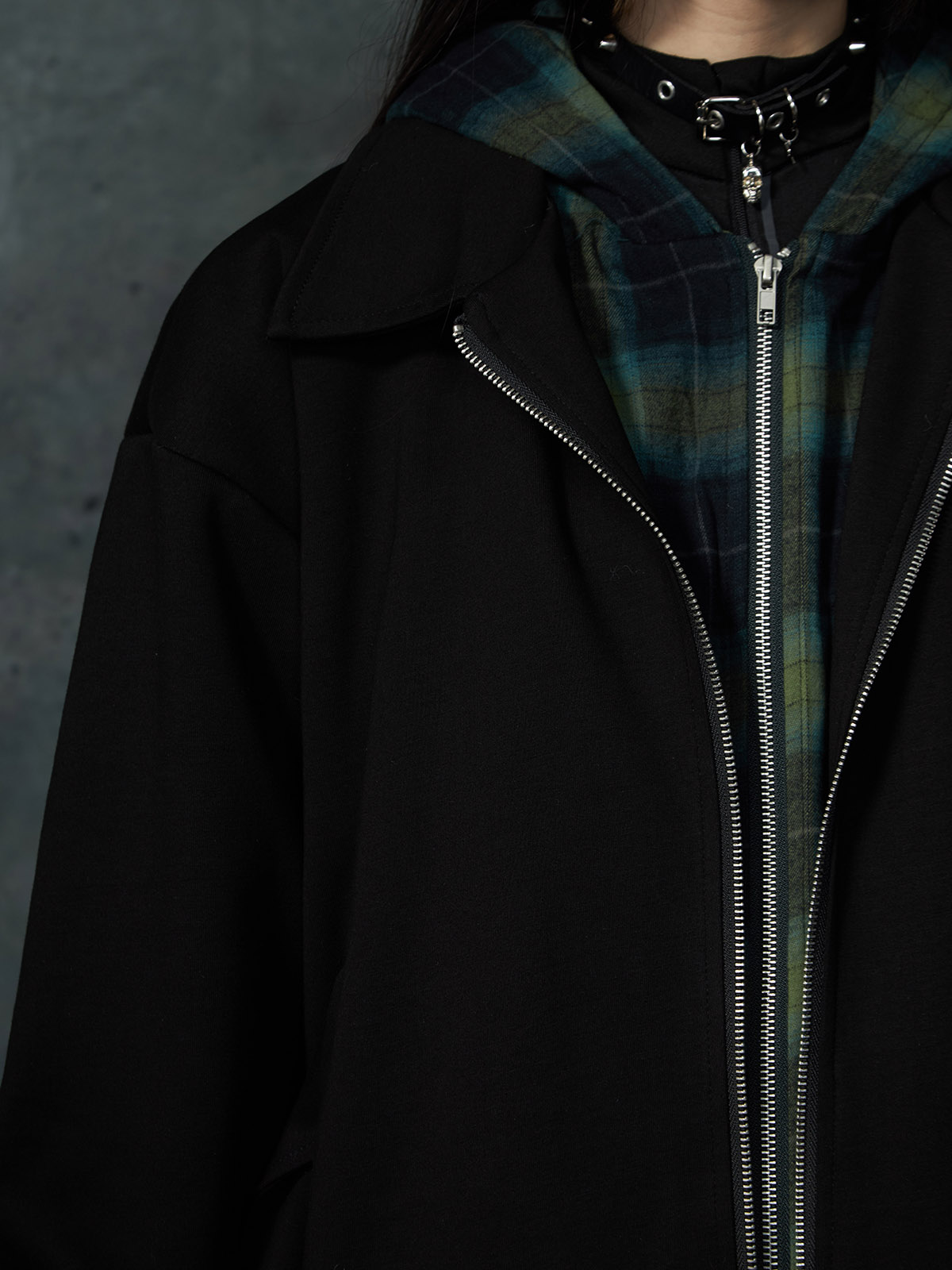 Fleece-Touch PU Leather Hooded Fake Layered Jacket WN13577