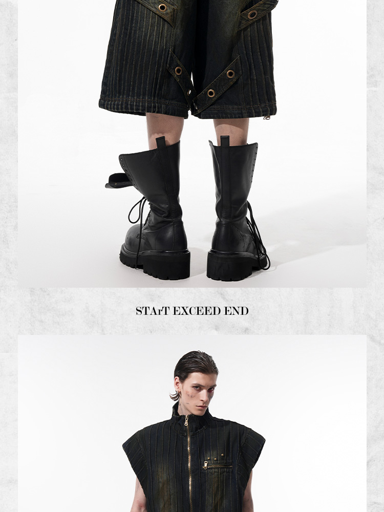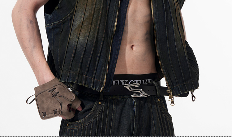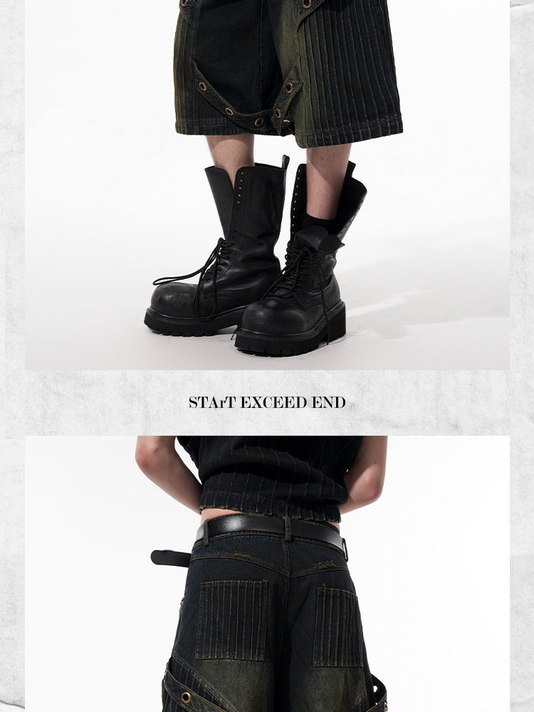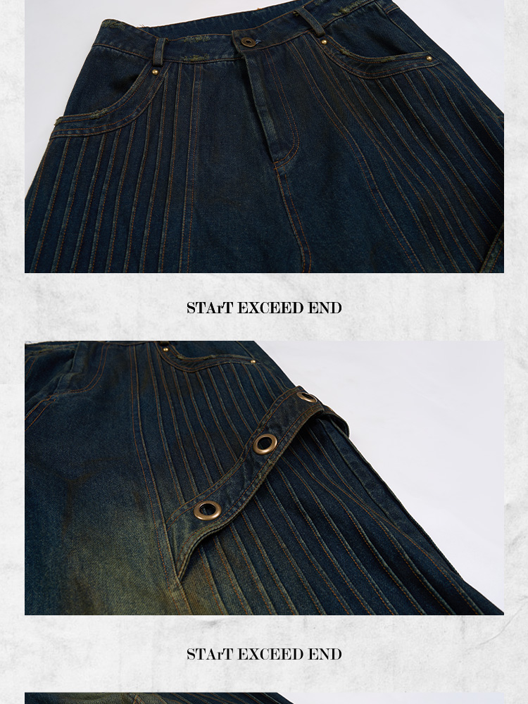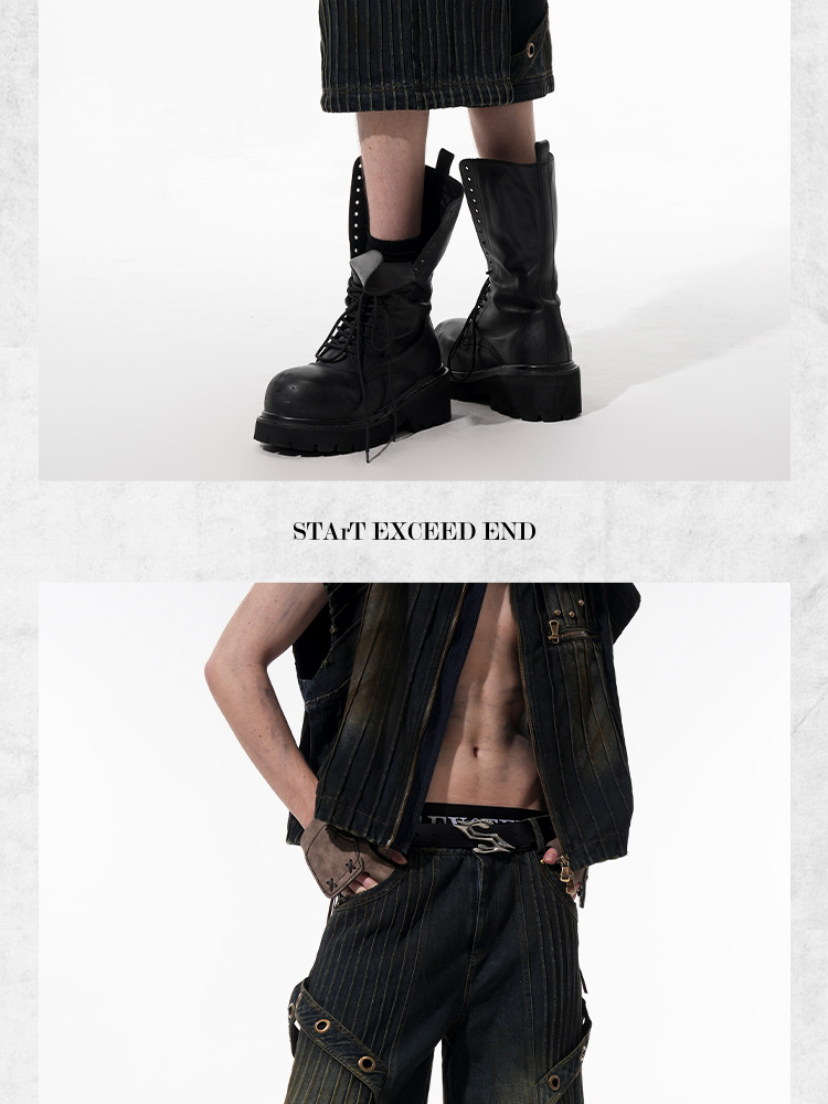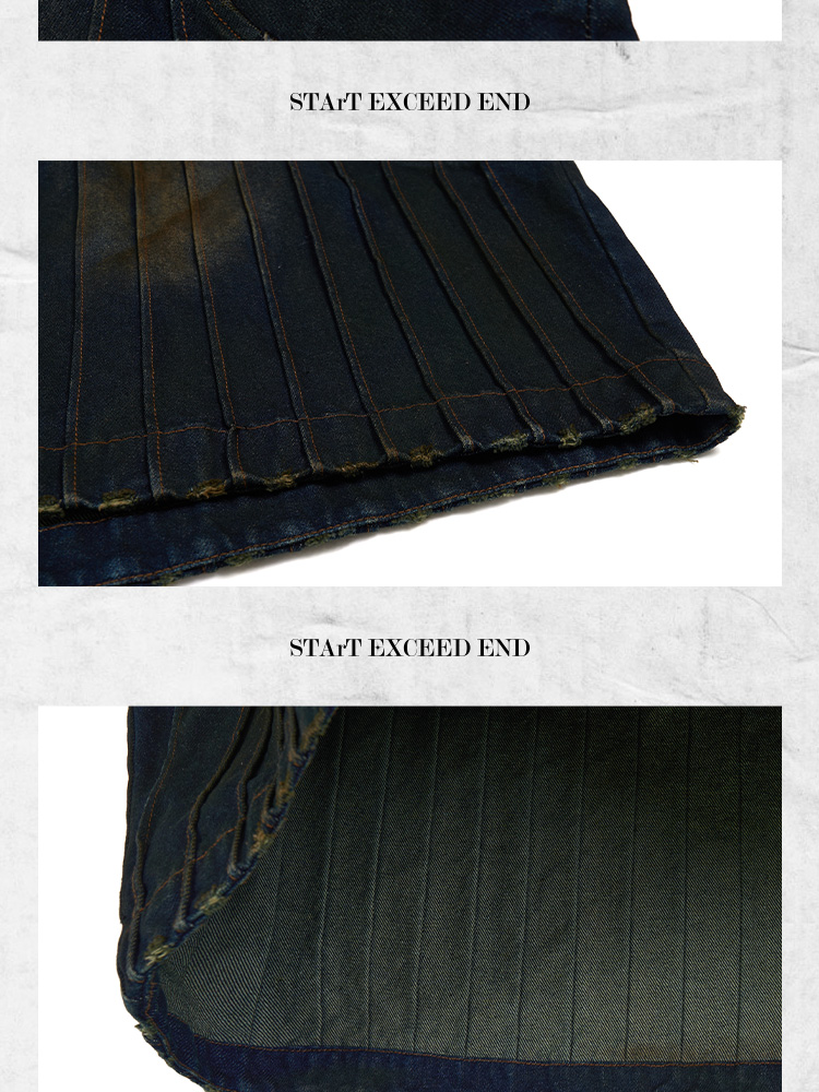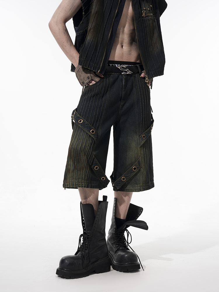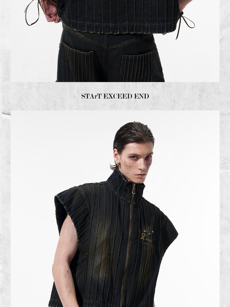 Standing-Neck Wash Damage Denim Short Jacket & Damage Wide-leg Denim Jeans Setup WN14874