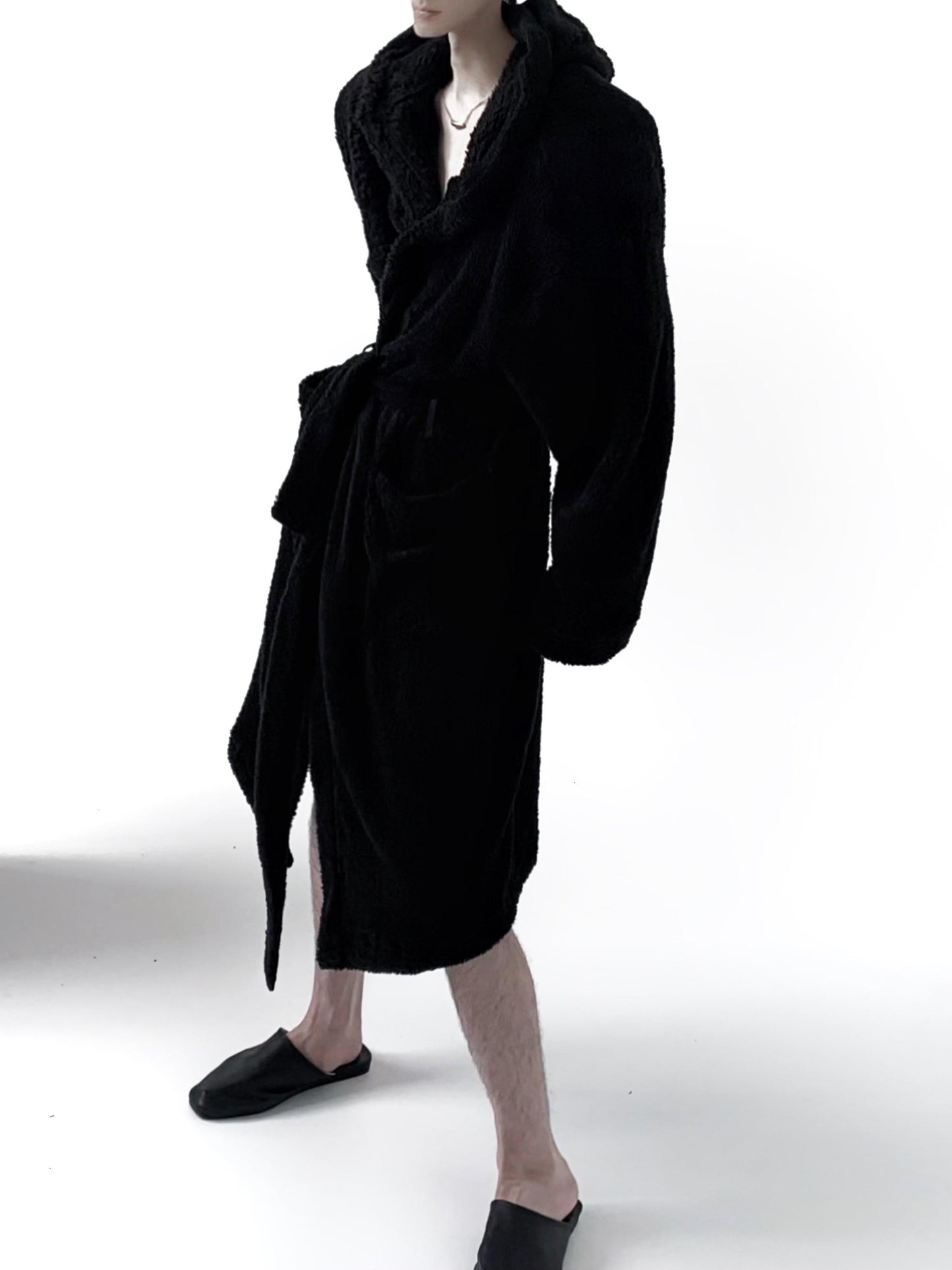 Fuzzy Belted Hooded Long Coat WN15414