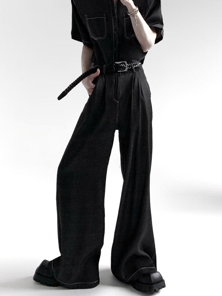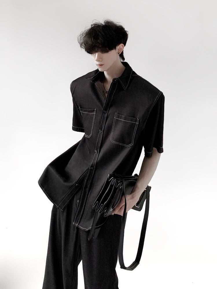 Shoulder-pad Short Sleeve Shirt & Straight Denim Jeans Setup WN15429