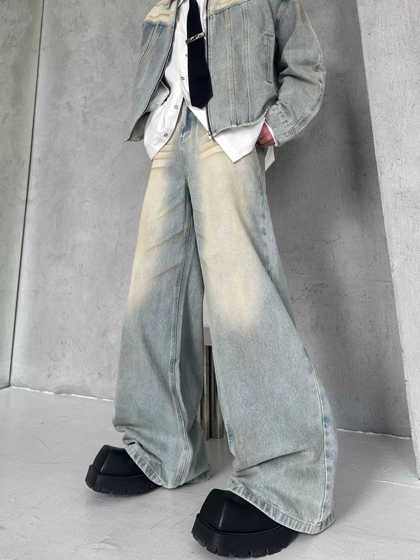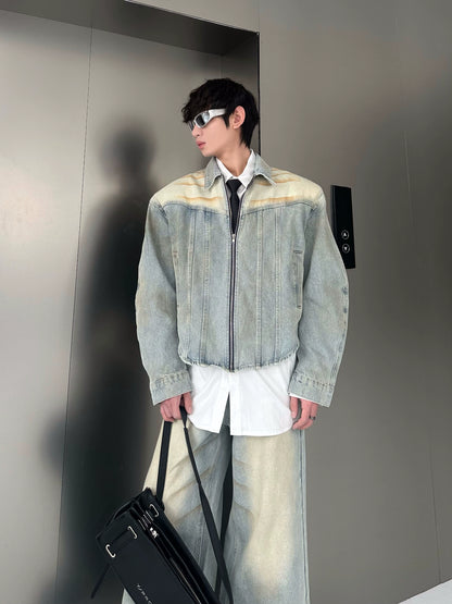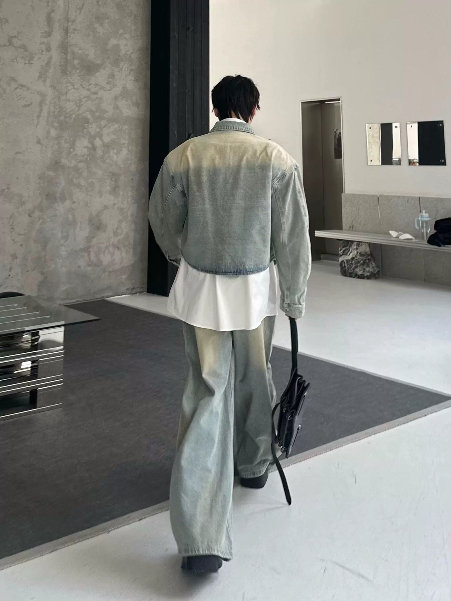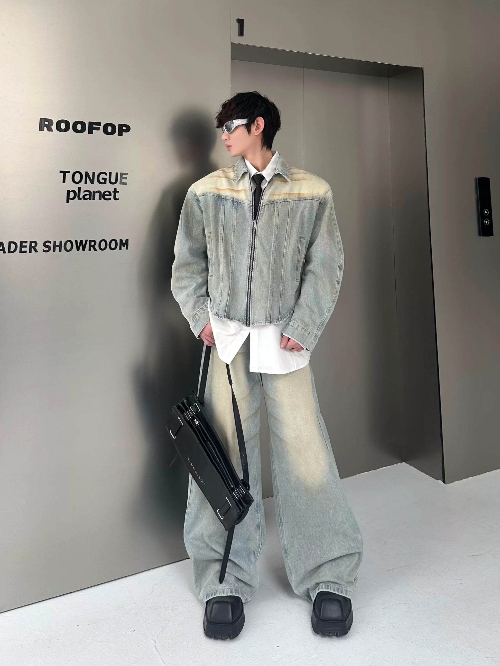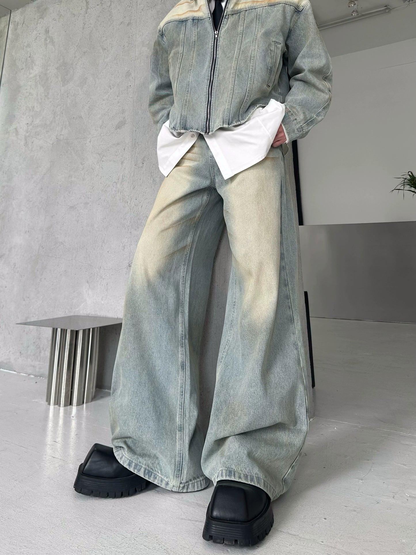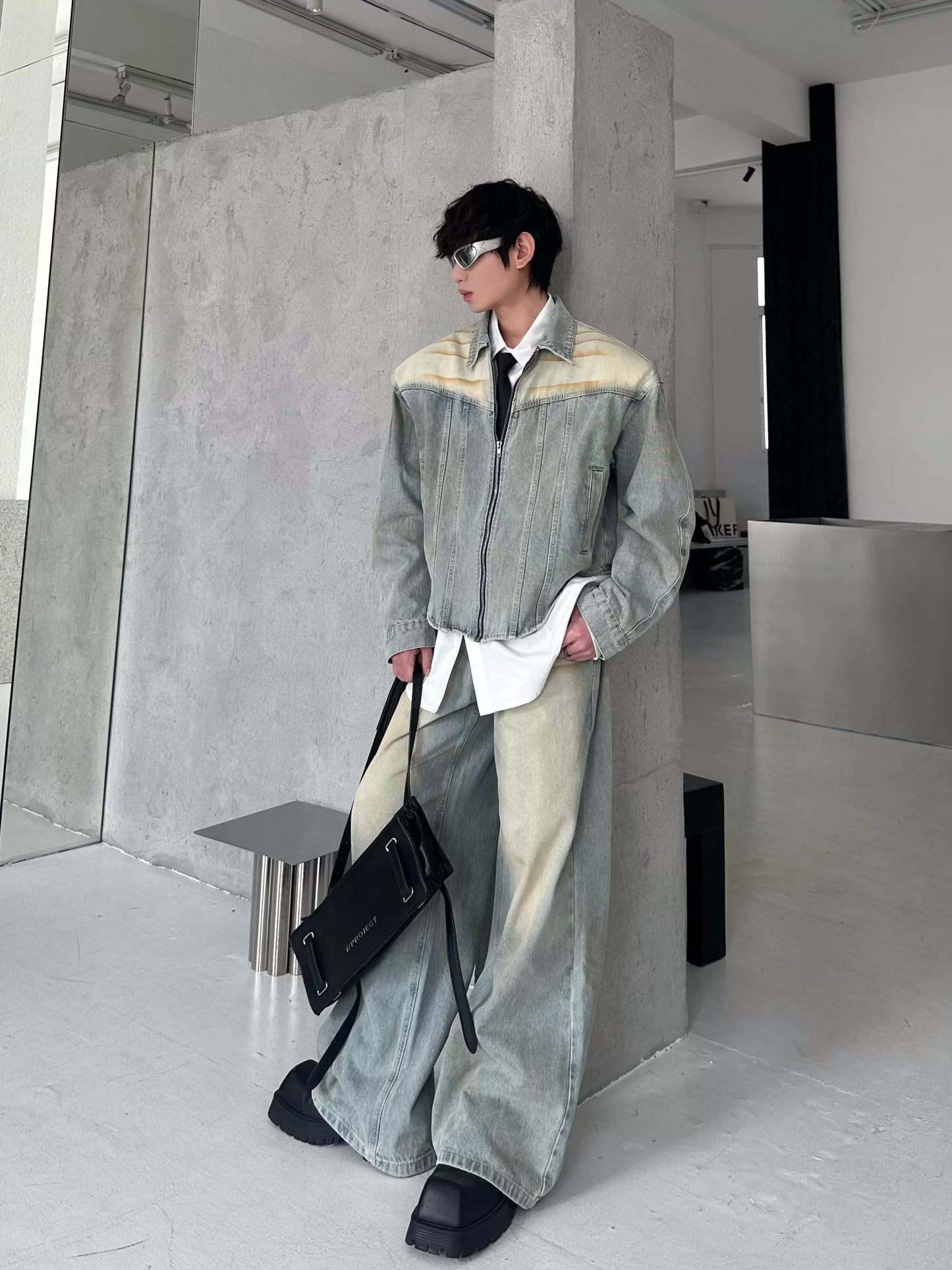 Gradient Washed Zipper Jacket & Washed Flare Denim Jeans Setup WN16758