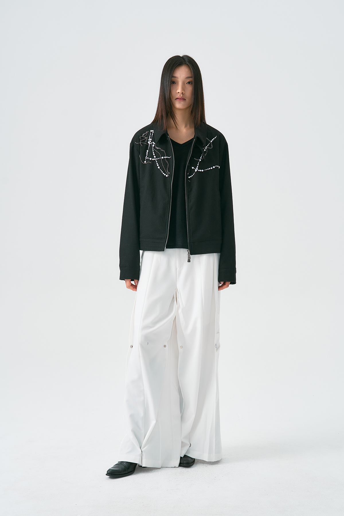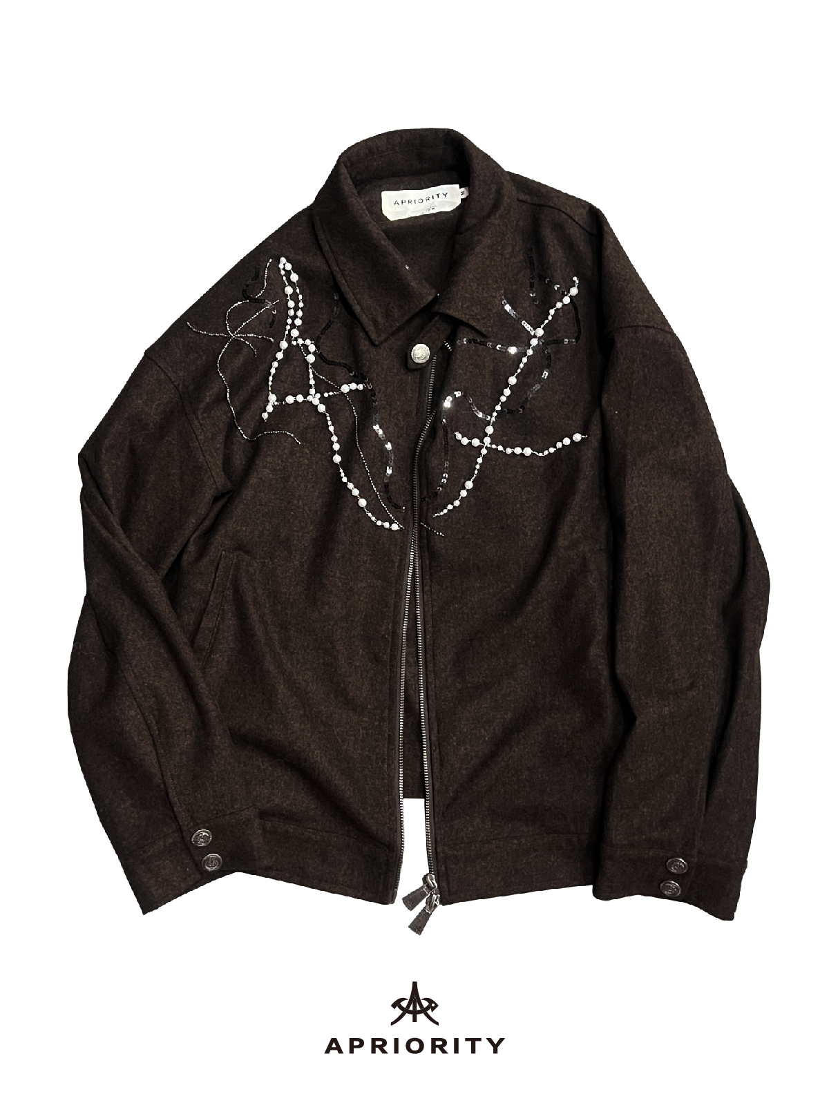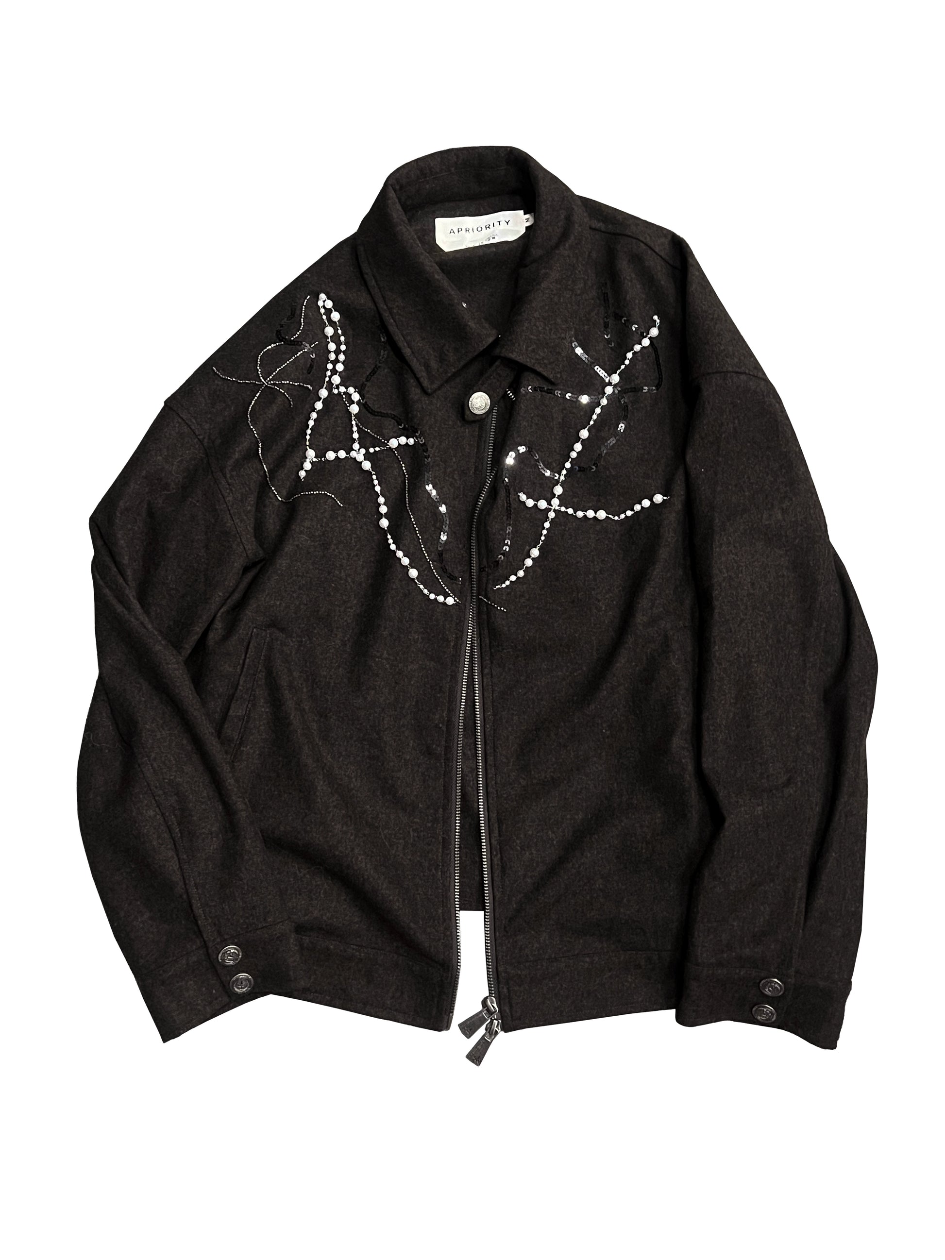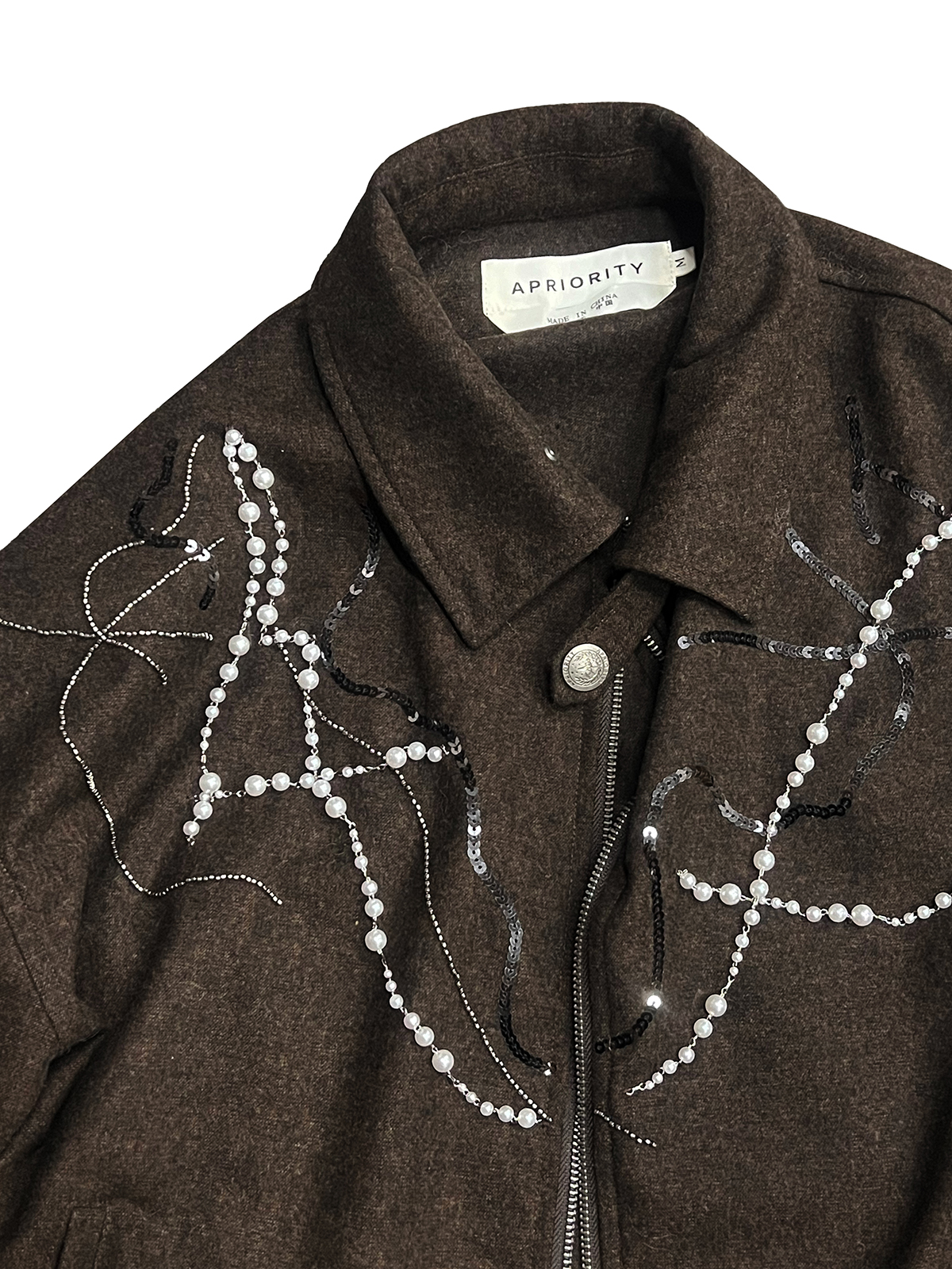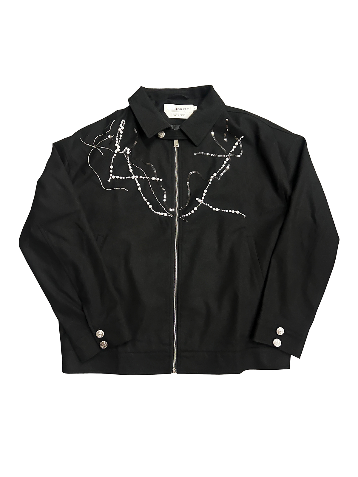 Handcrafted Pearl Chain Harrington Jacket WN18875
