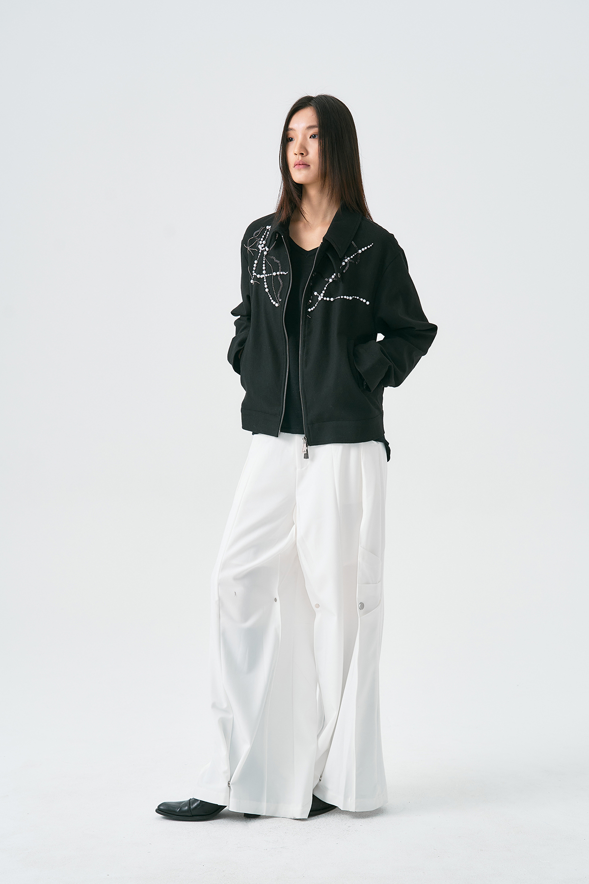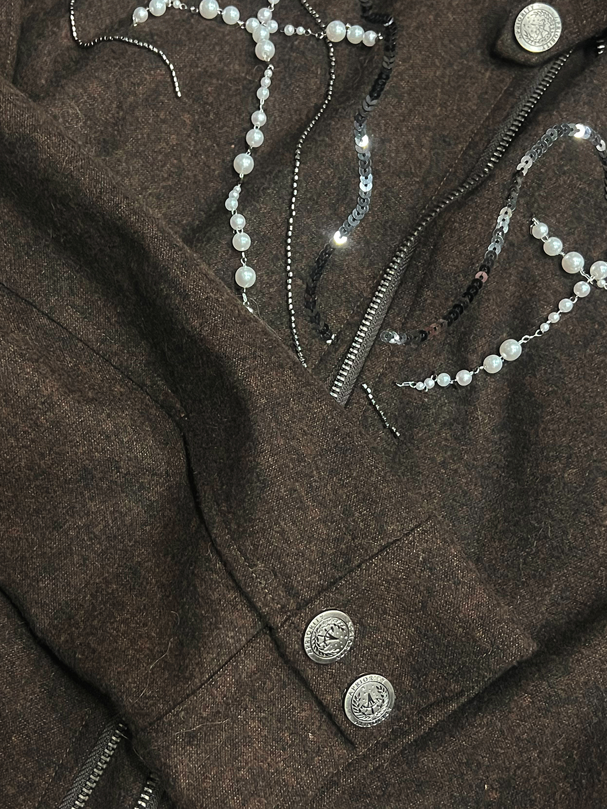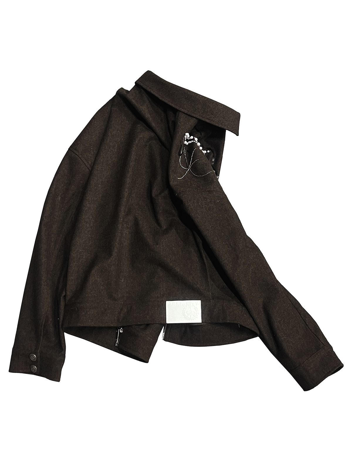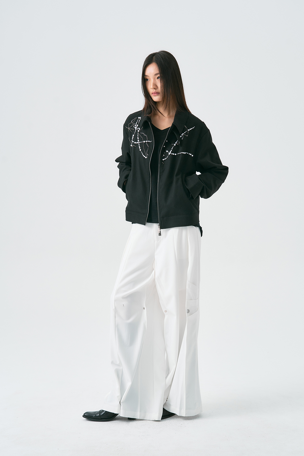 Handcrafted Pearl Chain Harrington Jacket WN18875