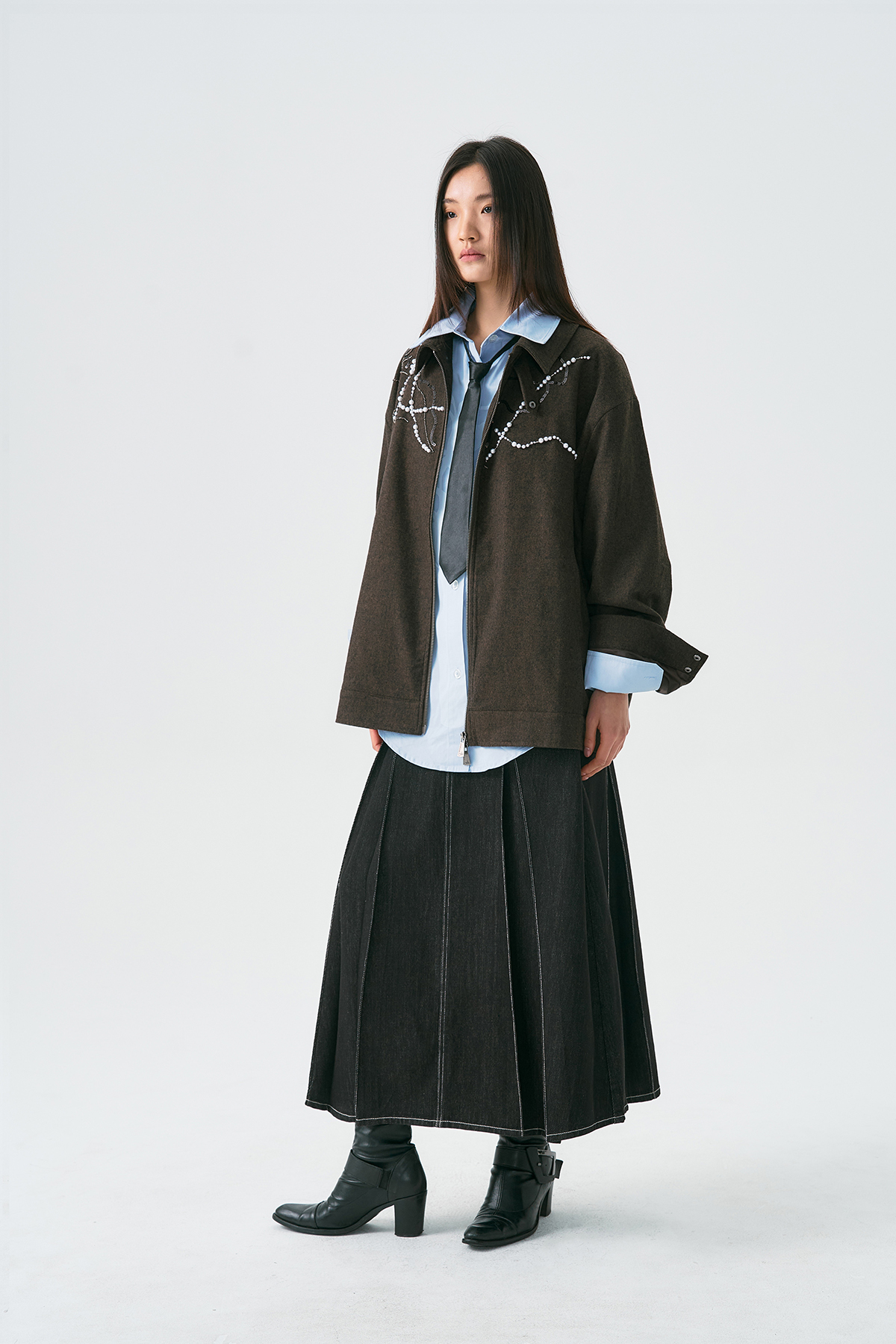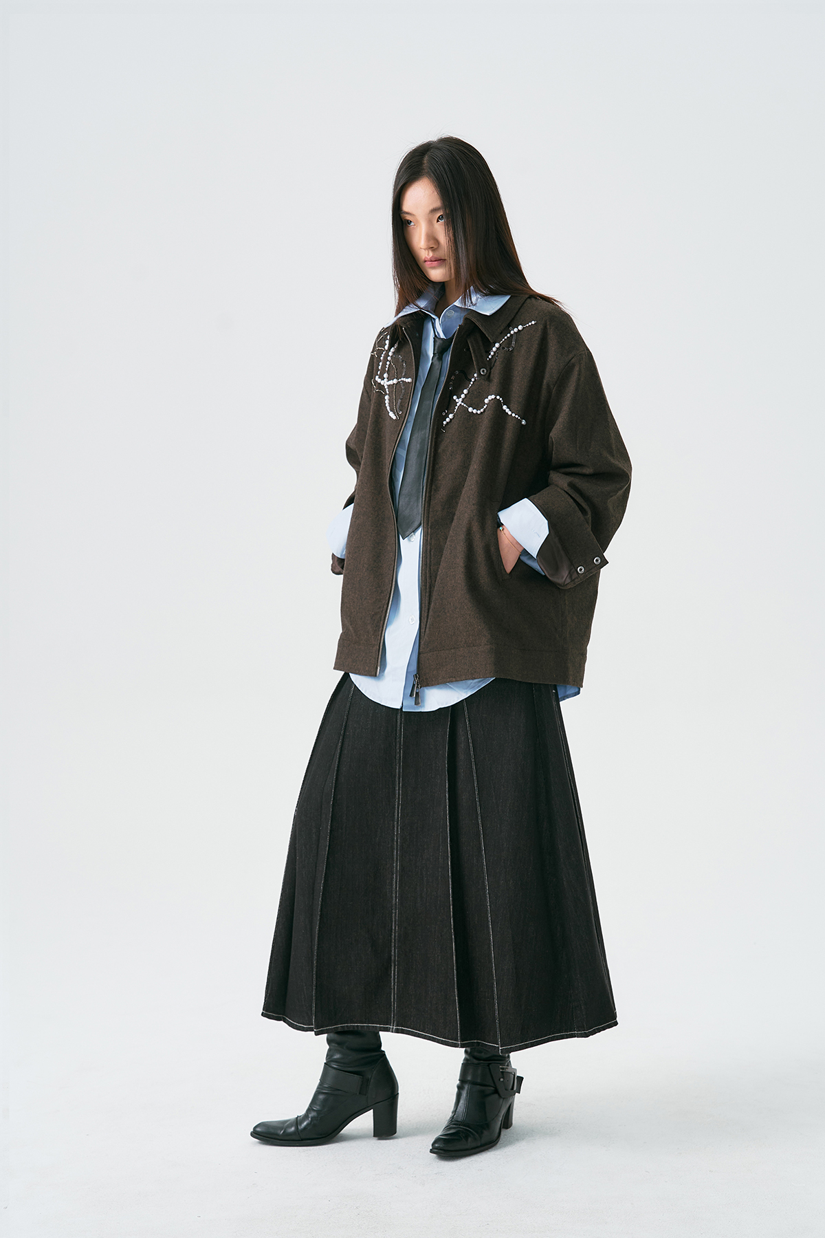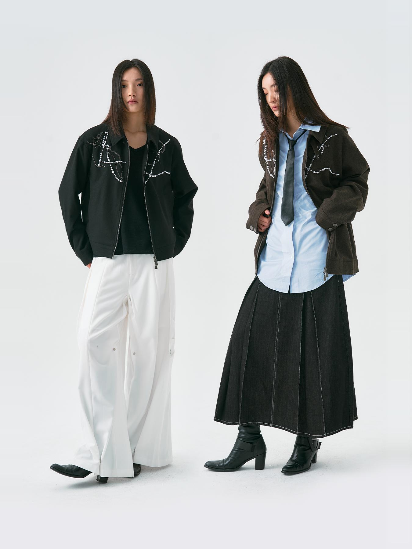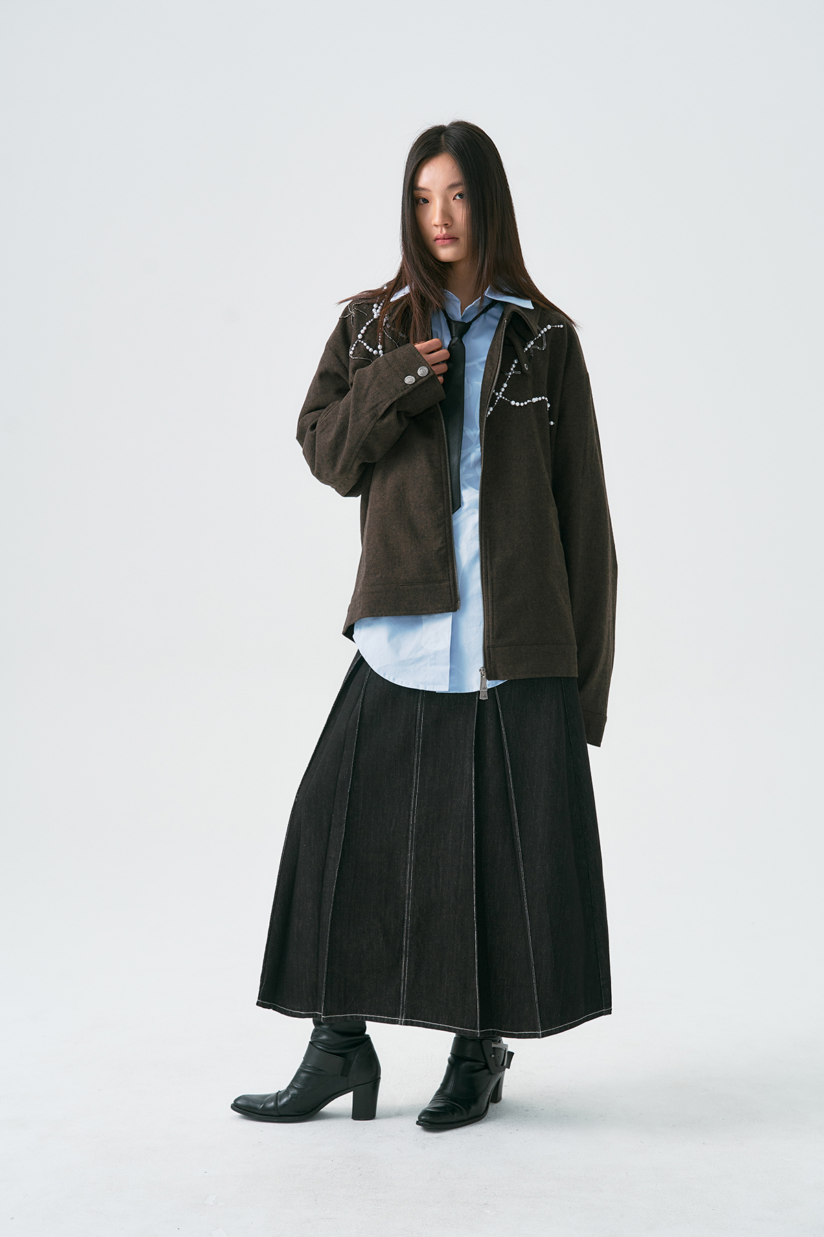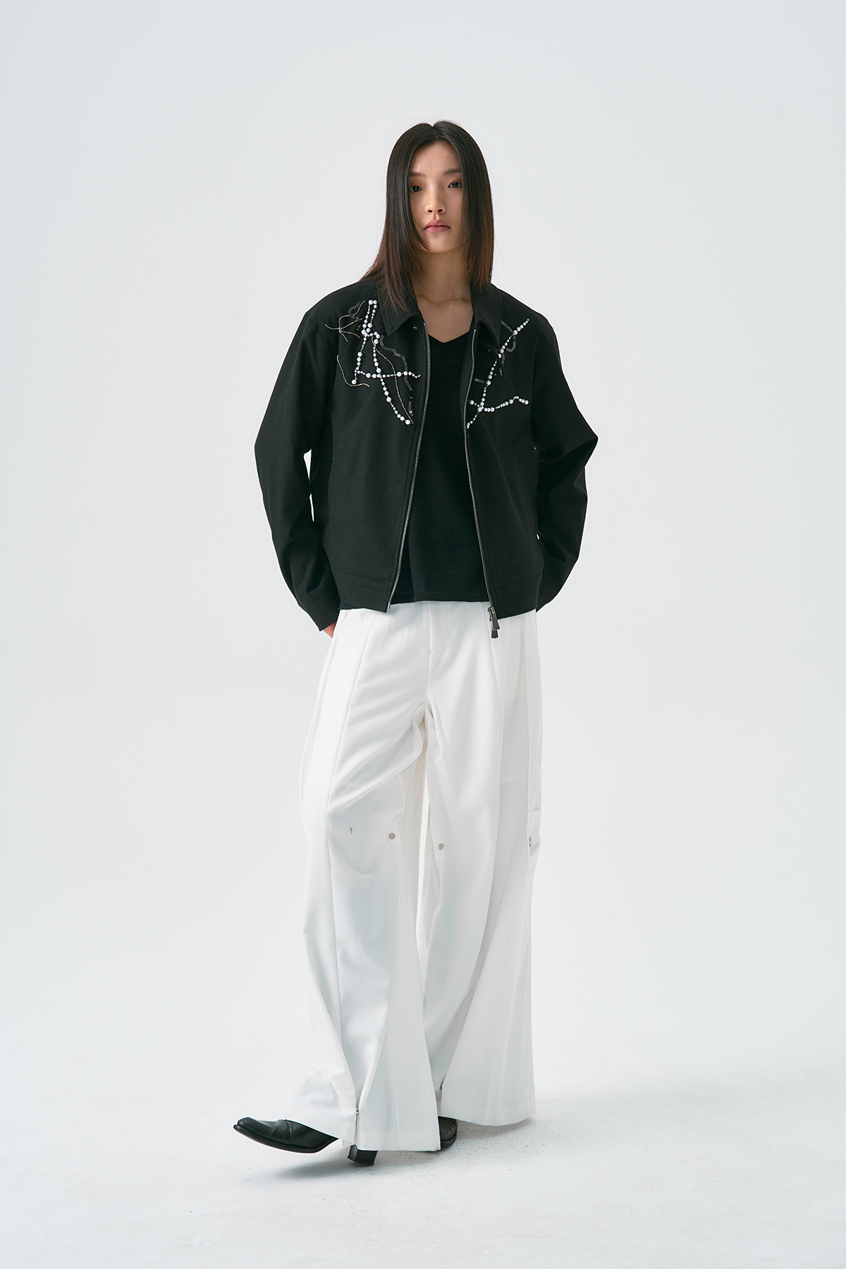 Handcrafted Pearl Chain Harrington Jacket WN18875