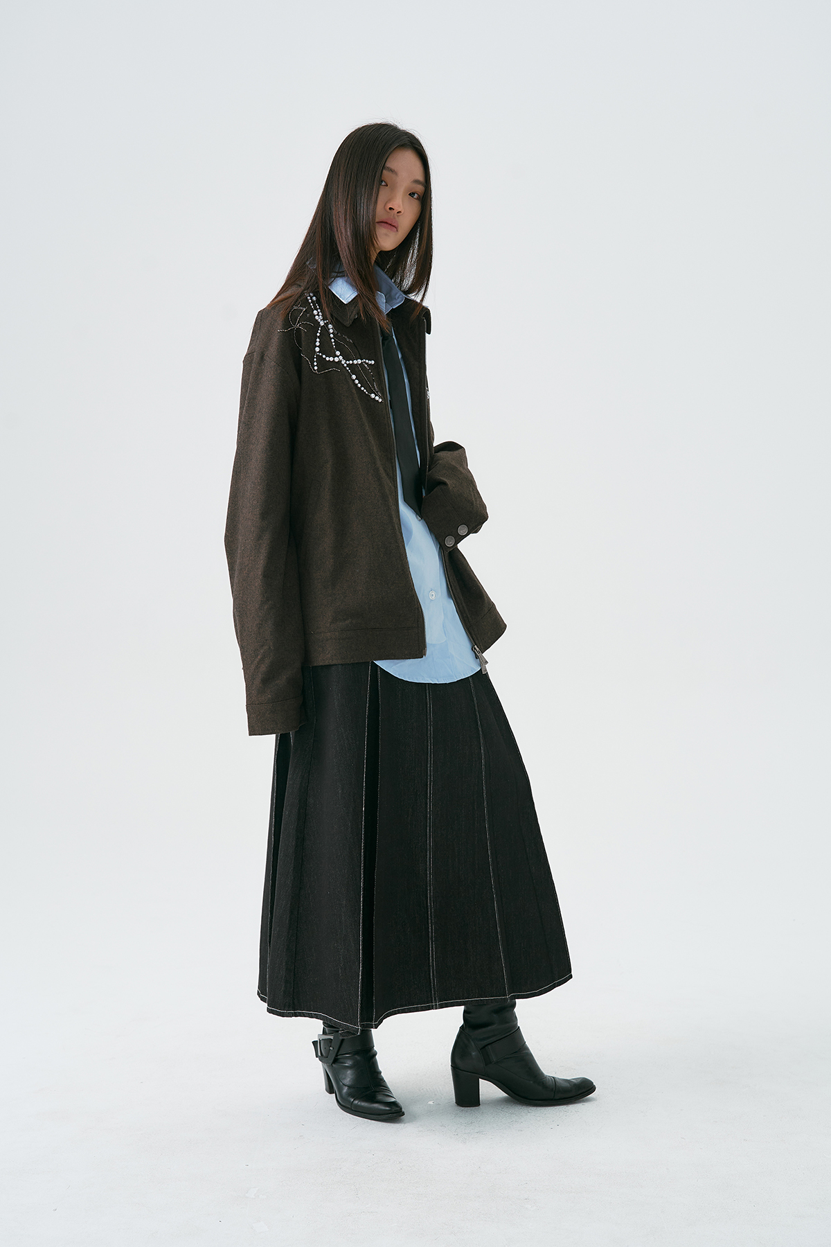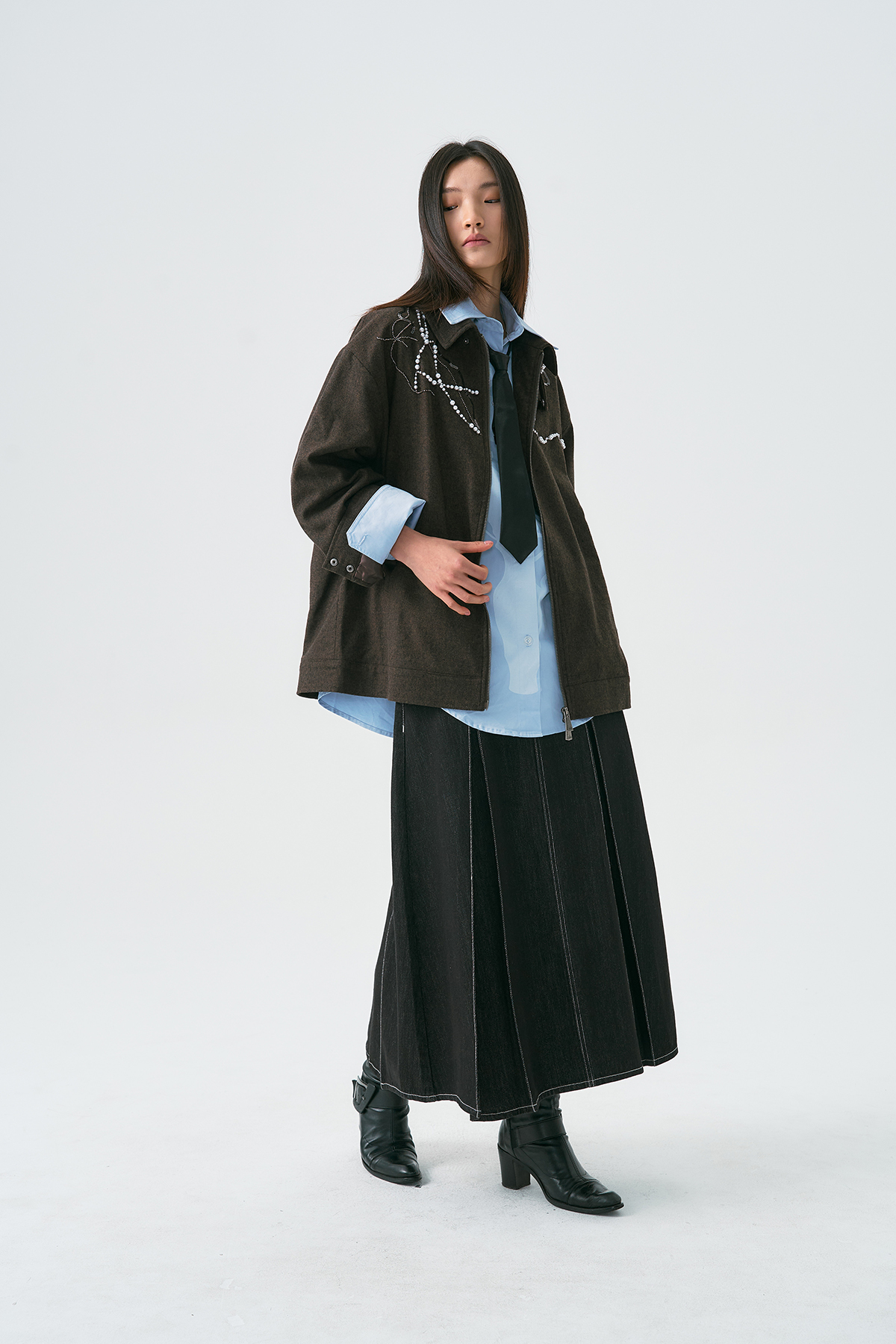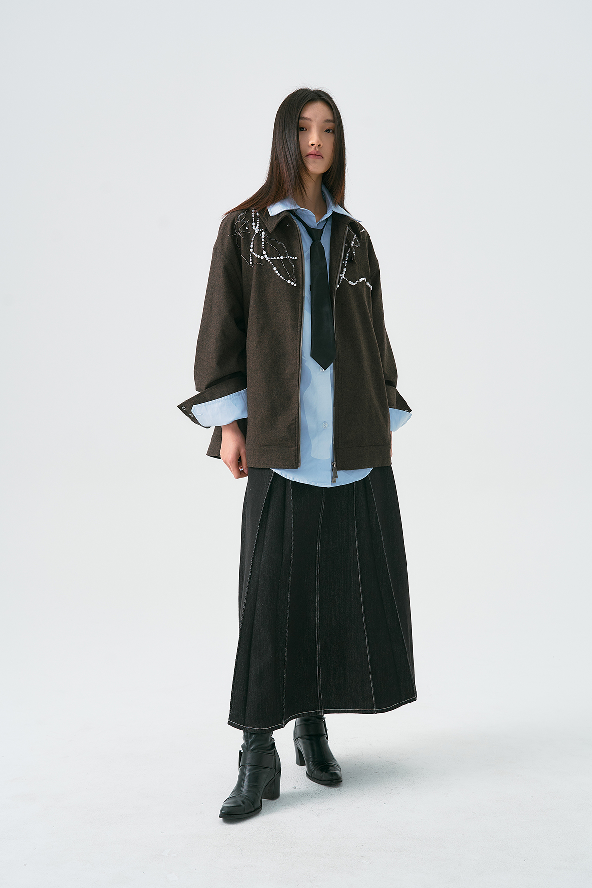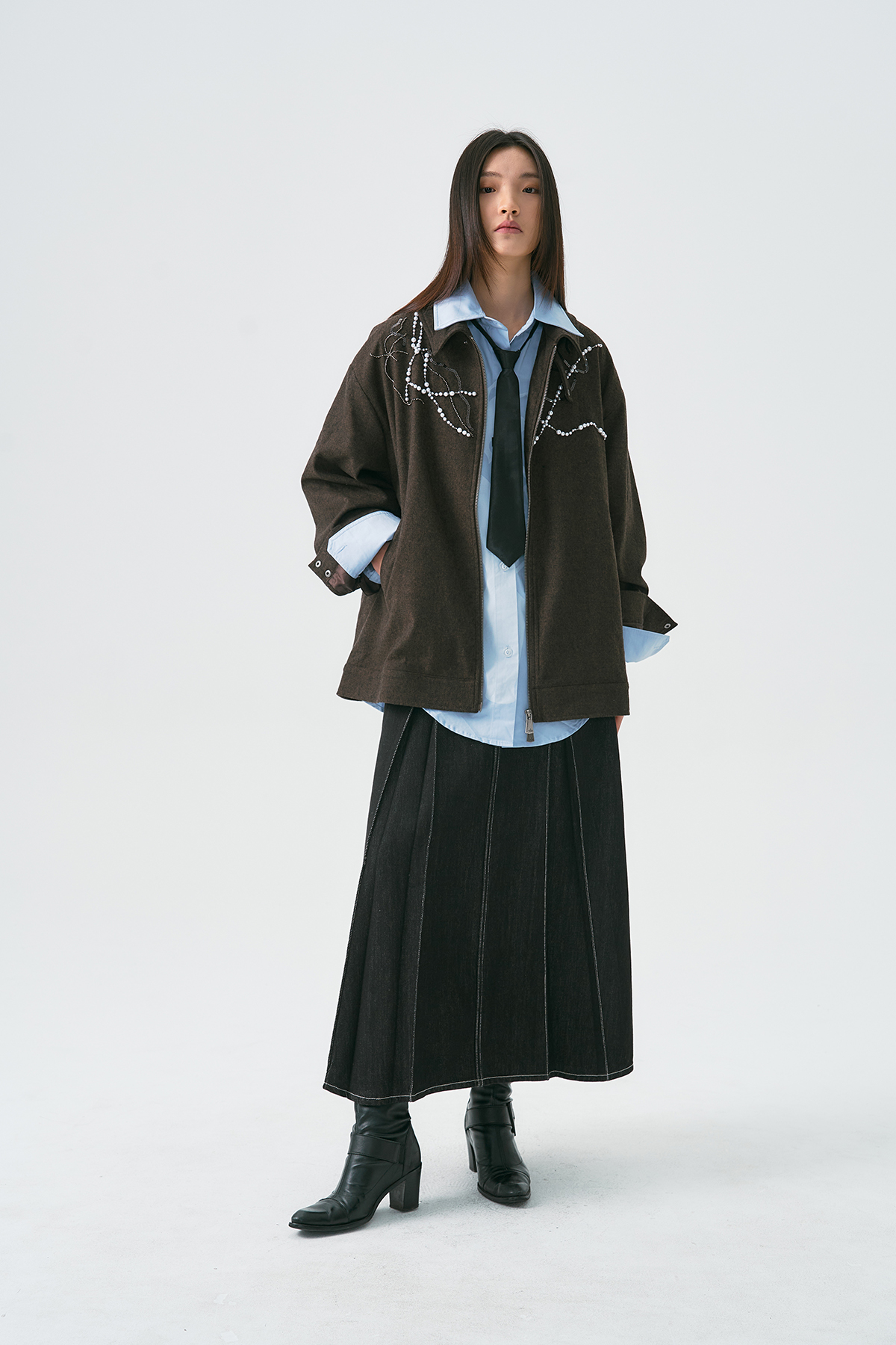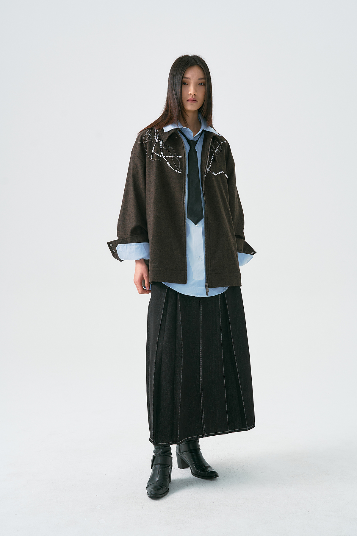 Handcrafted Pearl Chain Harrington Jacket WN18875