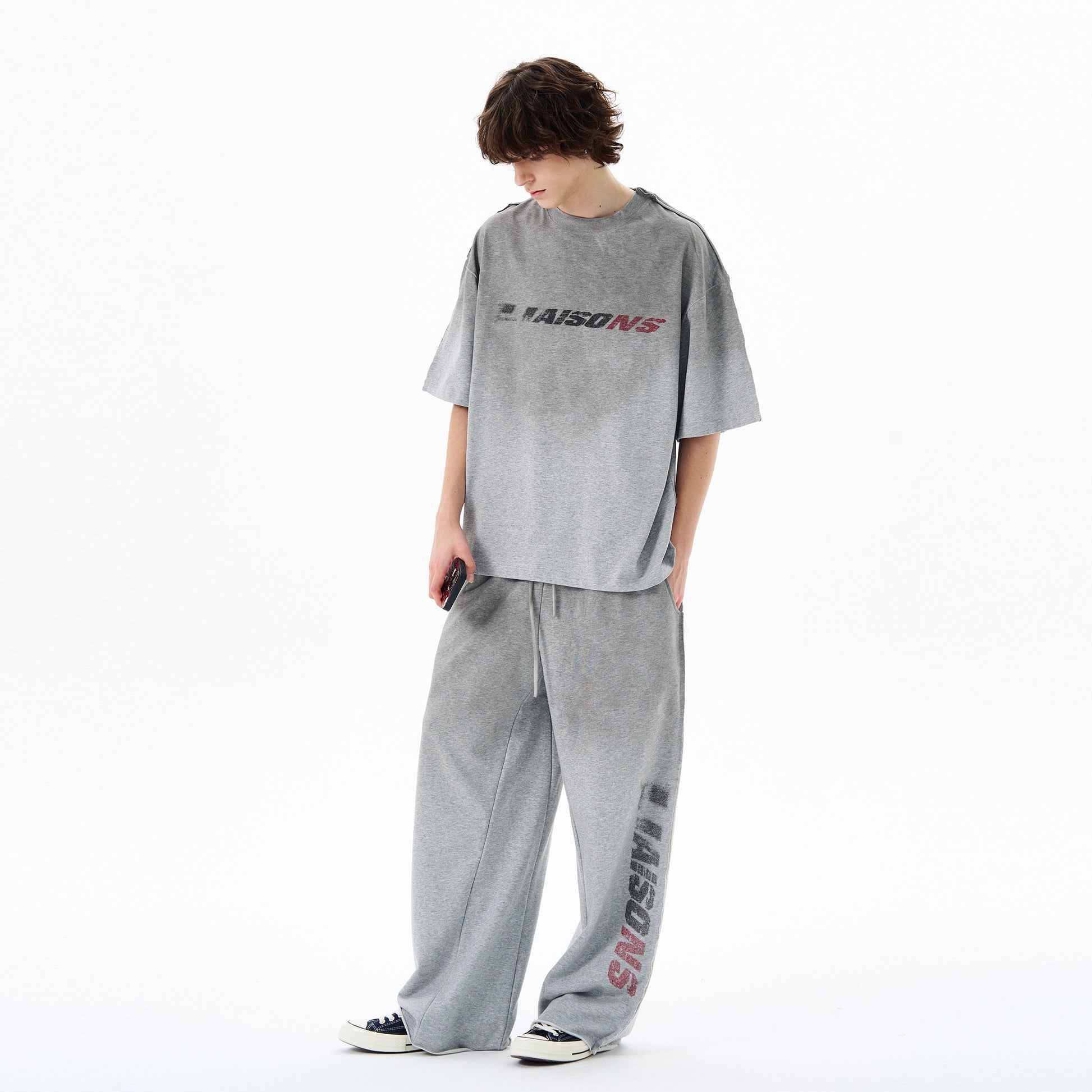 Graphic Letter Print Short Sleeve T-Shirt & Sporty Sweatpants Setup WN19207