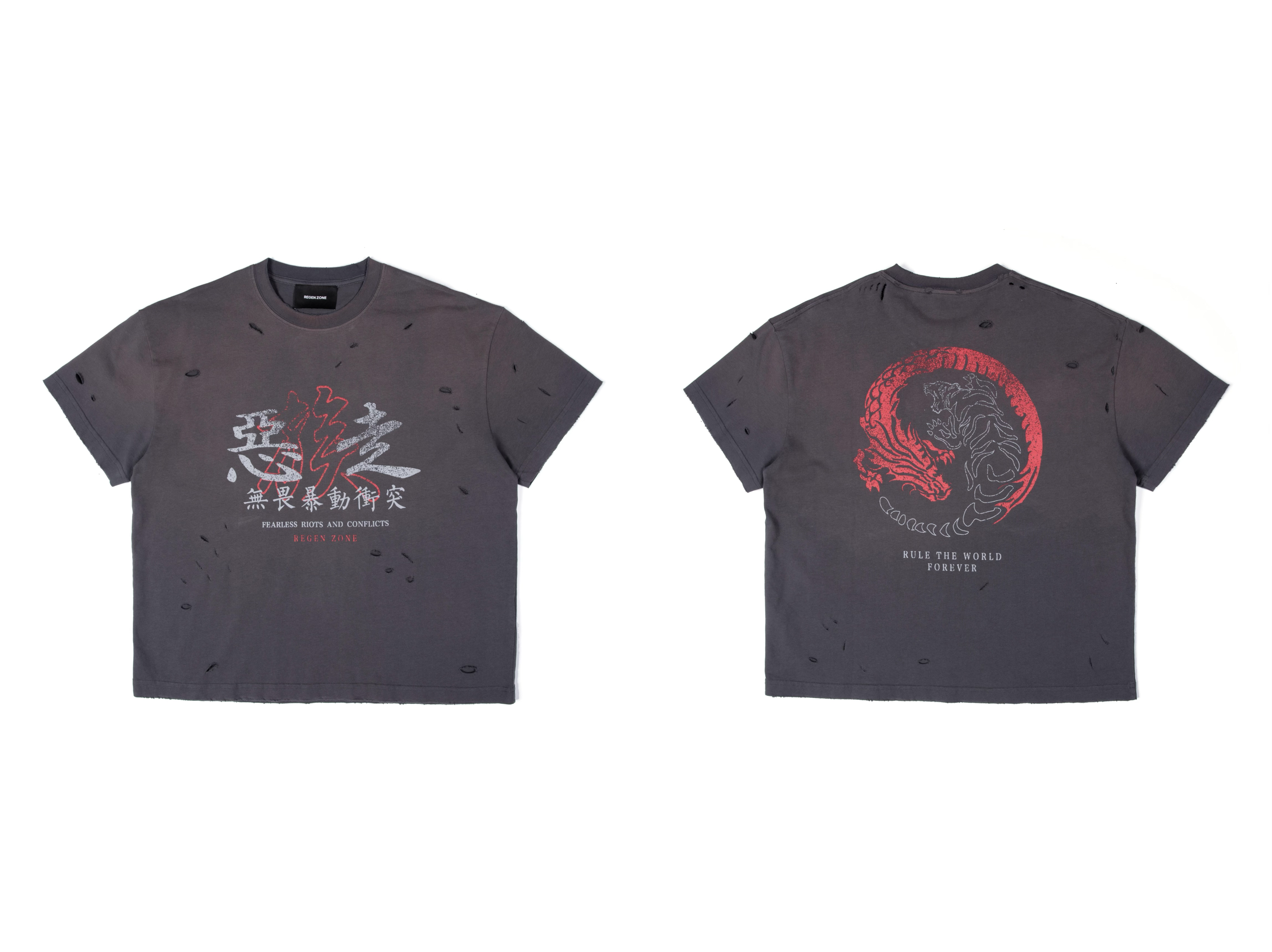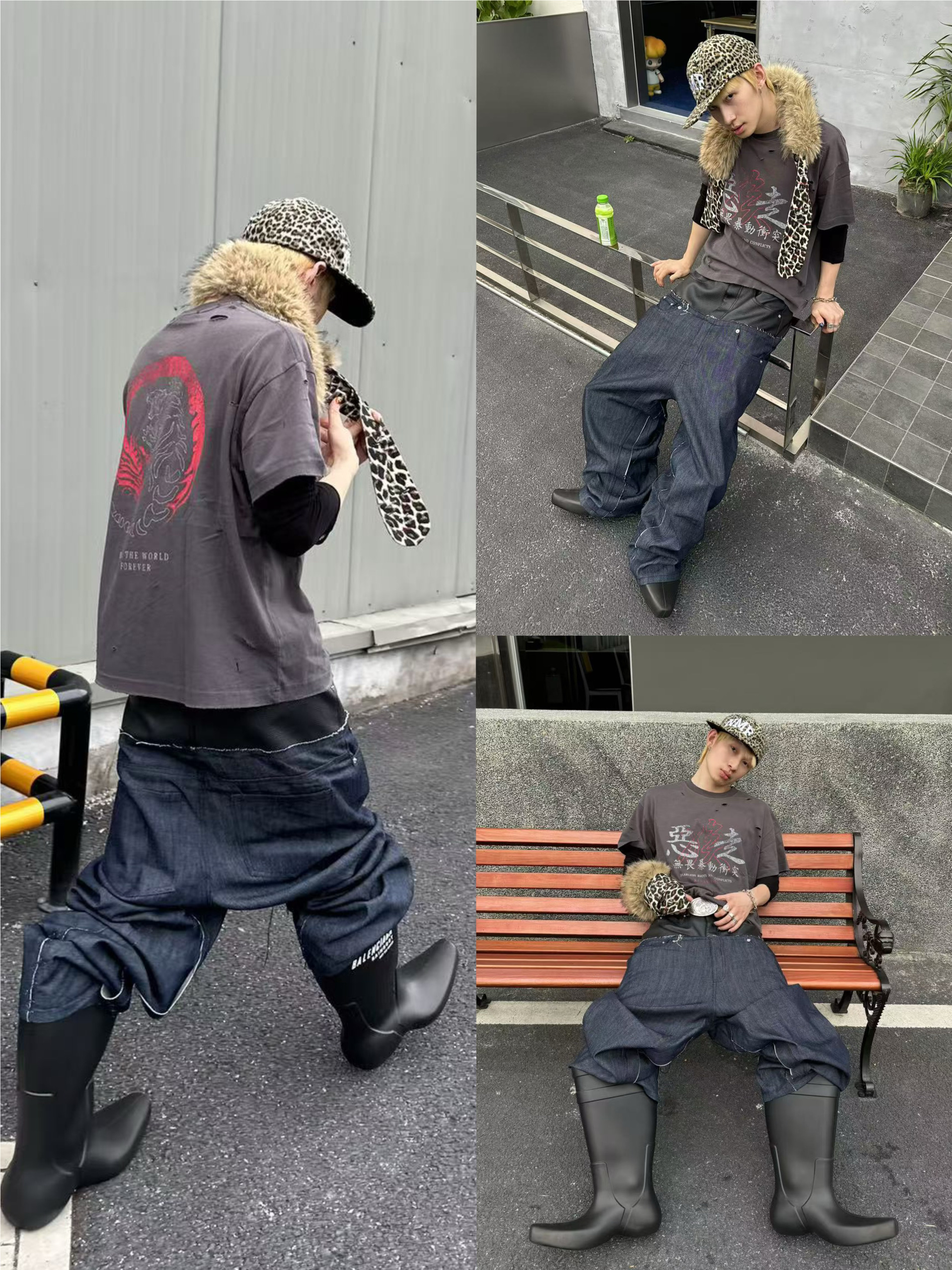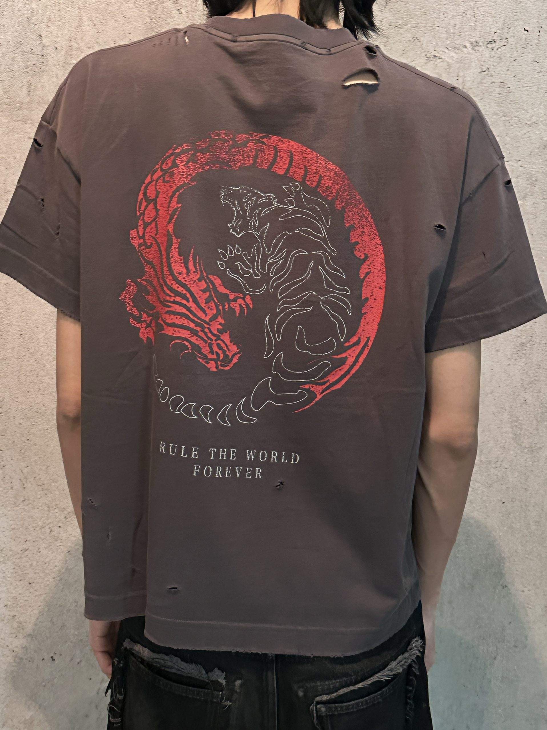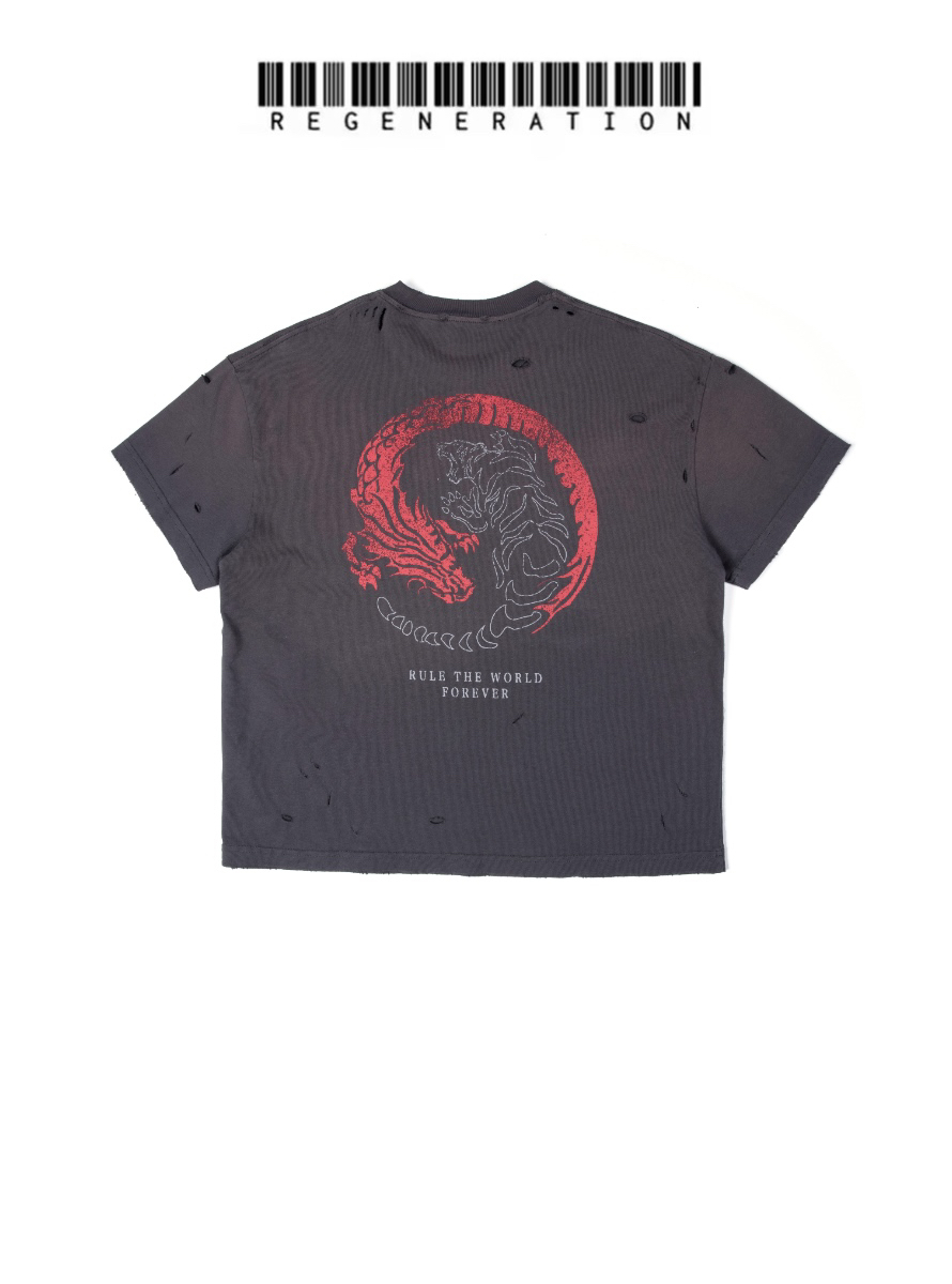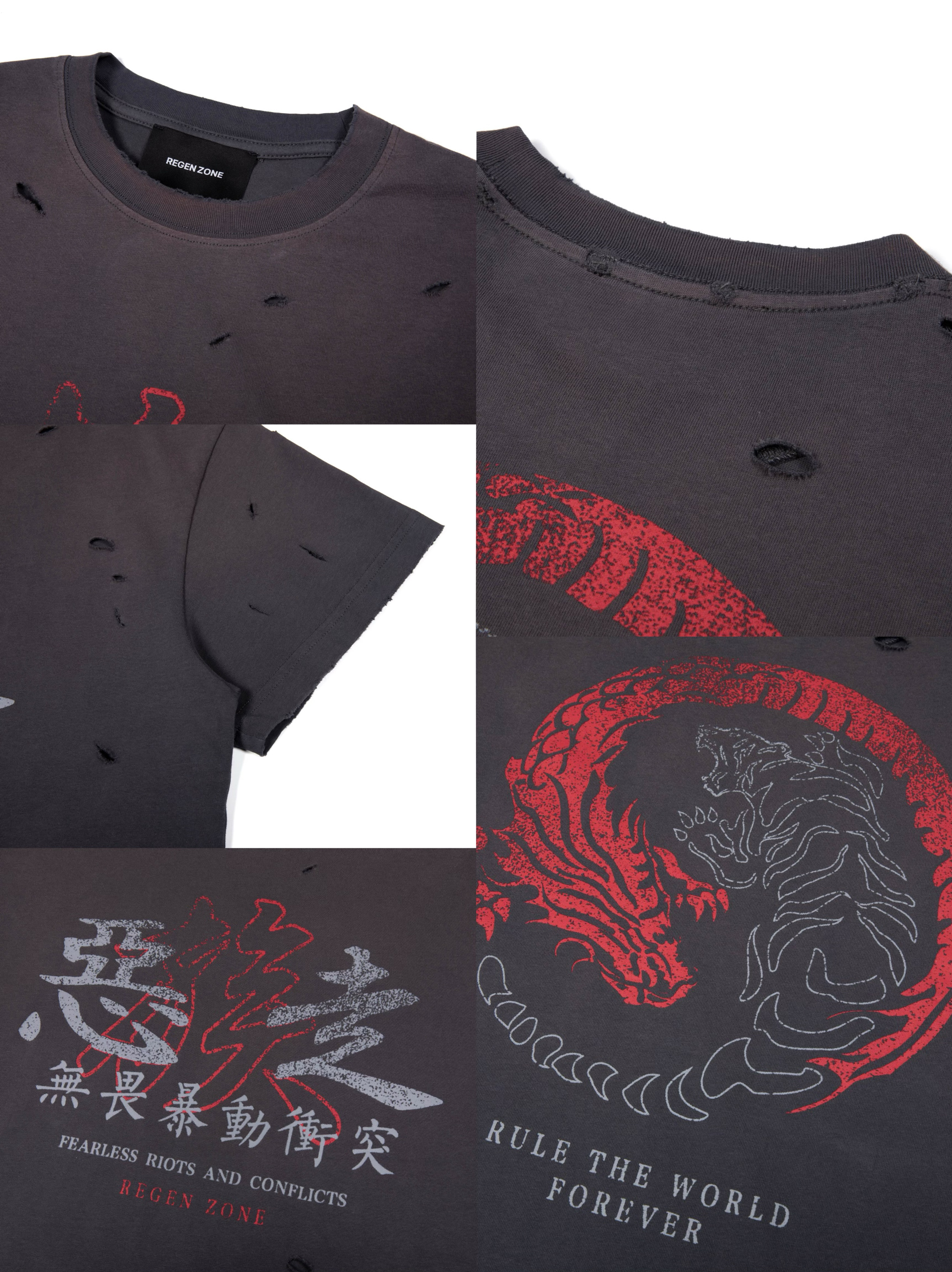 Washed Graphic Letter Damage Short Sleeve T-shirt WN19712