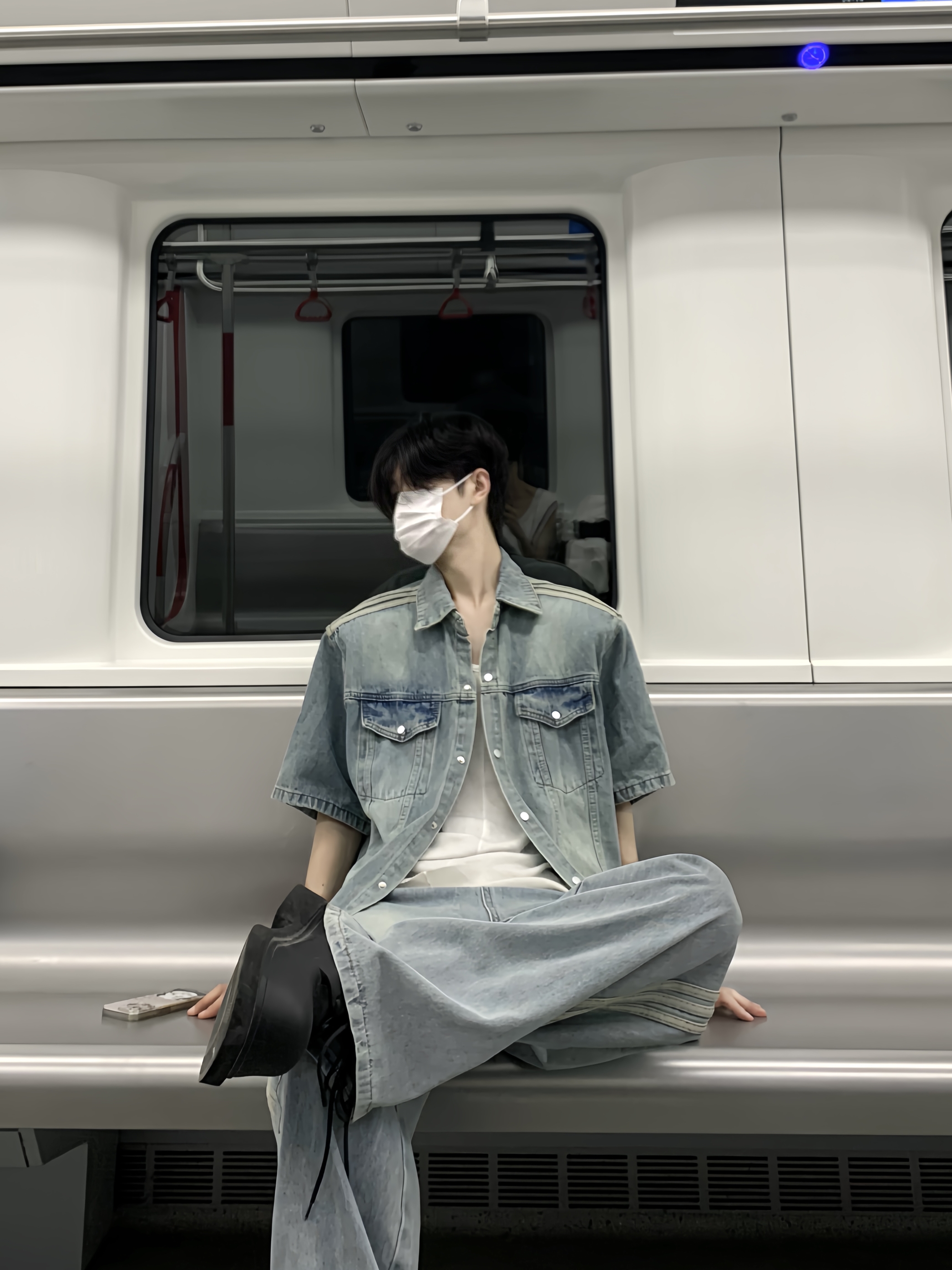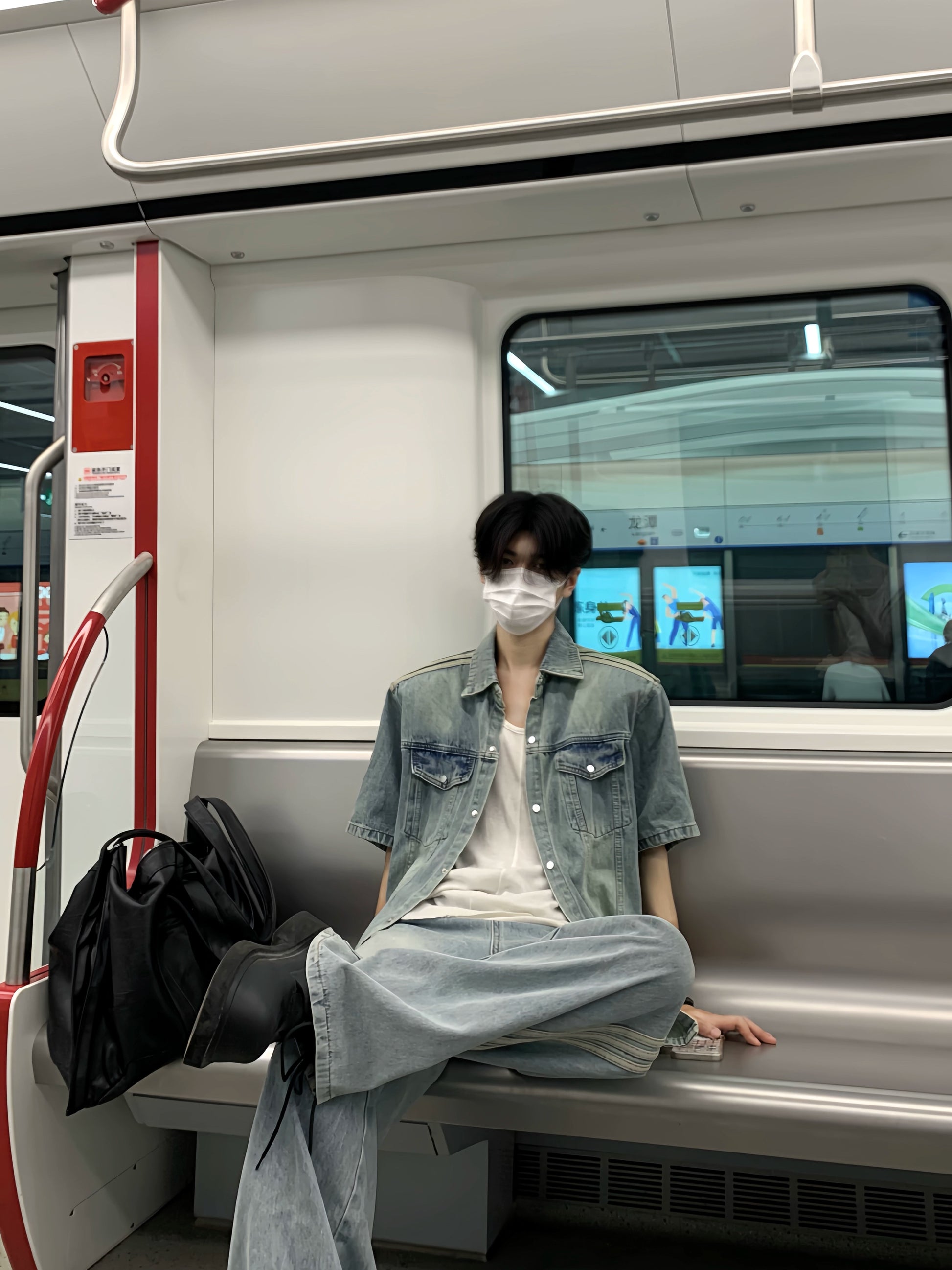 Washed Short Sleeve Denim Jacket & Side Stripe Washed Denim Jeans Setup WN19850