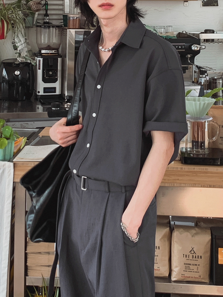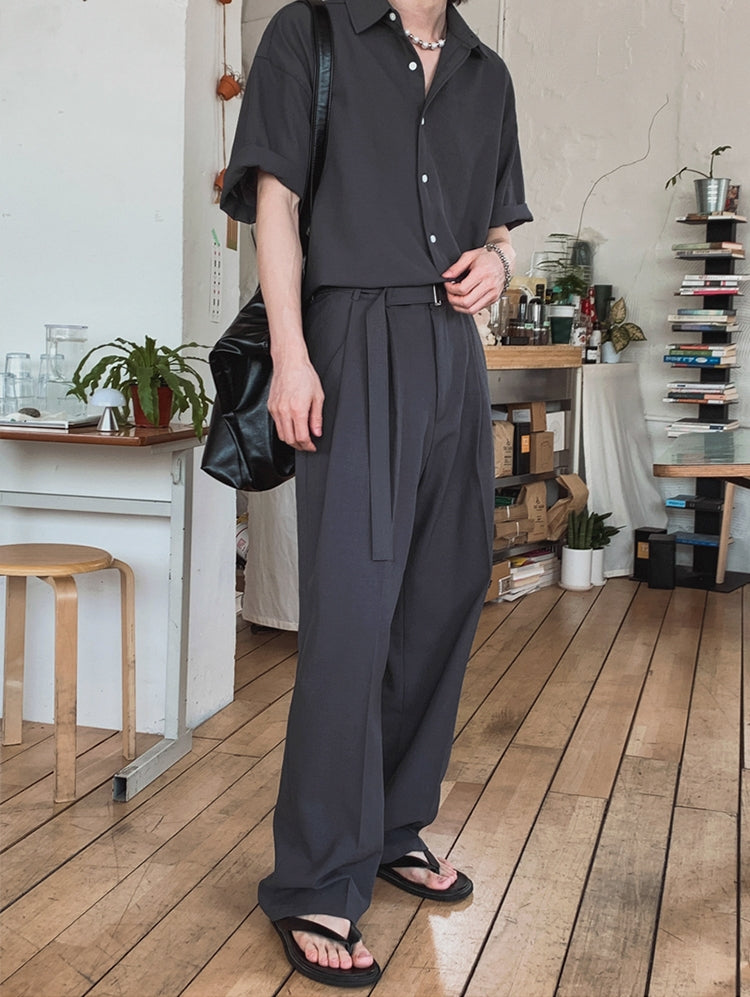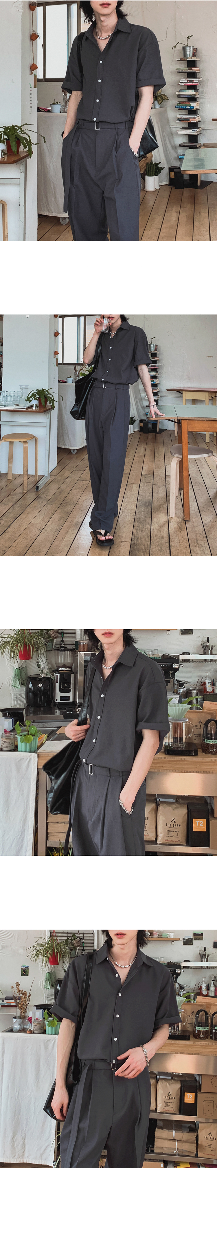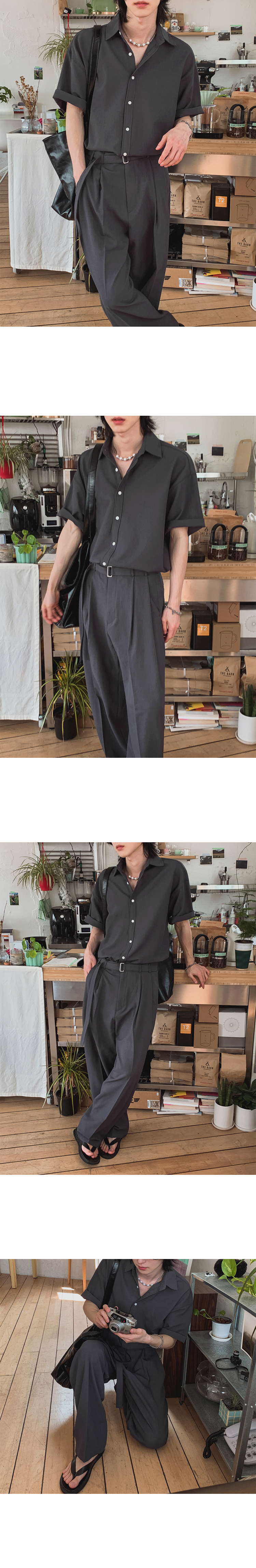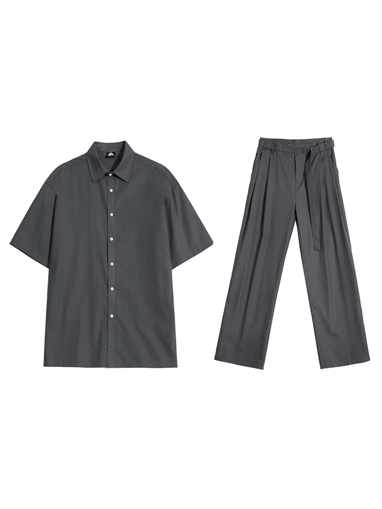 Plain Oversize Short Sleeve Shirt & Straight Pants Setup WN20270