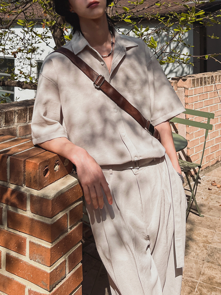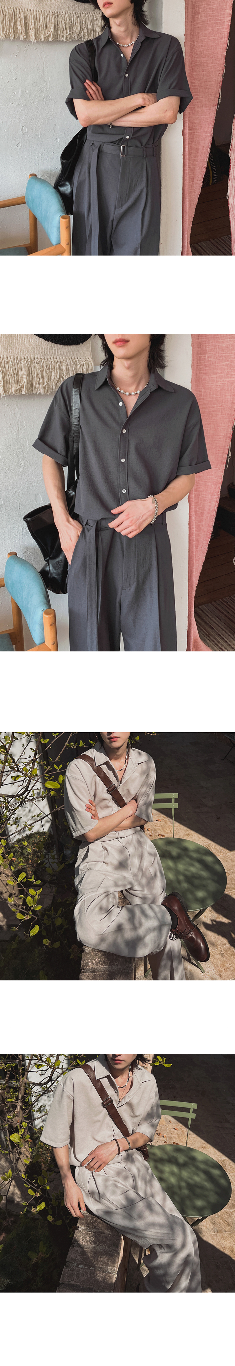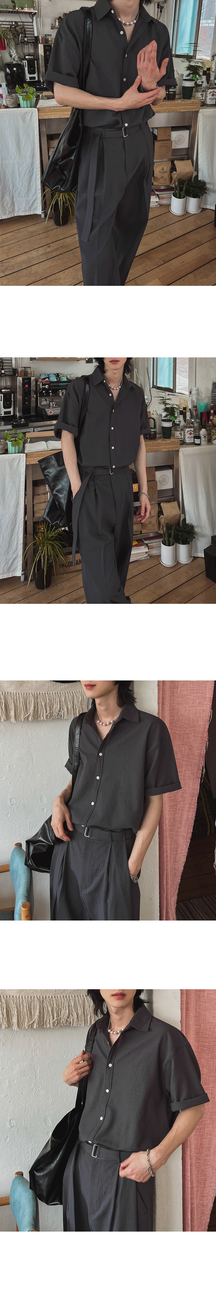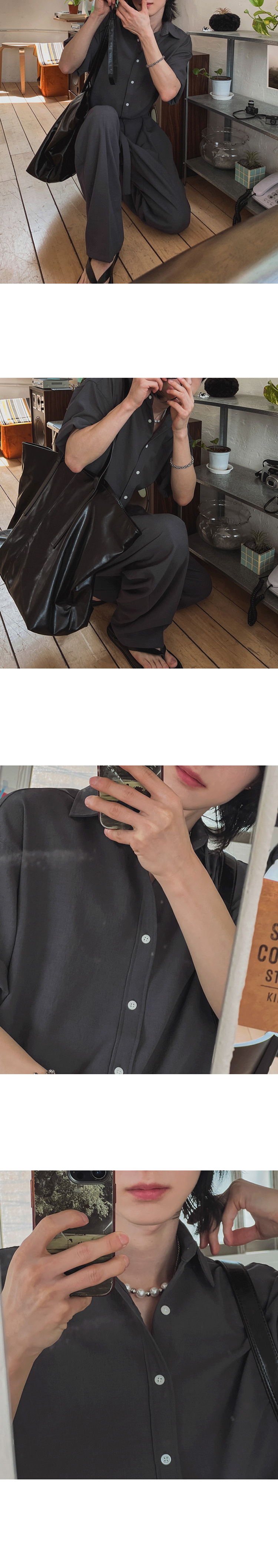 Plain Oversize Short Sleeve Shirt & Straight Pants Setup WN20270