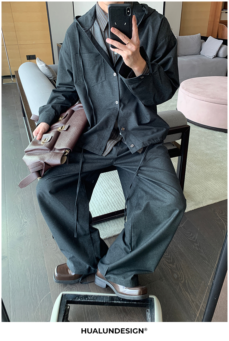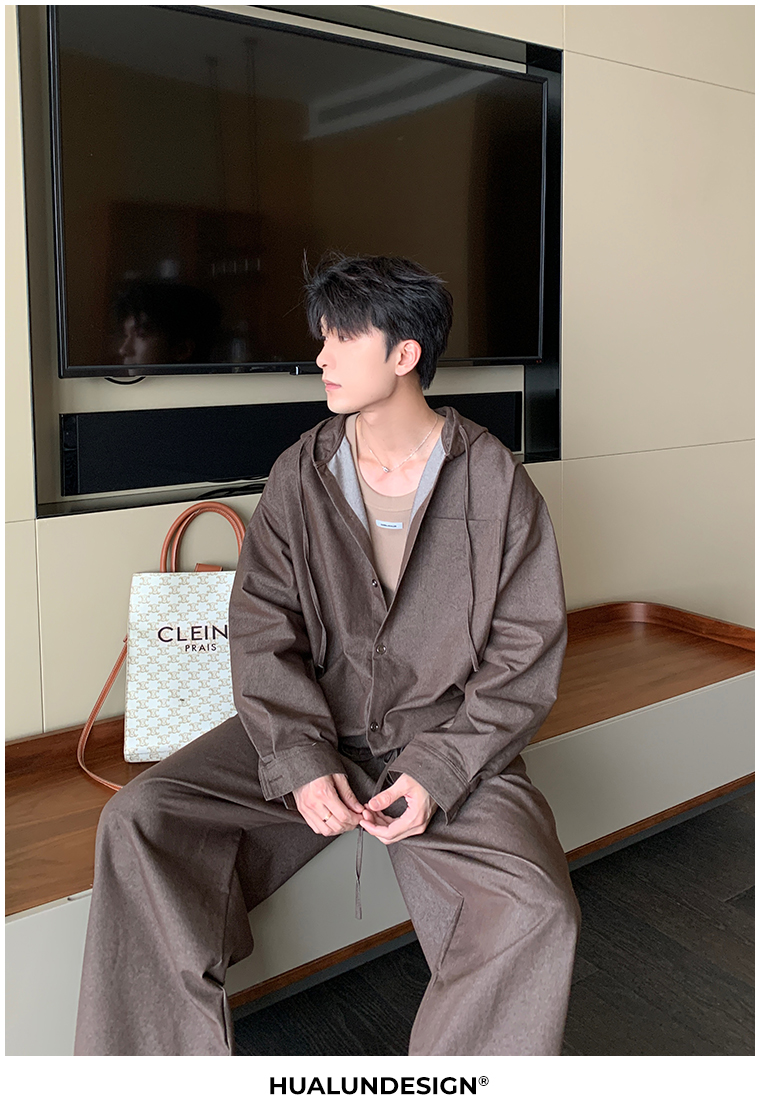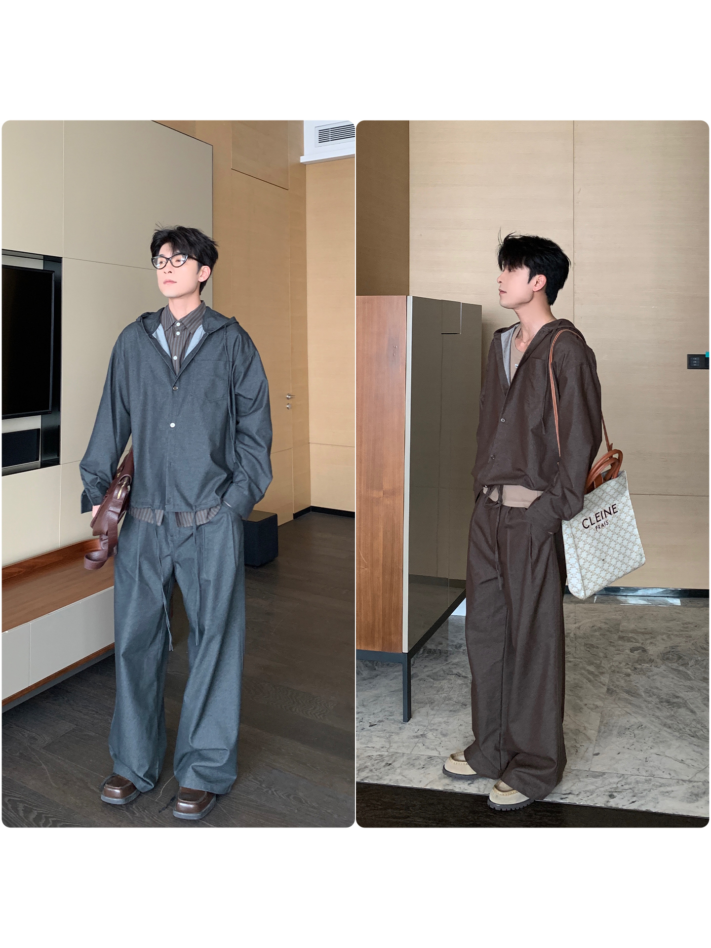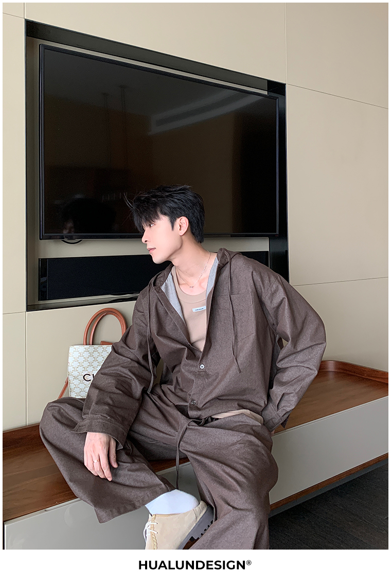 Hooded Long Sleeve Shirt & Wide Leg Pants Setup WN20480