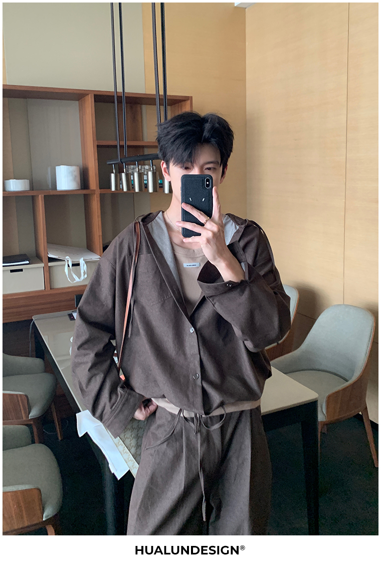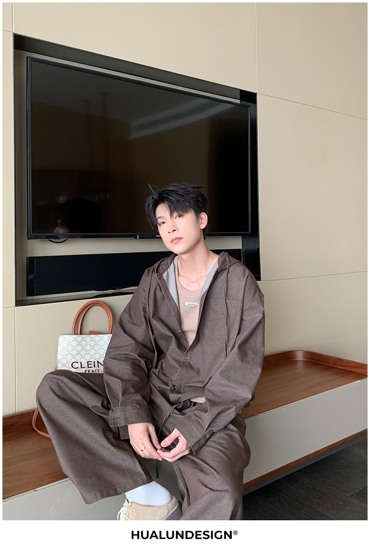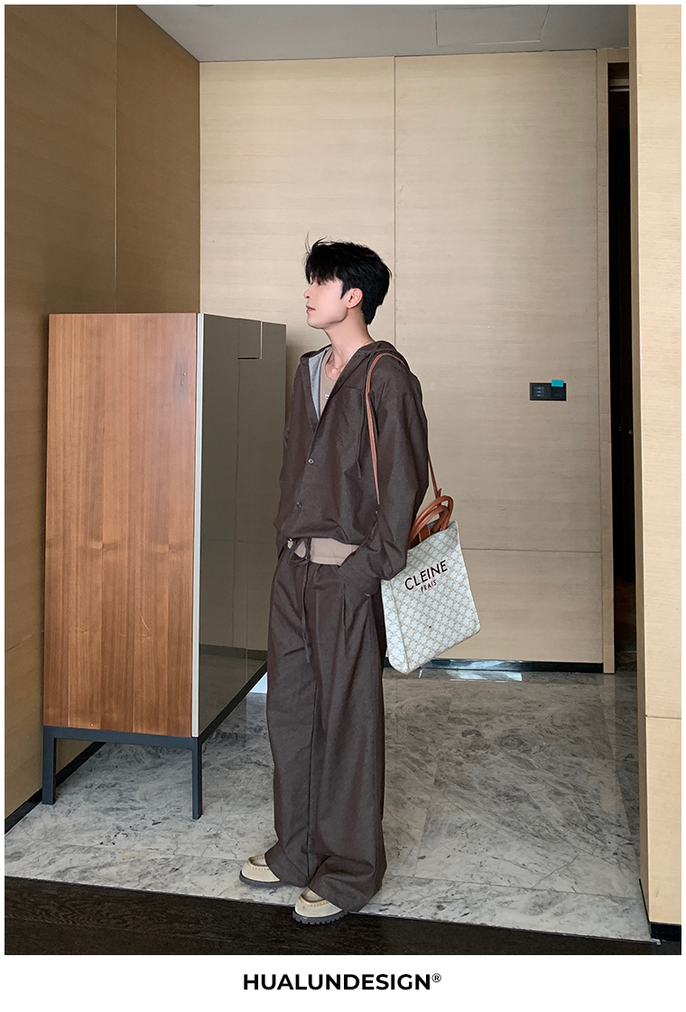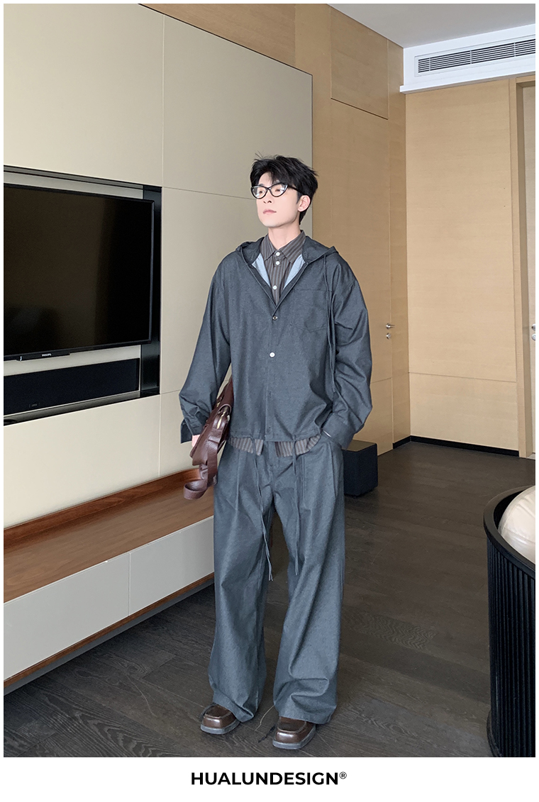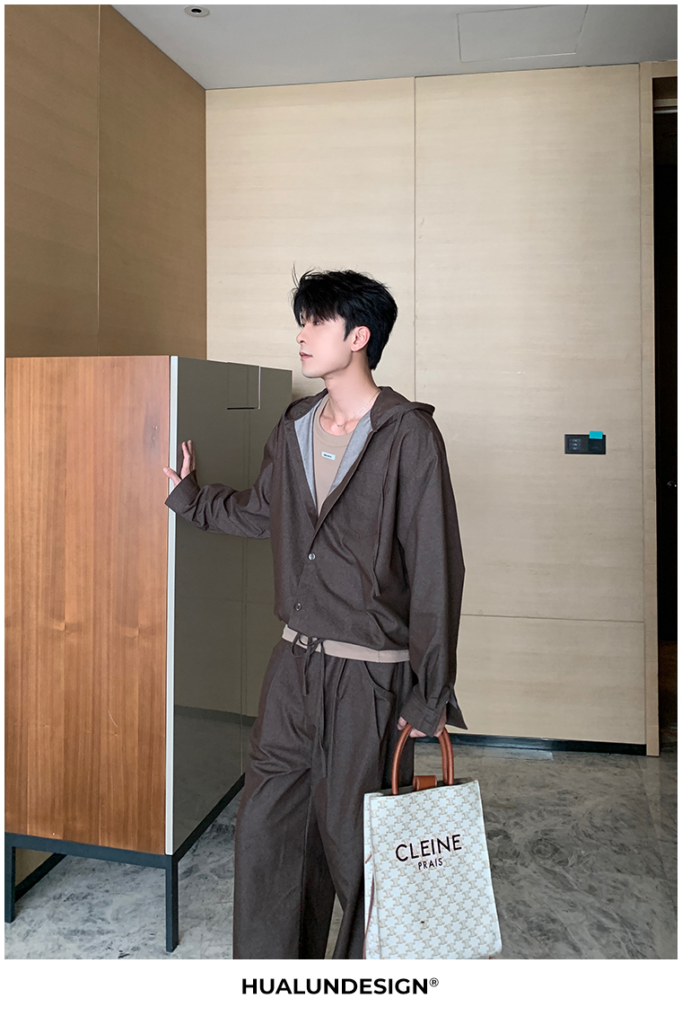 Hooded Long Sleeve Shirt & Wide Leg Pants Setup WN20480