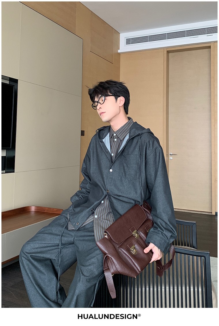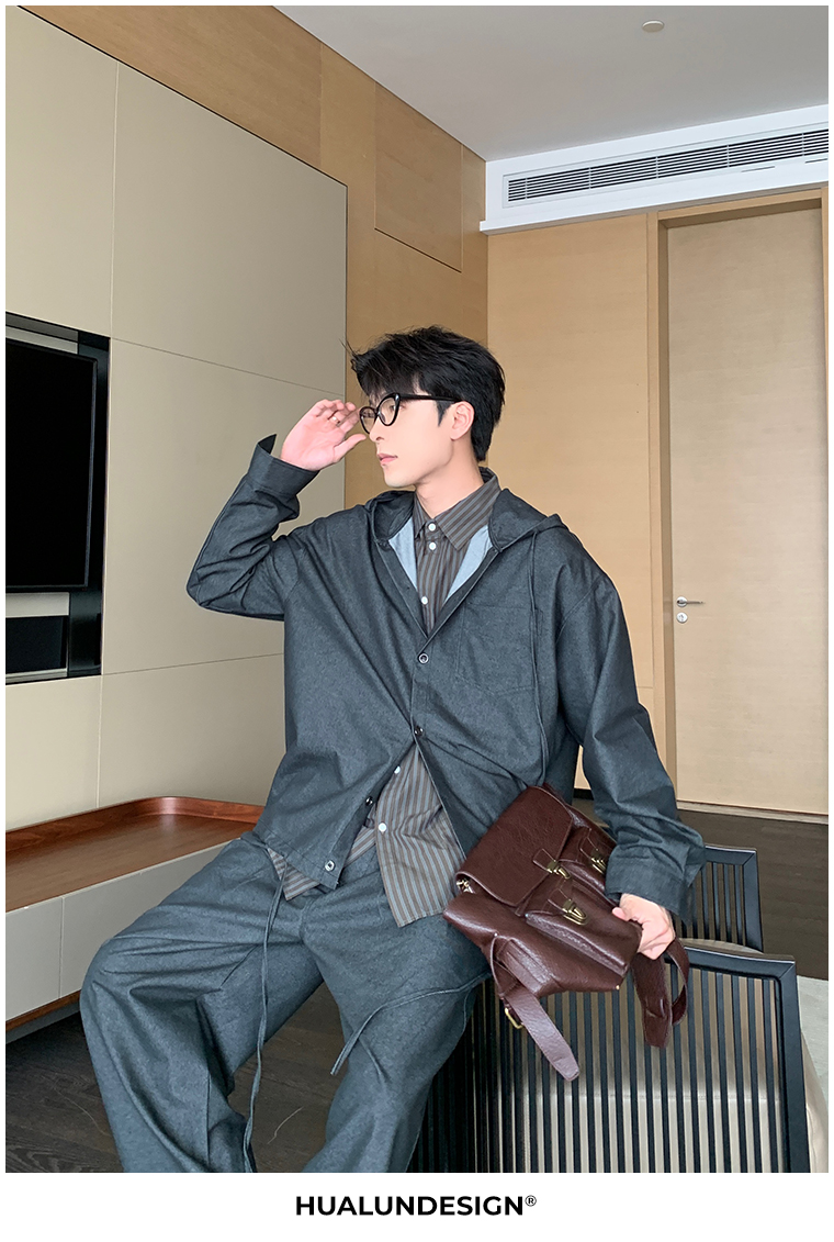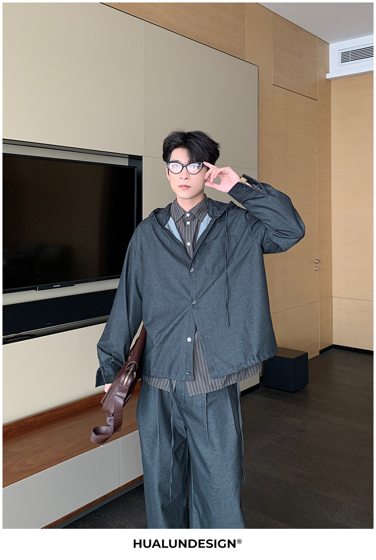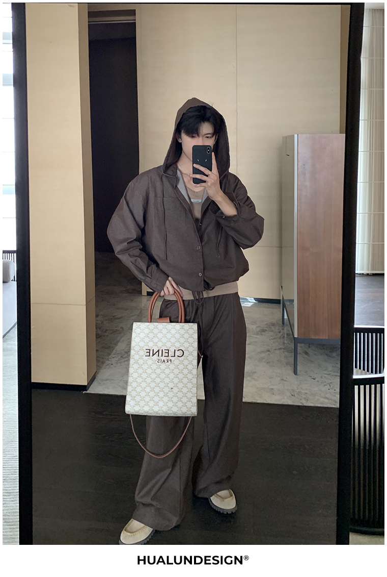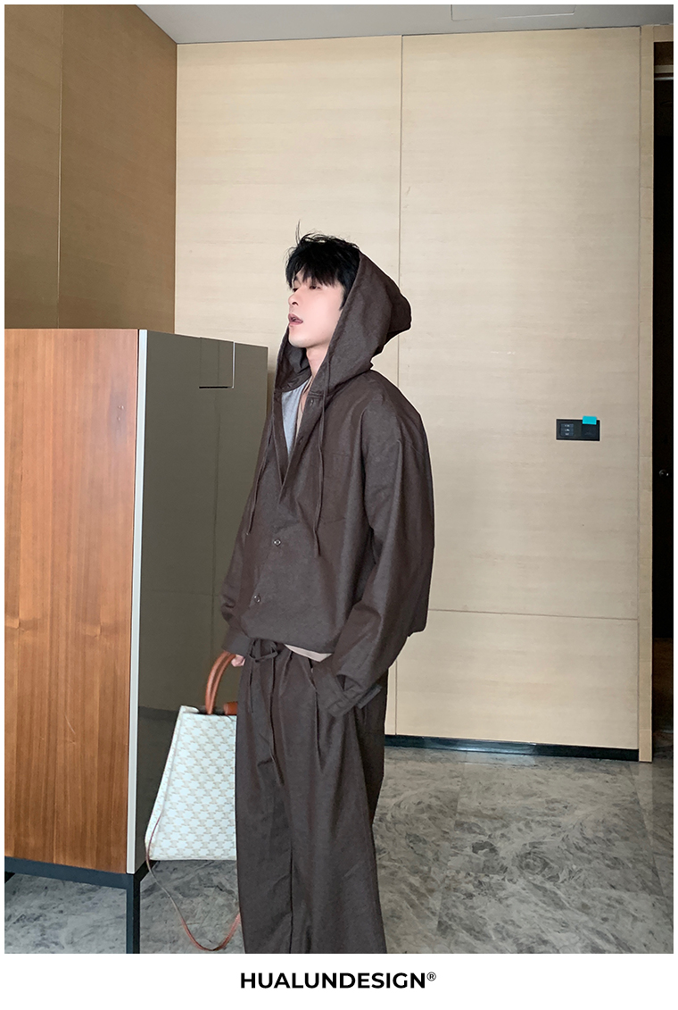 Hooded Long Sleeve Shirt & Wide Leg Pants Setup WN20480