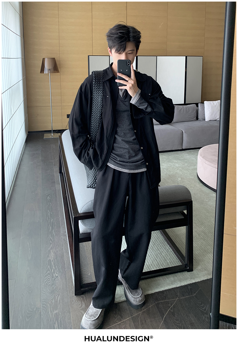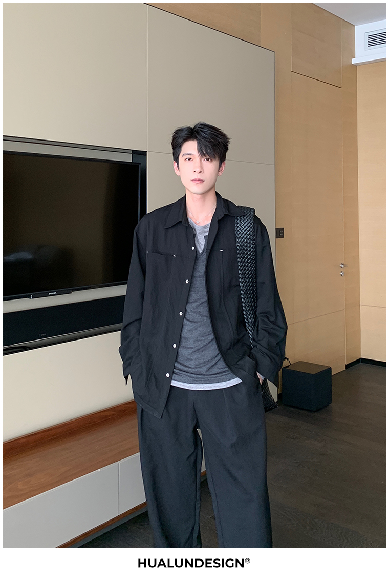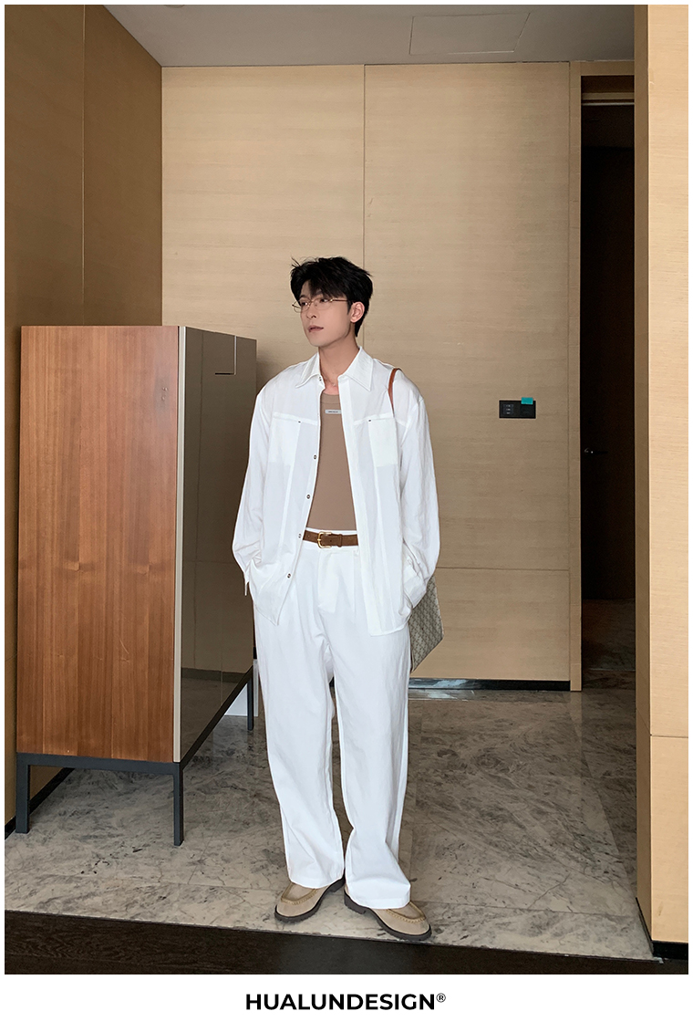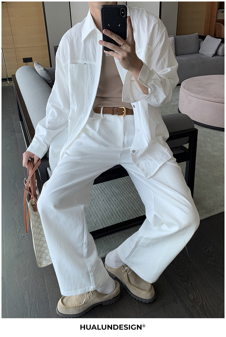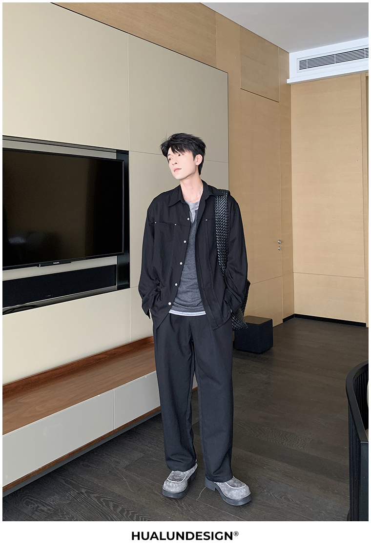 Plain Long Sleeve Shirt & Straight Pants Setup WN20483