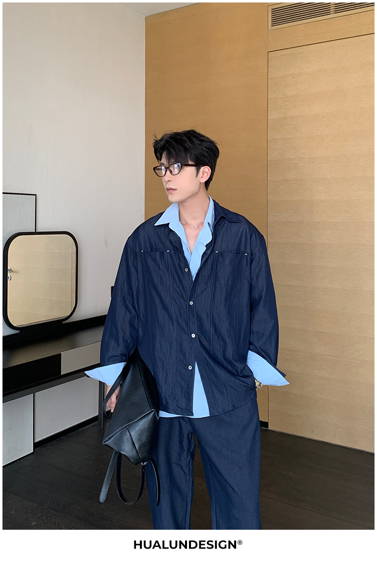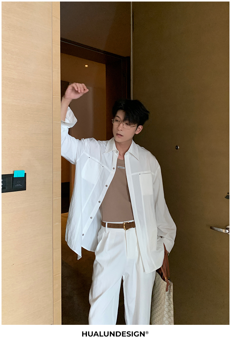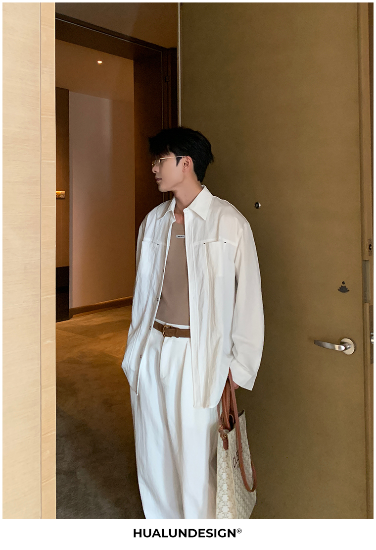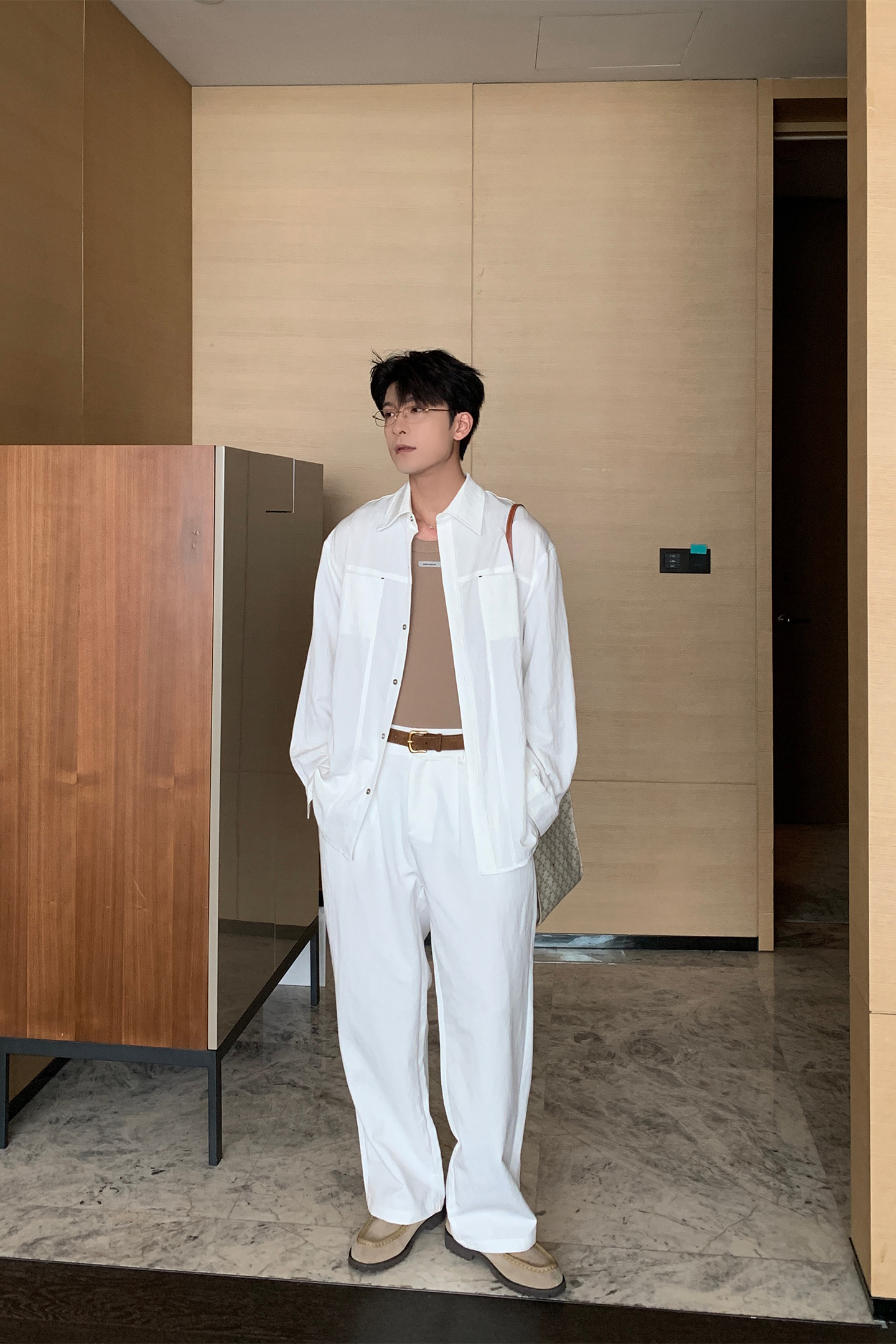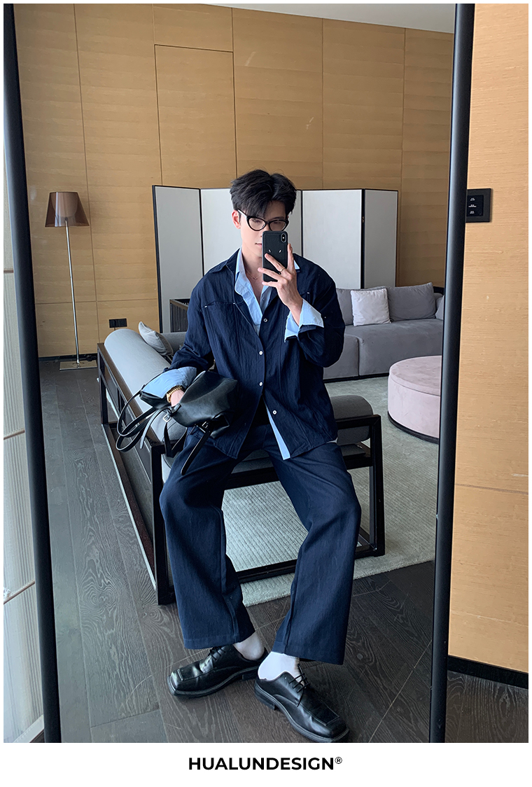 Plain Long Sleeve Shirt & Straight Pants Setup WN20483