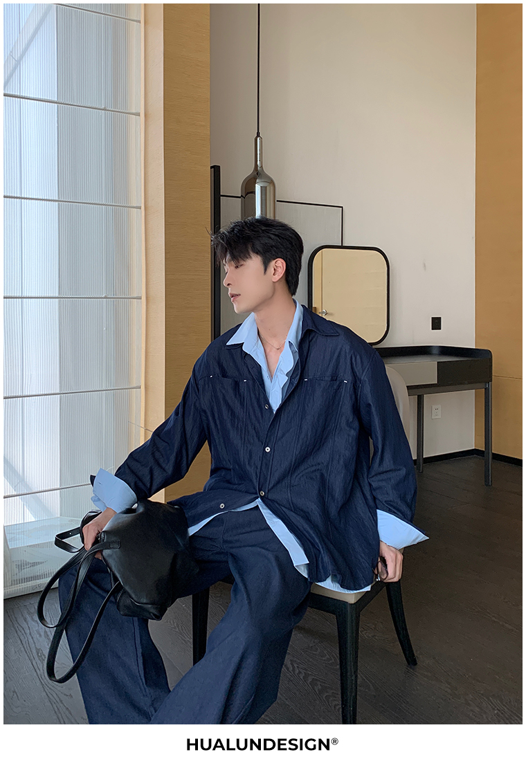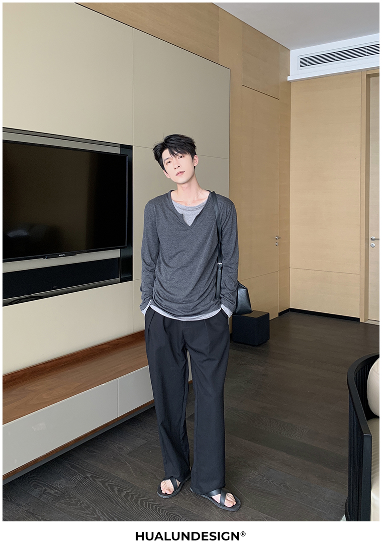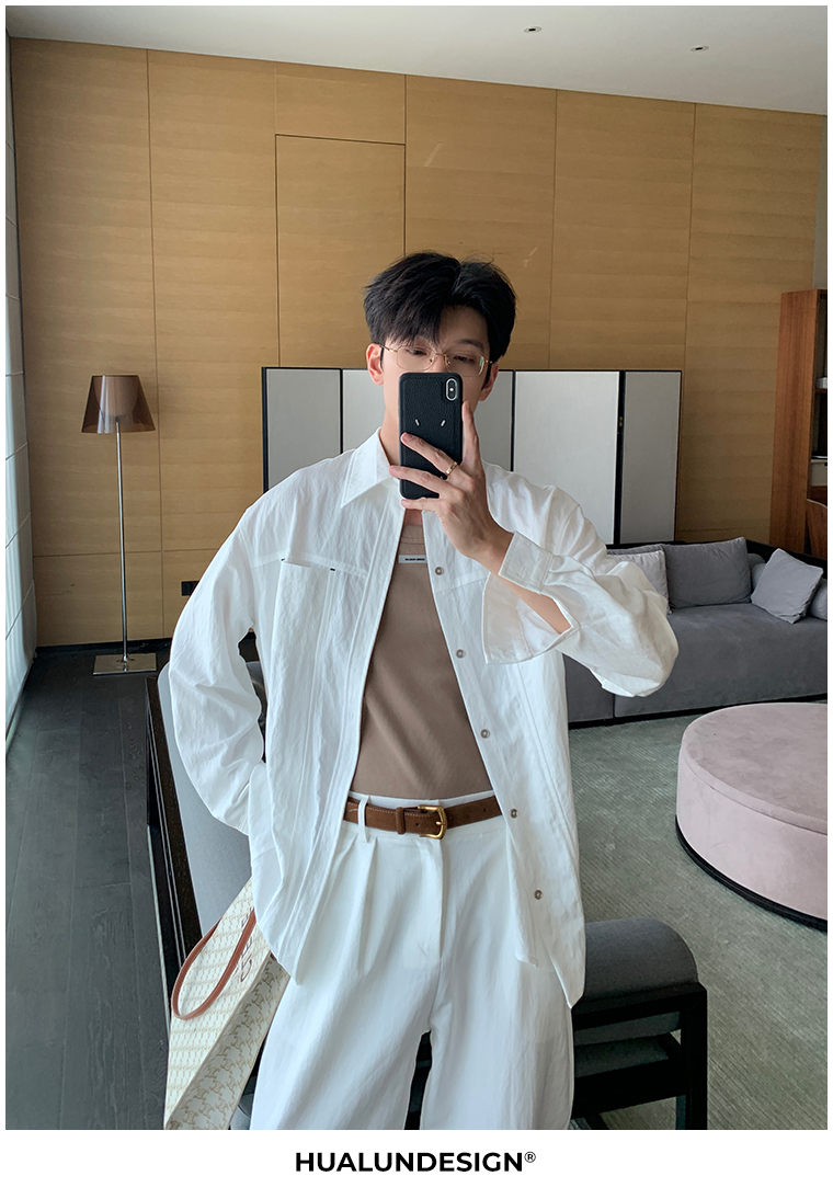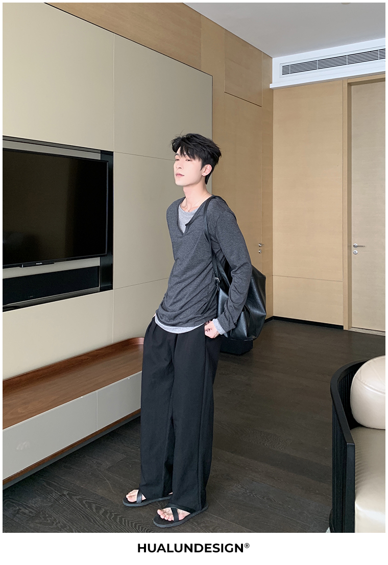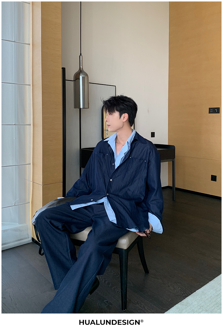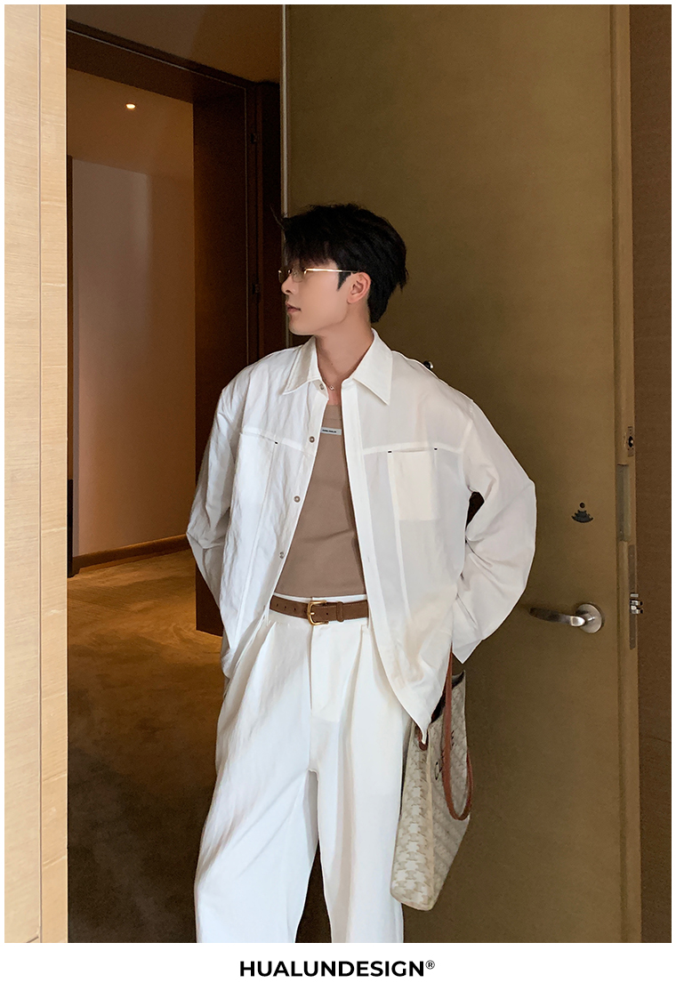 Plain Long Sleeve Shirt & Straight Pants Setup WN20483