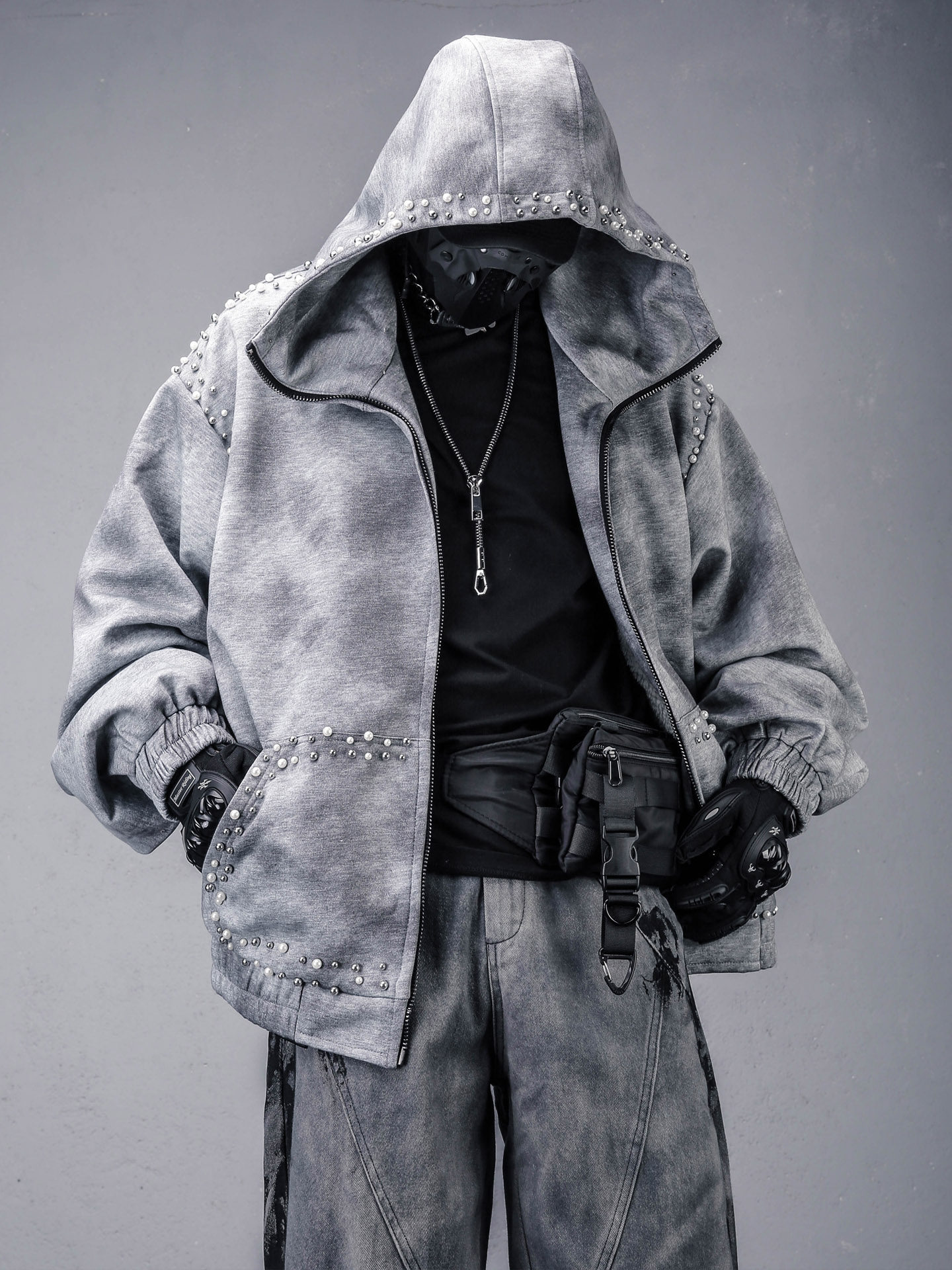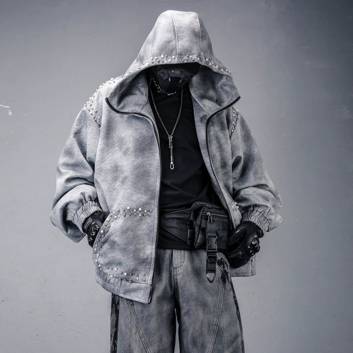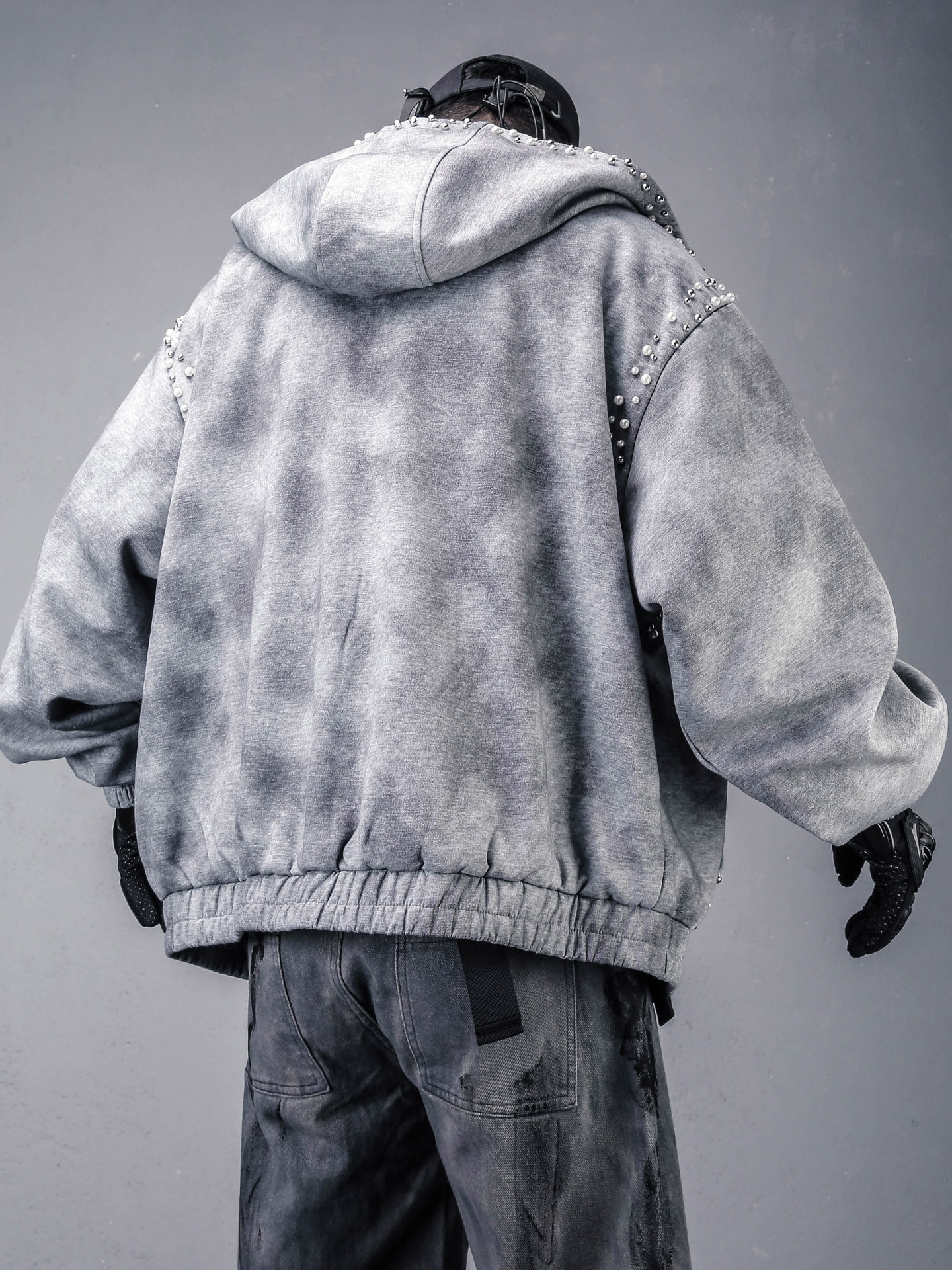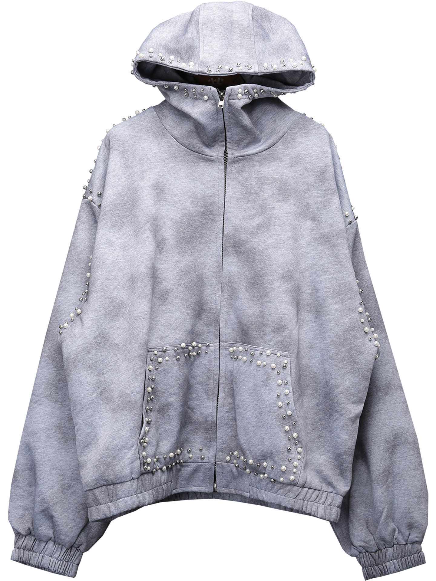 Pearl Beads Decor Fleece Lining Oversize Zipper Hoodie WN22446